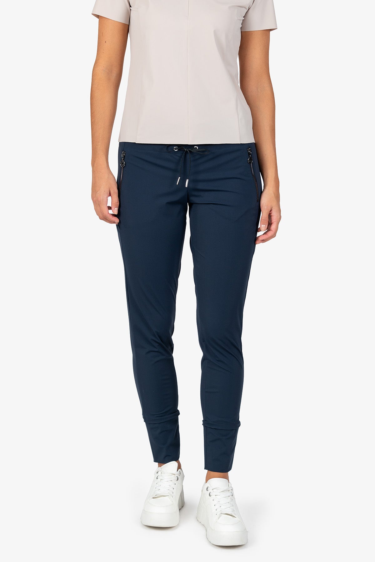 鬆緊腰拉鏈口袋休閒長褲