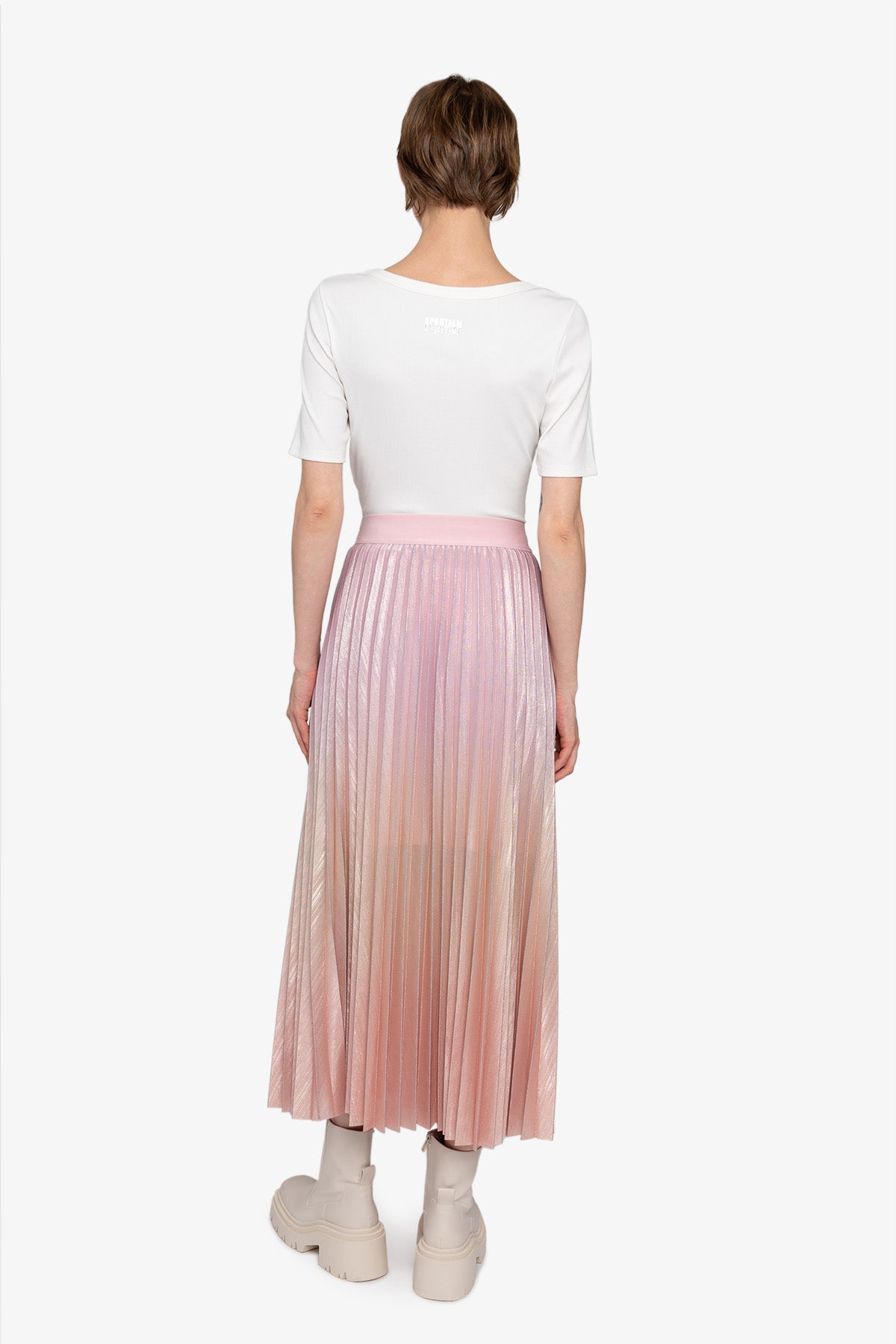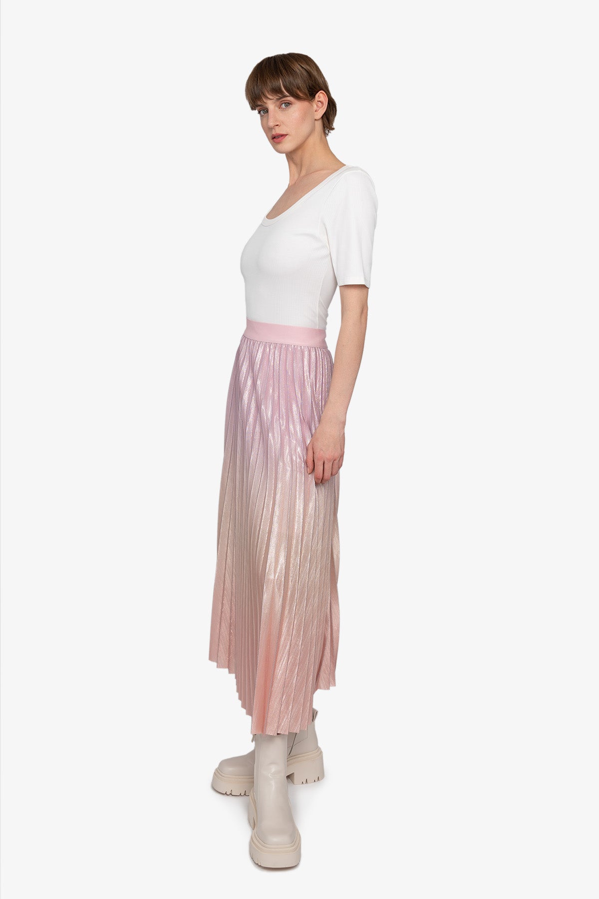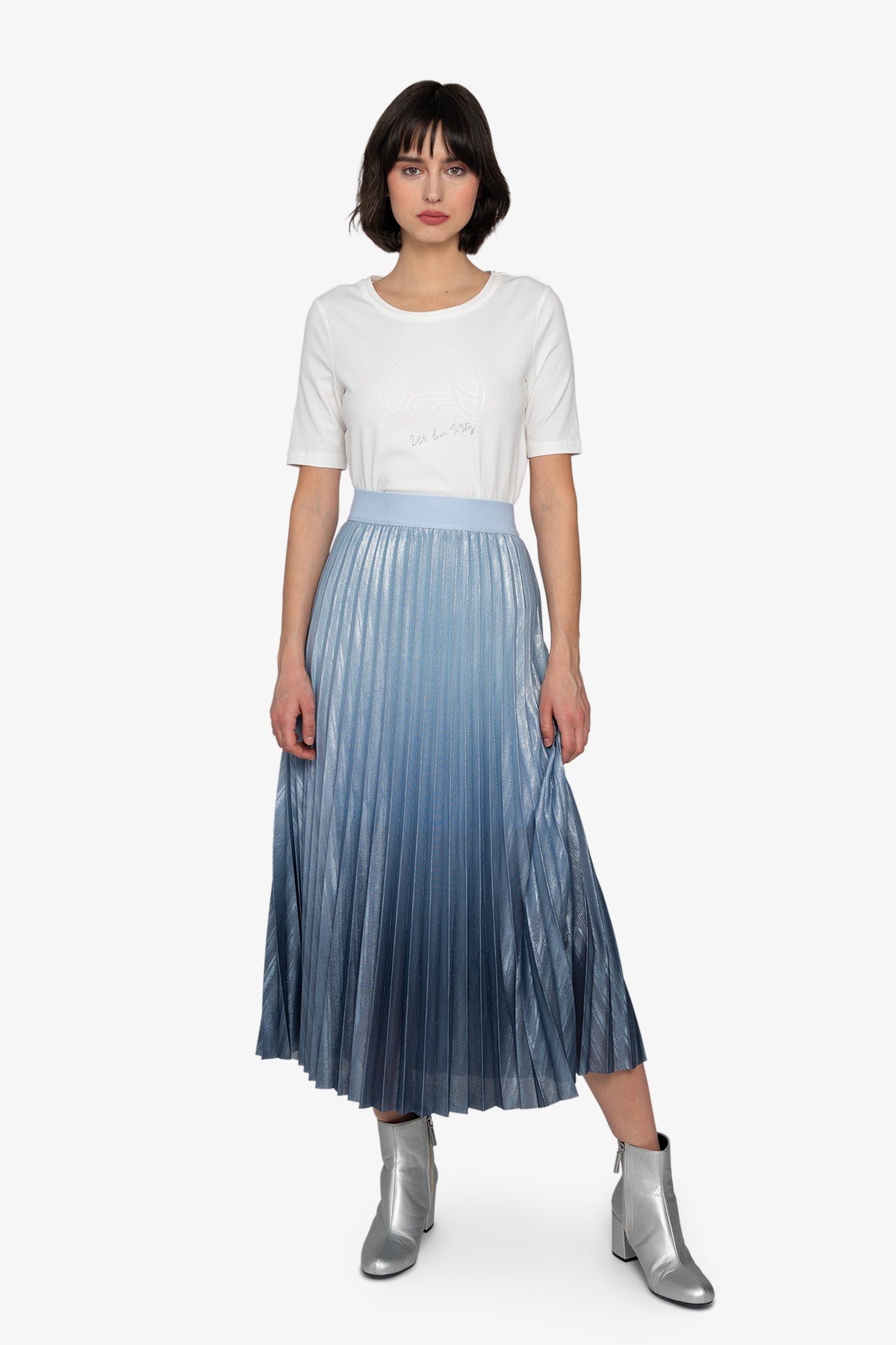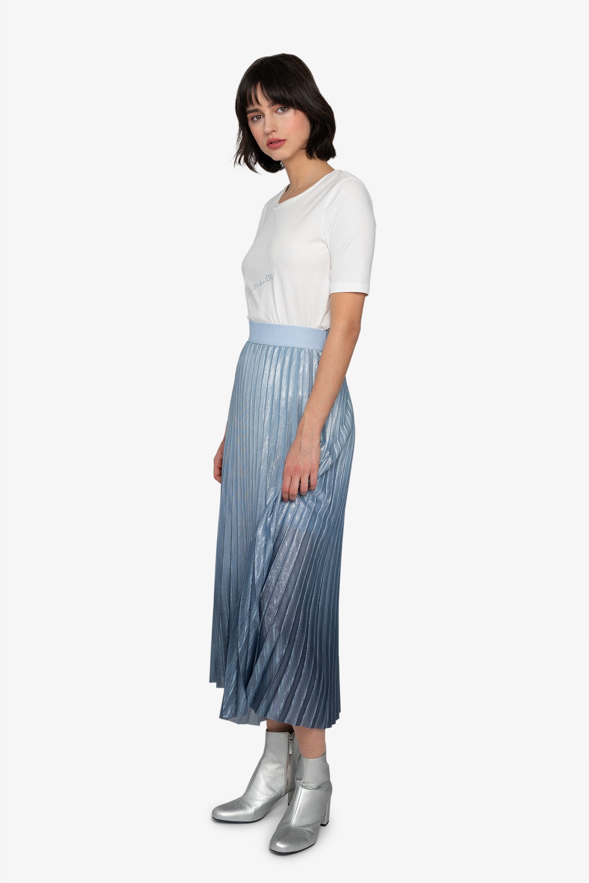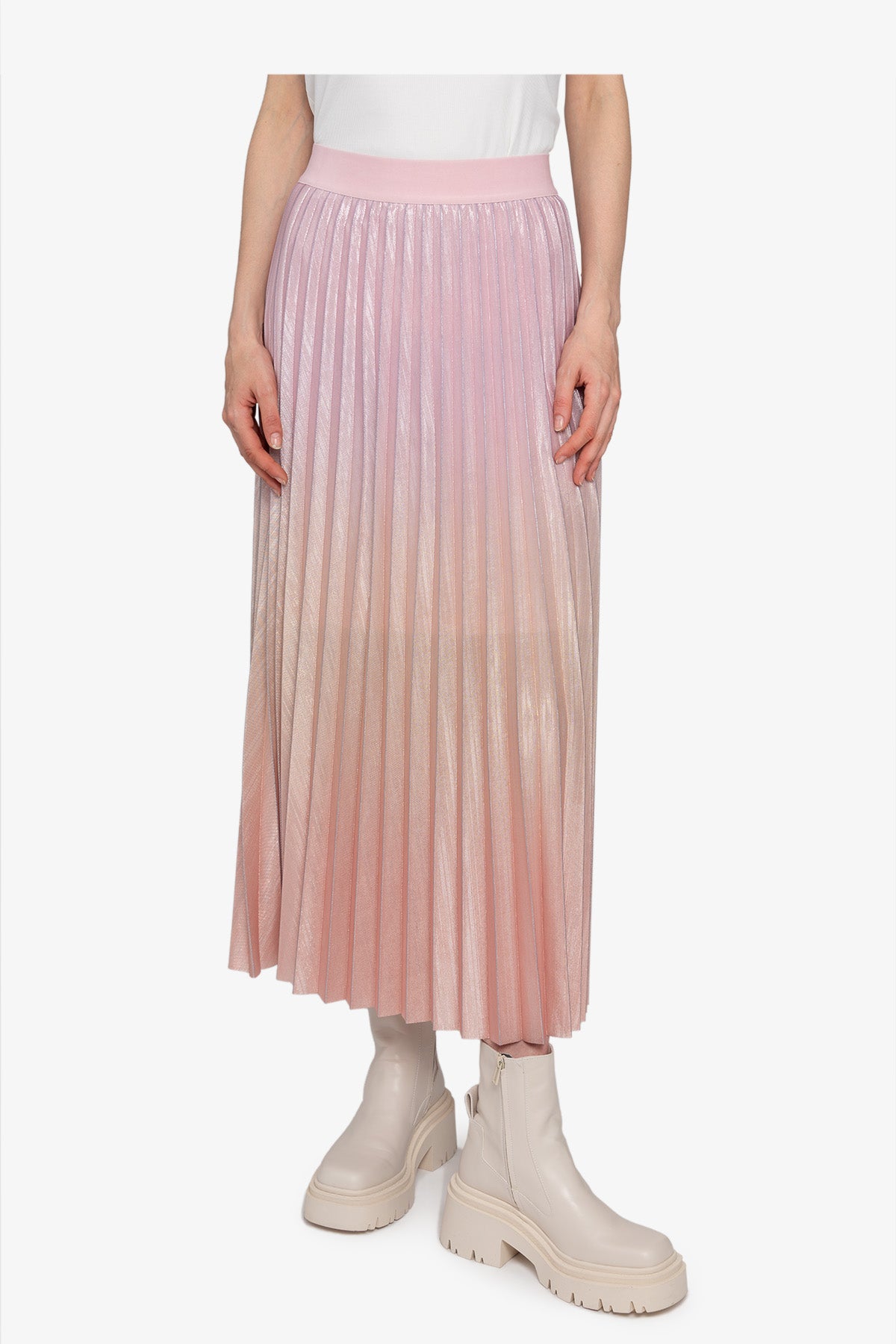 這款優雅的百褶裙採用閃光雪紡製成,以其獨特的漸層印花脫穎而出,賦予它動態的觸感。內衣提供更好的覆蓋和舒適度。