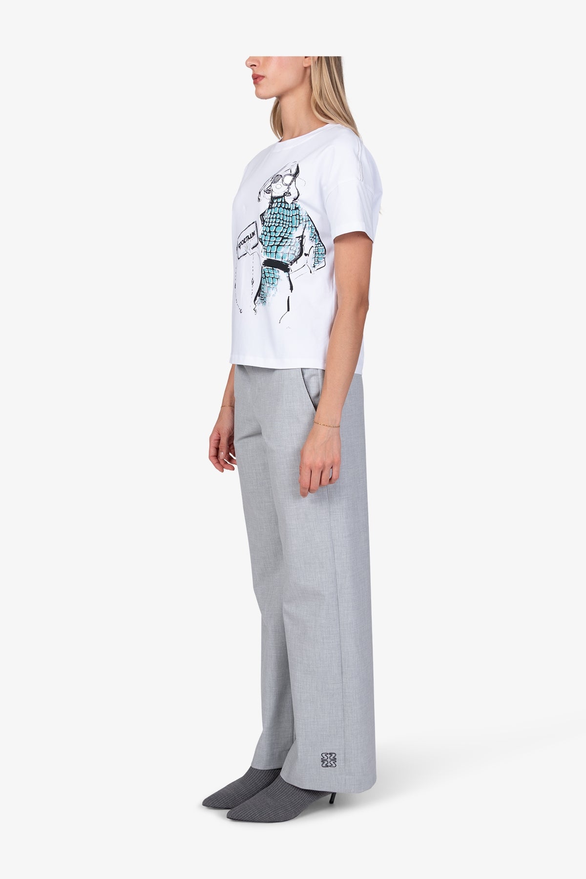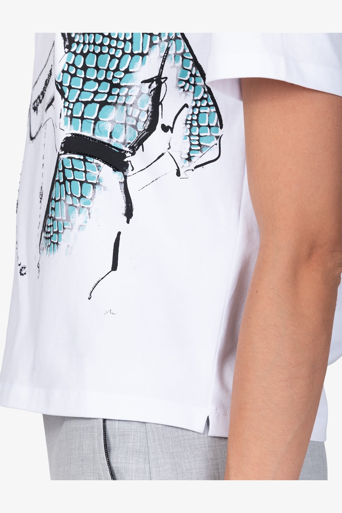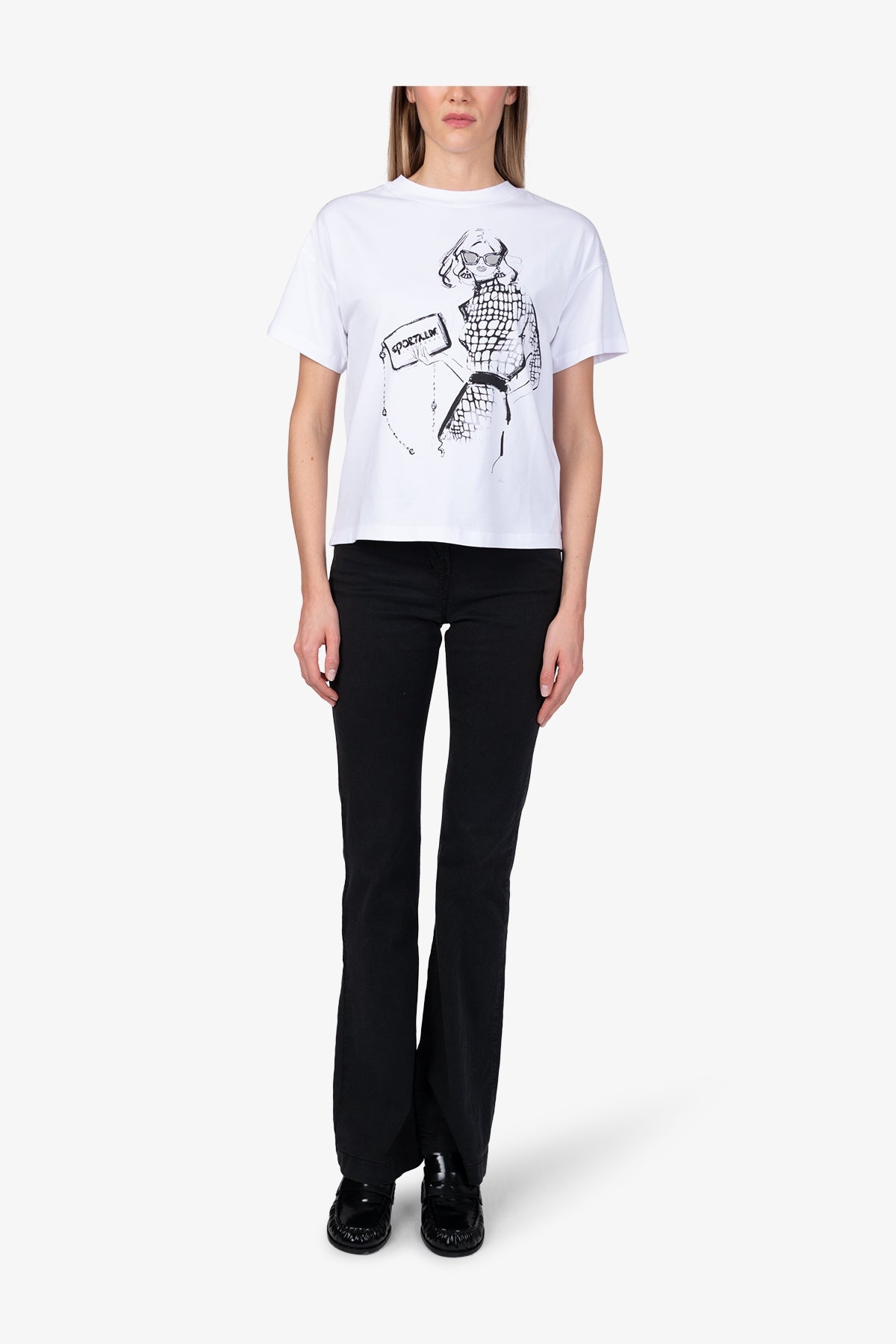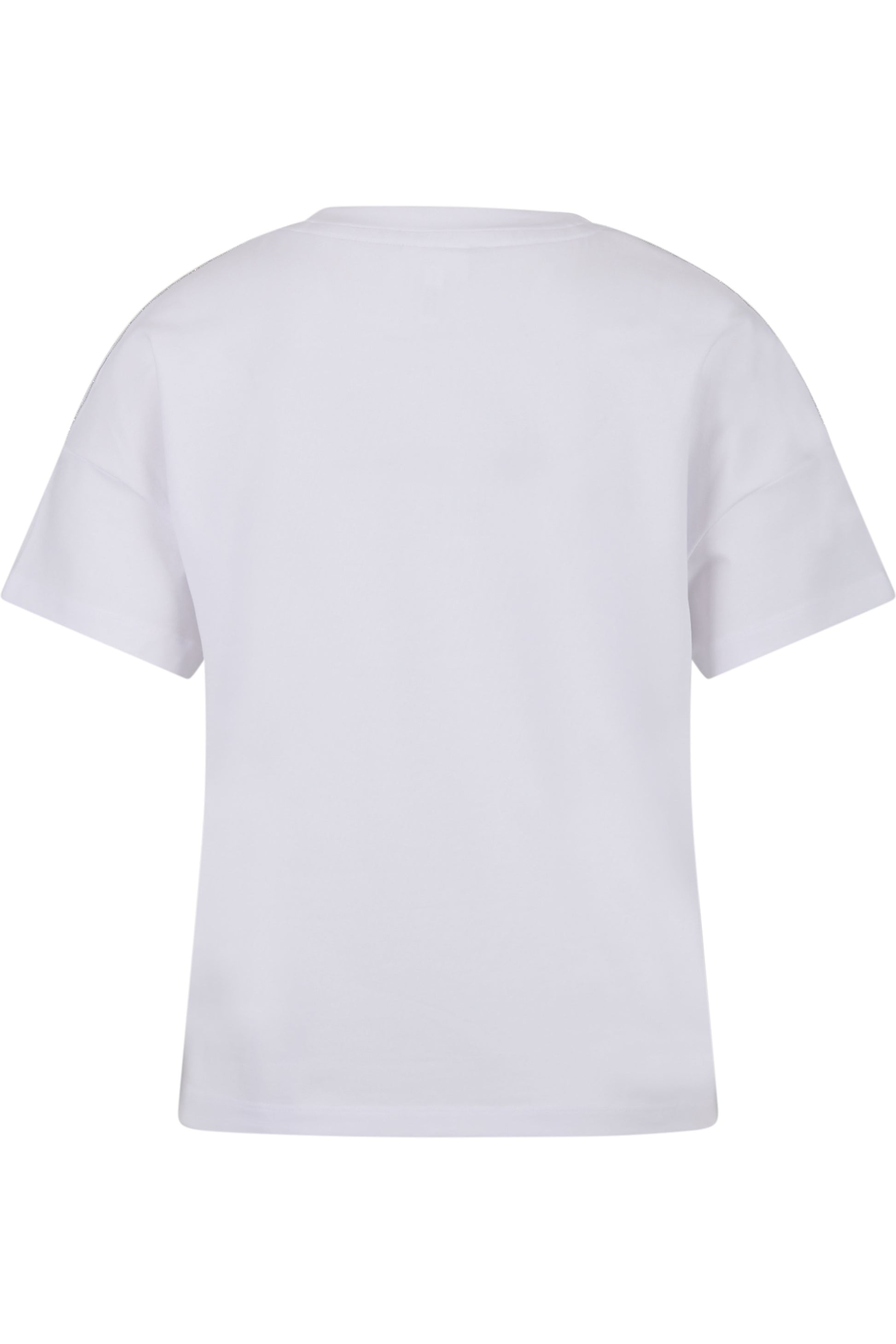 亮點:正面印有時尚插畫,飾有金箔印花和水鑽,肩縫處飾有球鏈,側縫處有小開衩36 碼後長:58.0 厘米
