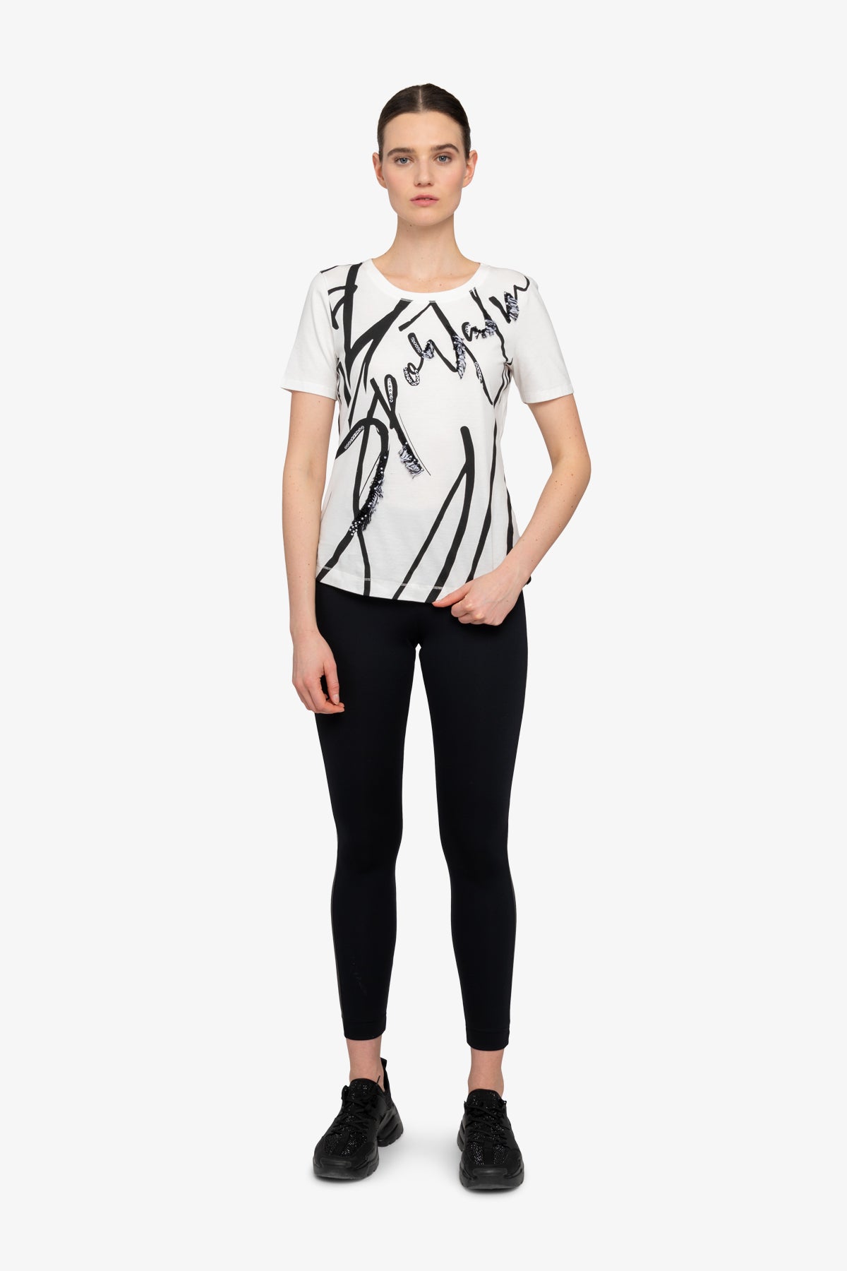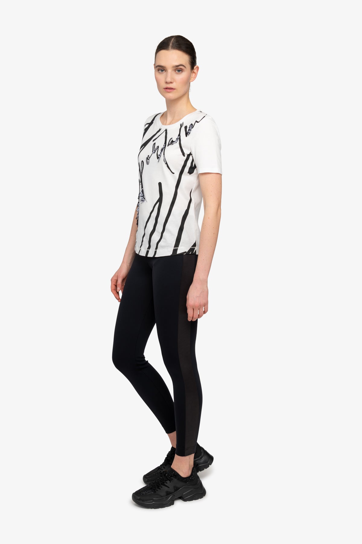 亮片流蘇裝飾圖案圓領T恤