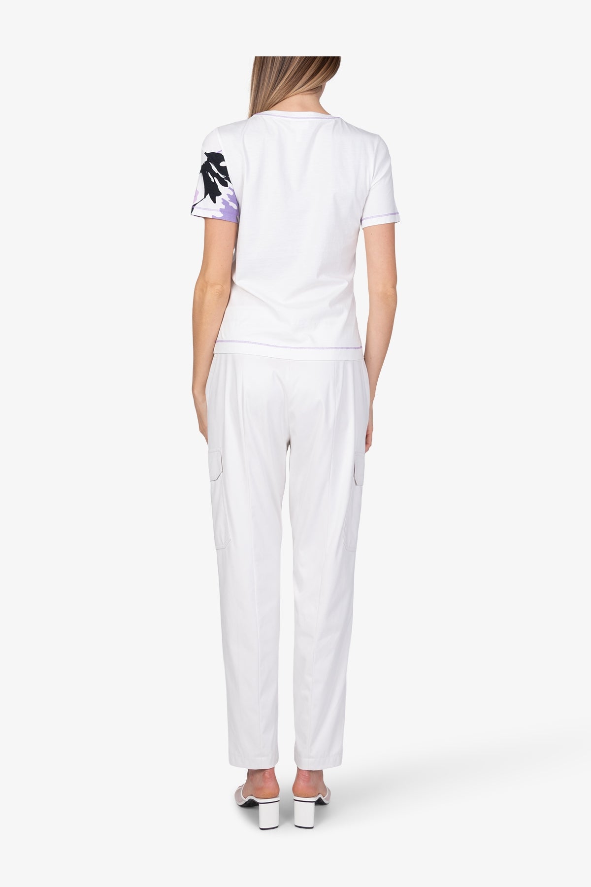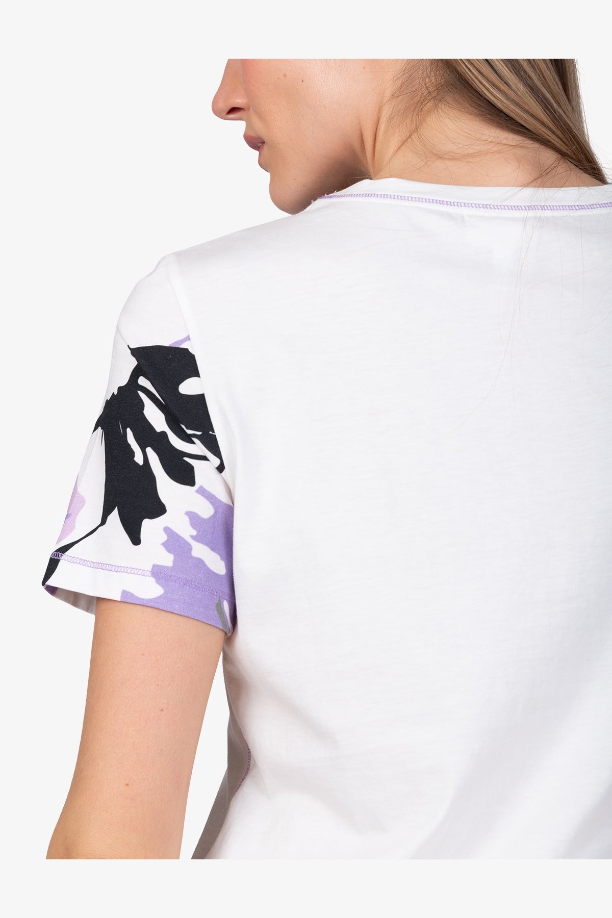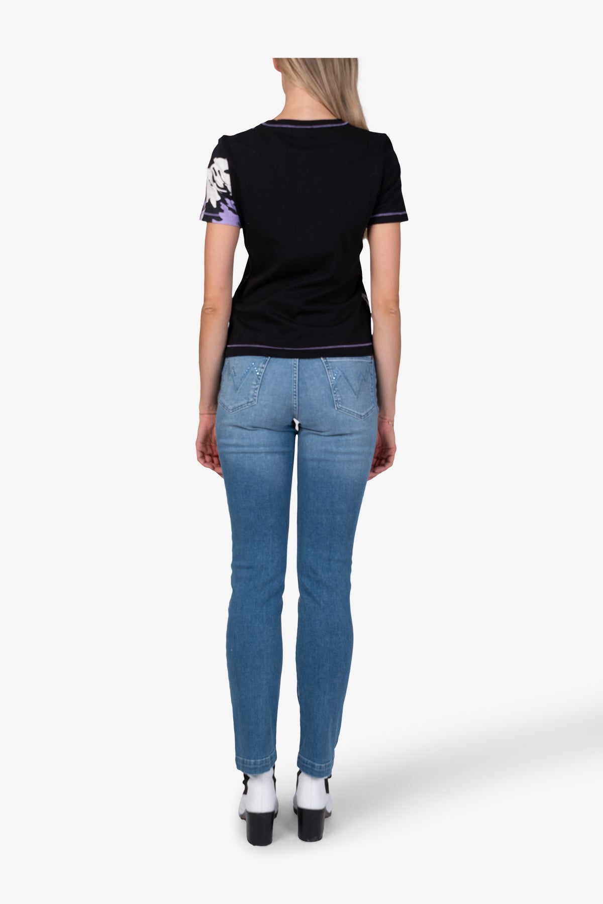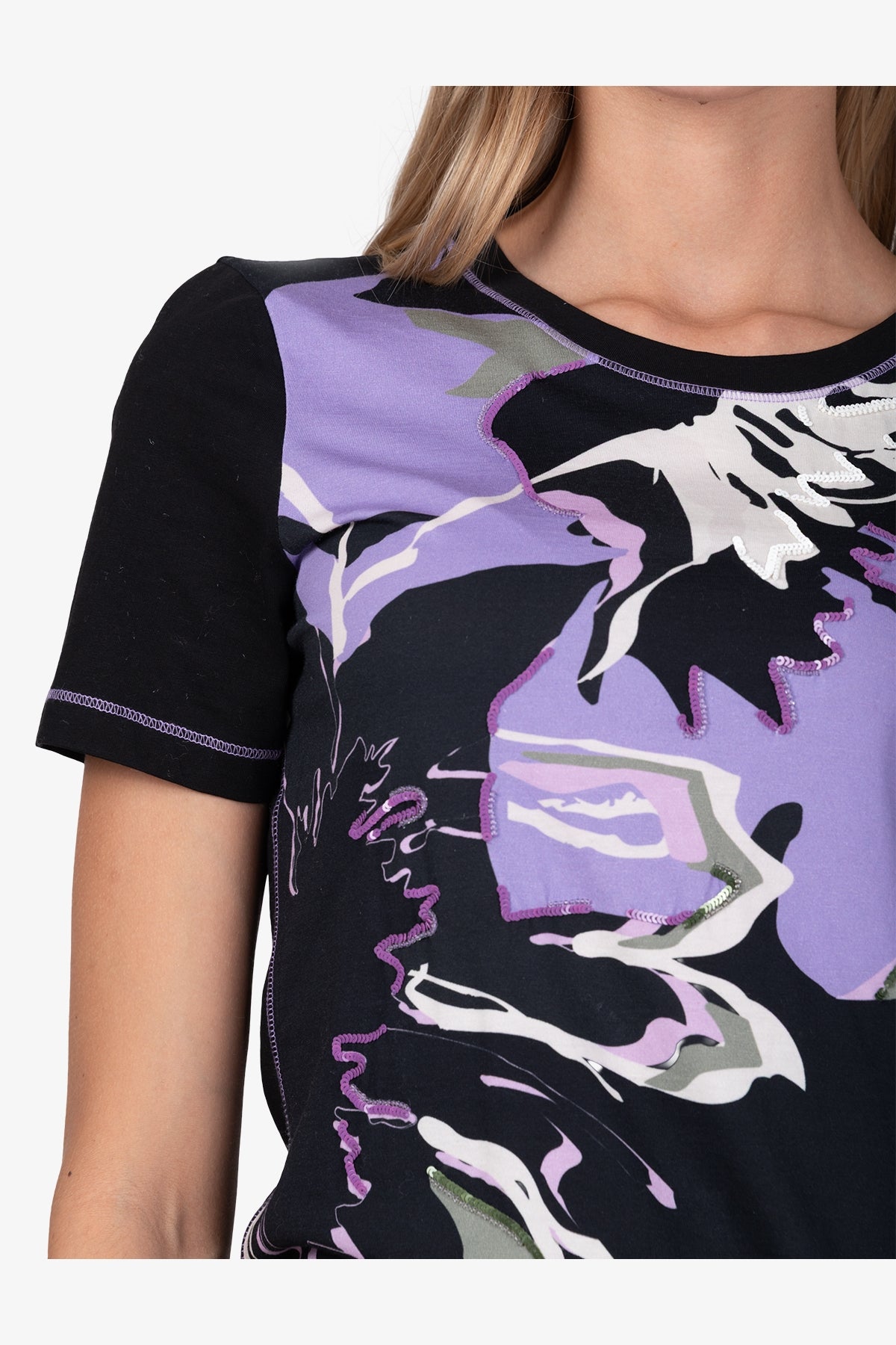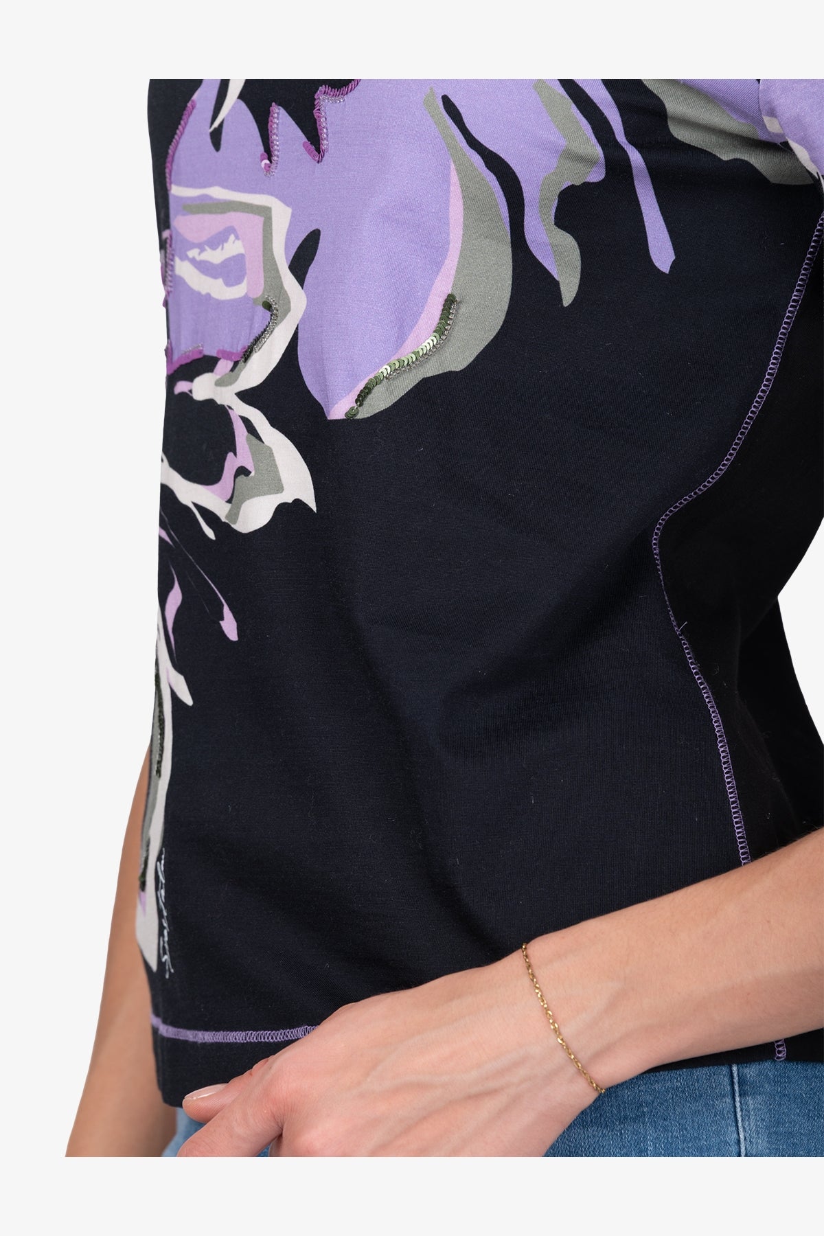 這款襯衫採用優質棉質面料製成,正面飾有花卉印花,令人印象深刻。印花中閃爍的點綴賦予其獨特的優雅氣質,成為時尚吸睛的焦點。