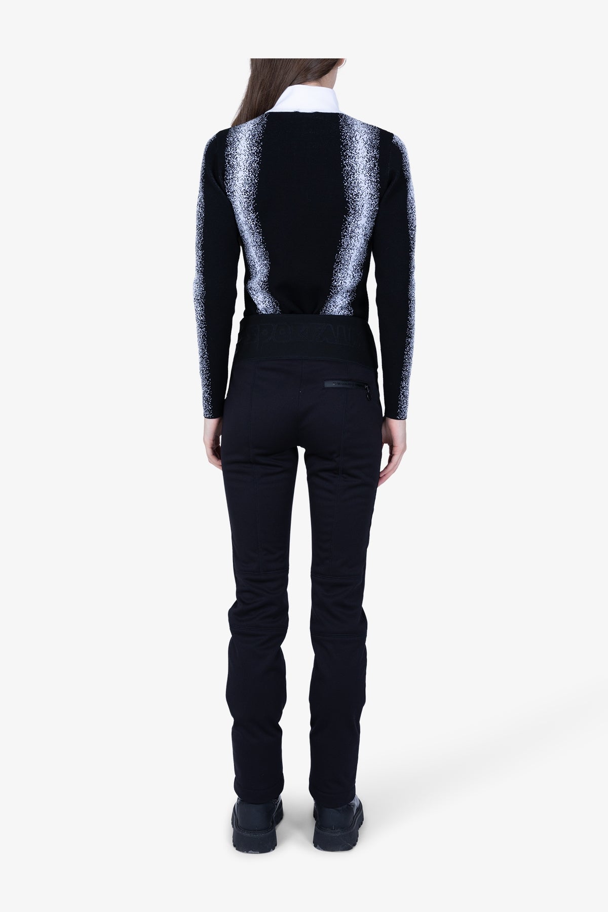 腰帶:正面中央設有可見防水拉鍊,前部採用寬幅潛水布料腰帶,後部採用帶有 Sportalm 字樣的柔軟彈性腰帶。