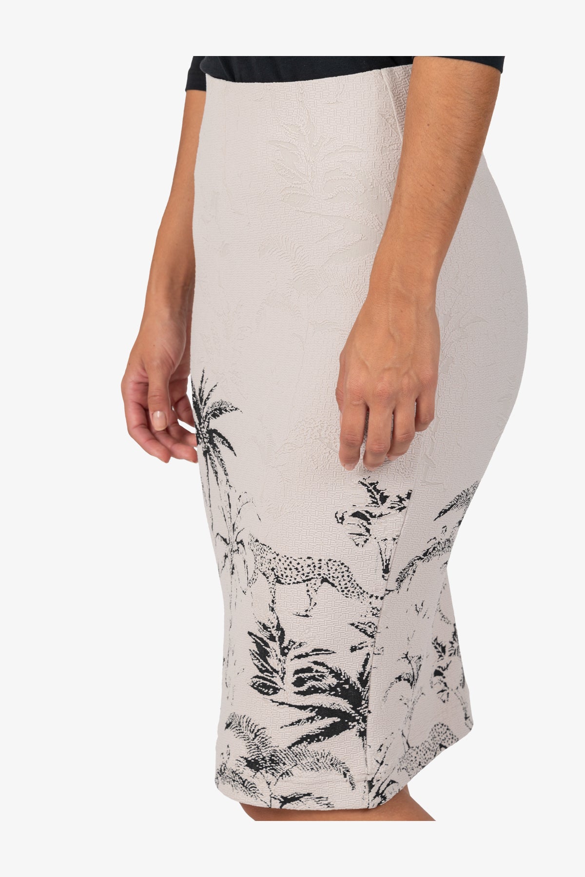 這款由精緻的針織提花製成的鉛筆裙是夏季系列的一大亮點。每個衣櫃都不可缺少的優雅而時尚的單品。
