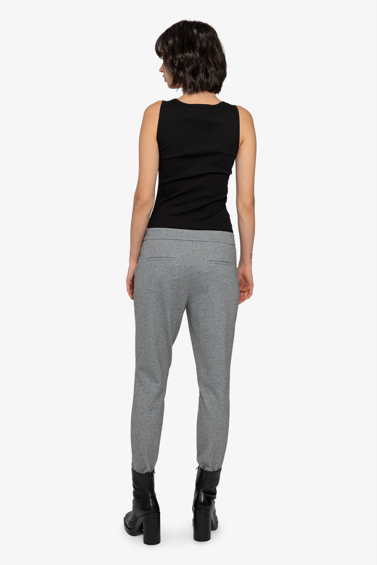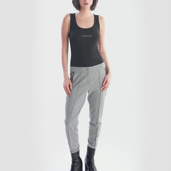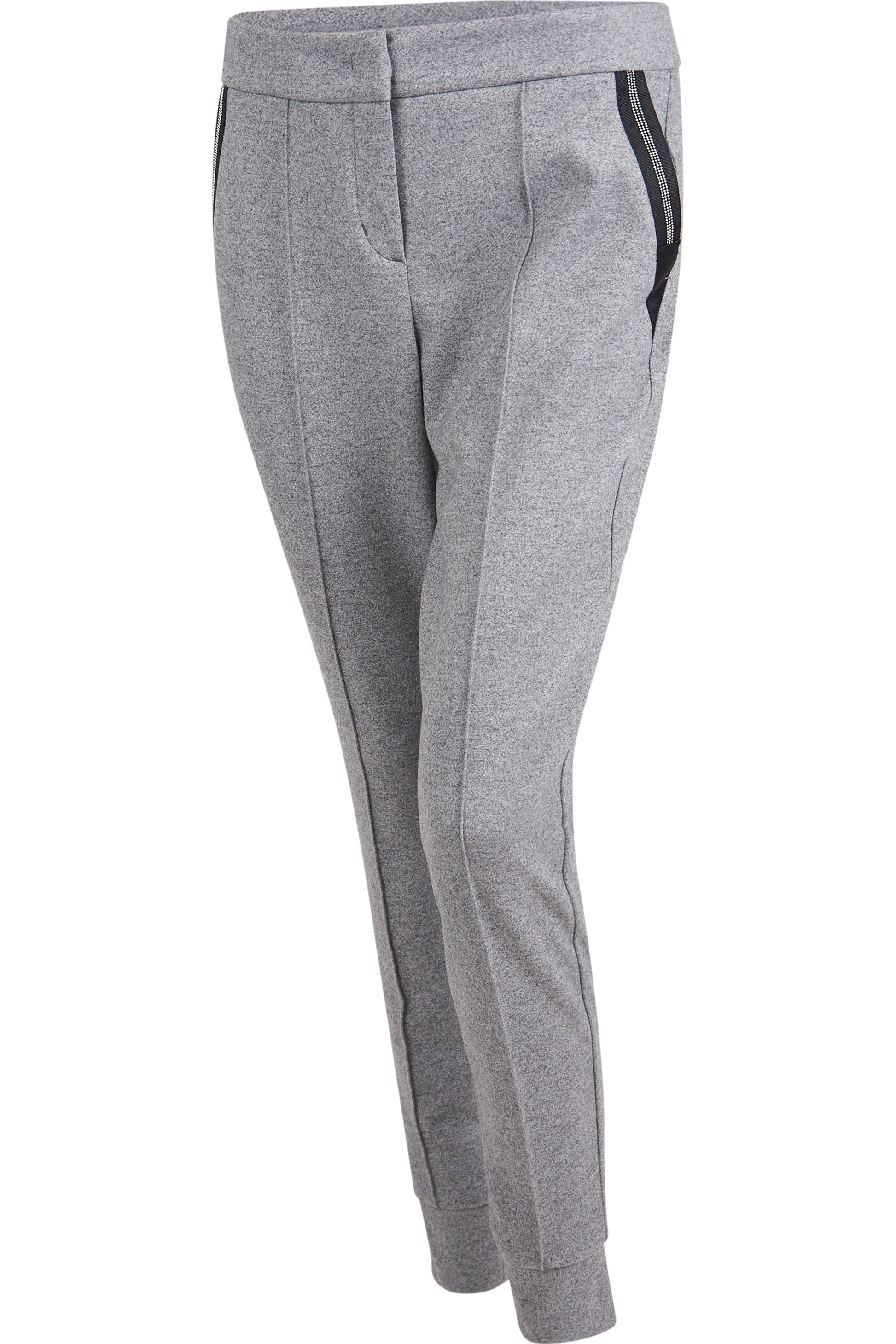 這款法蘭絨平紋針織慢跑褲時尚運動,是打造休閒造型的百搭服裝。附有拉鍊和盲帶鉤,方便穿脫。側袋飾有羅緞絲帶和鏈條細節,為褲子帶來現代氣息。