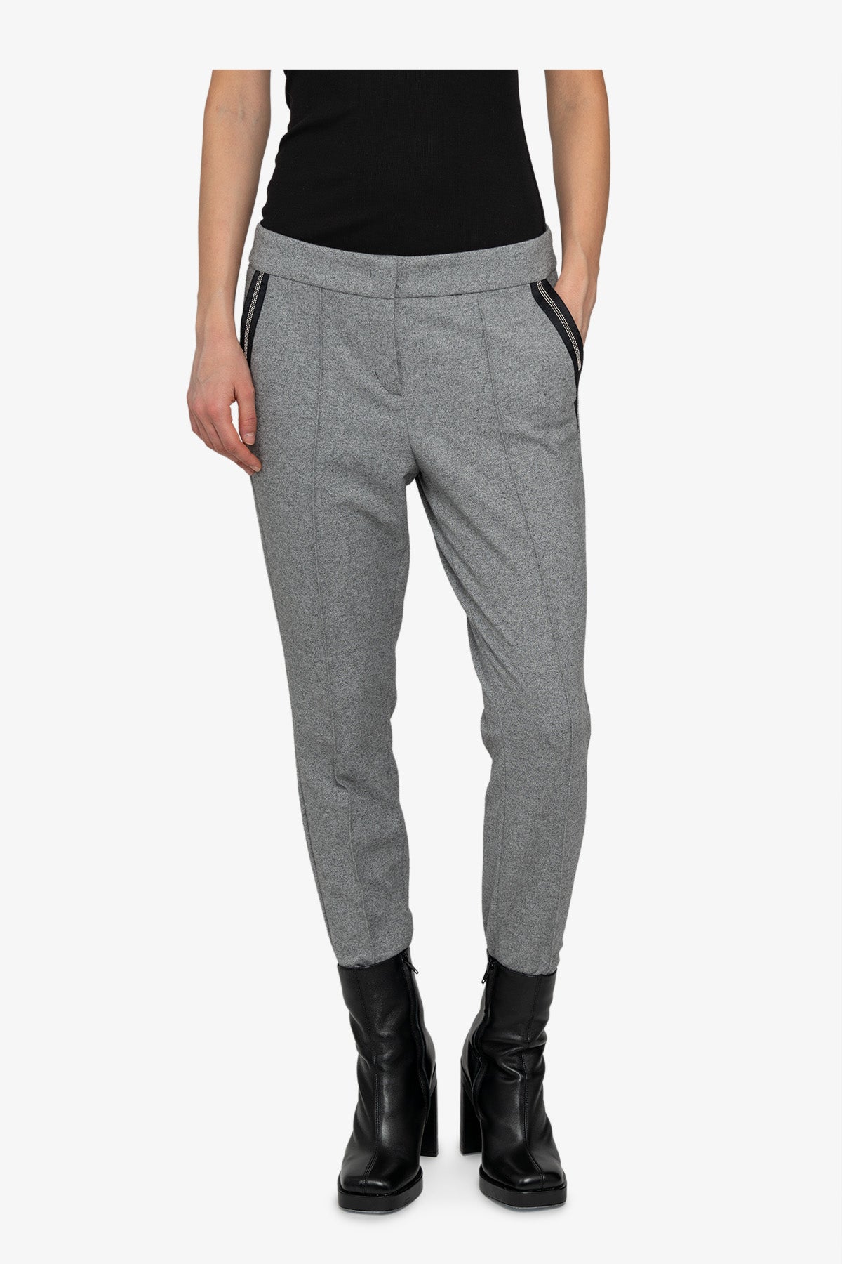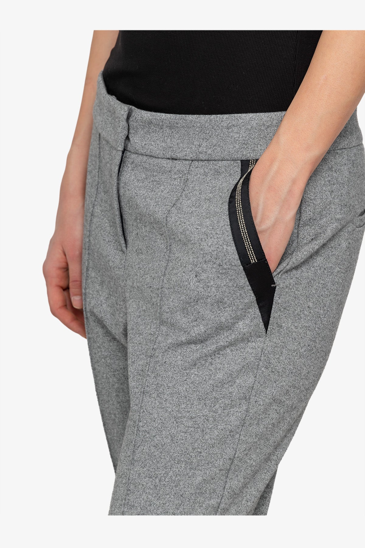 羅緞絲帶裝飾拉鏈口袋休閒褲