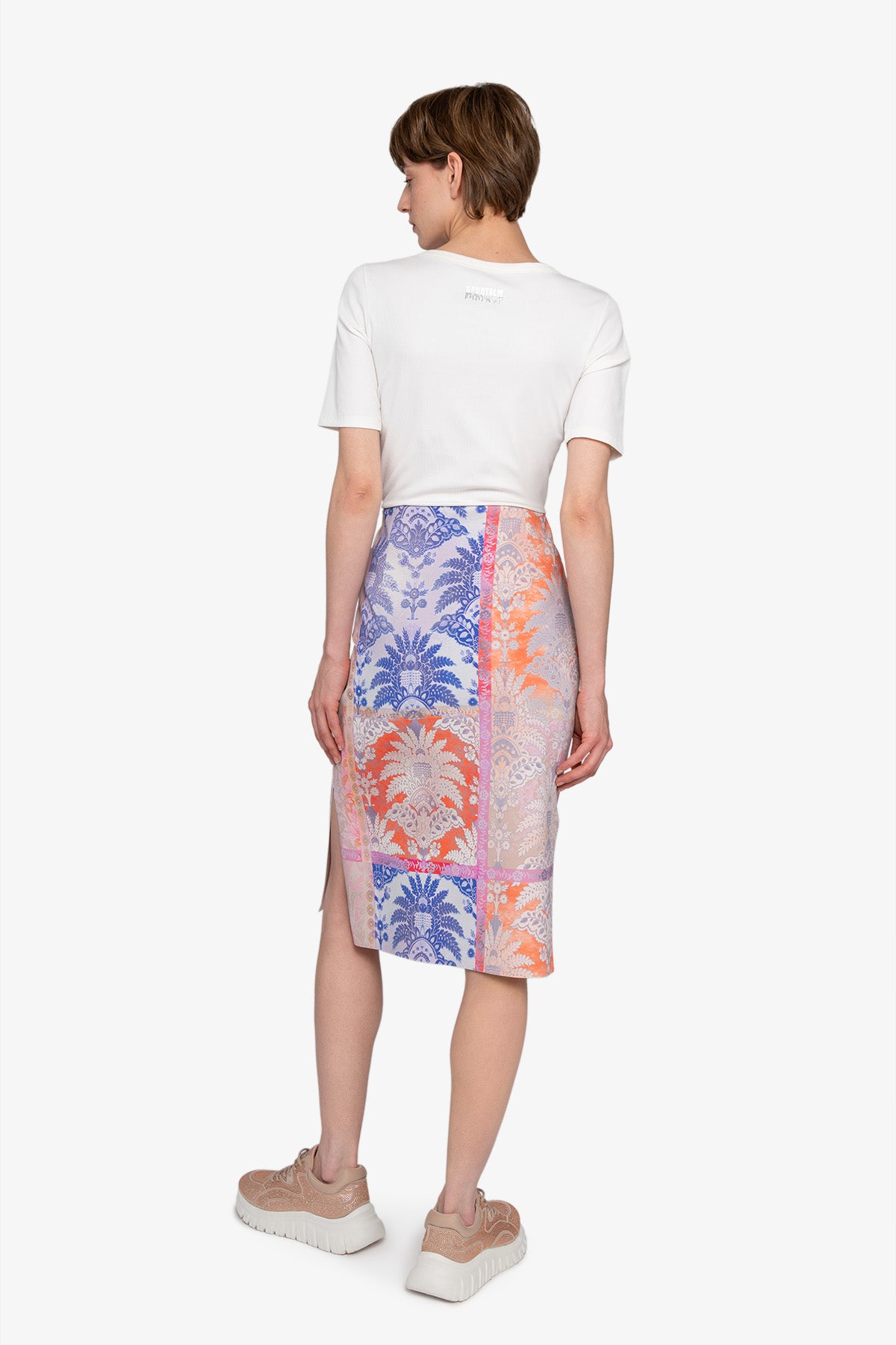 這款時尚、運動的半身裙採用科技彈性布料製成,全身印花,非常引人注目。高腰設計,修身版型,打造迷人輪廓。
