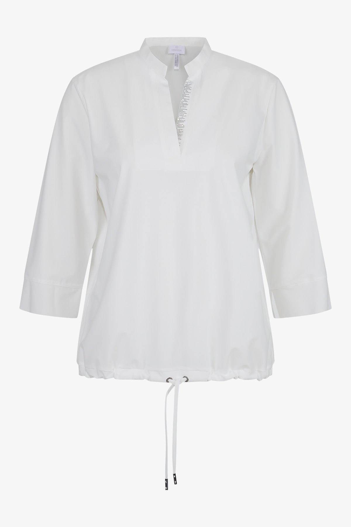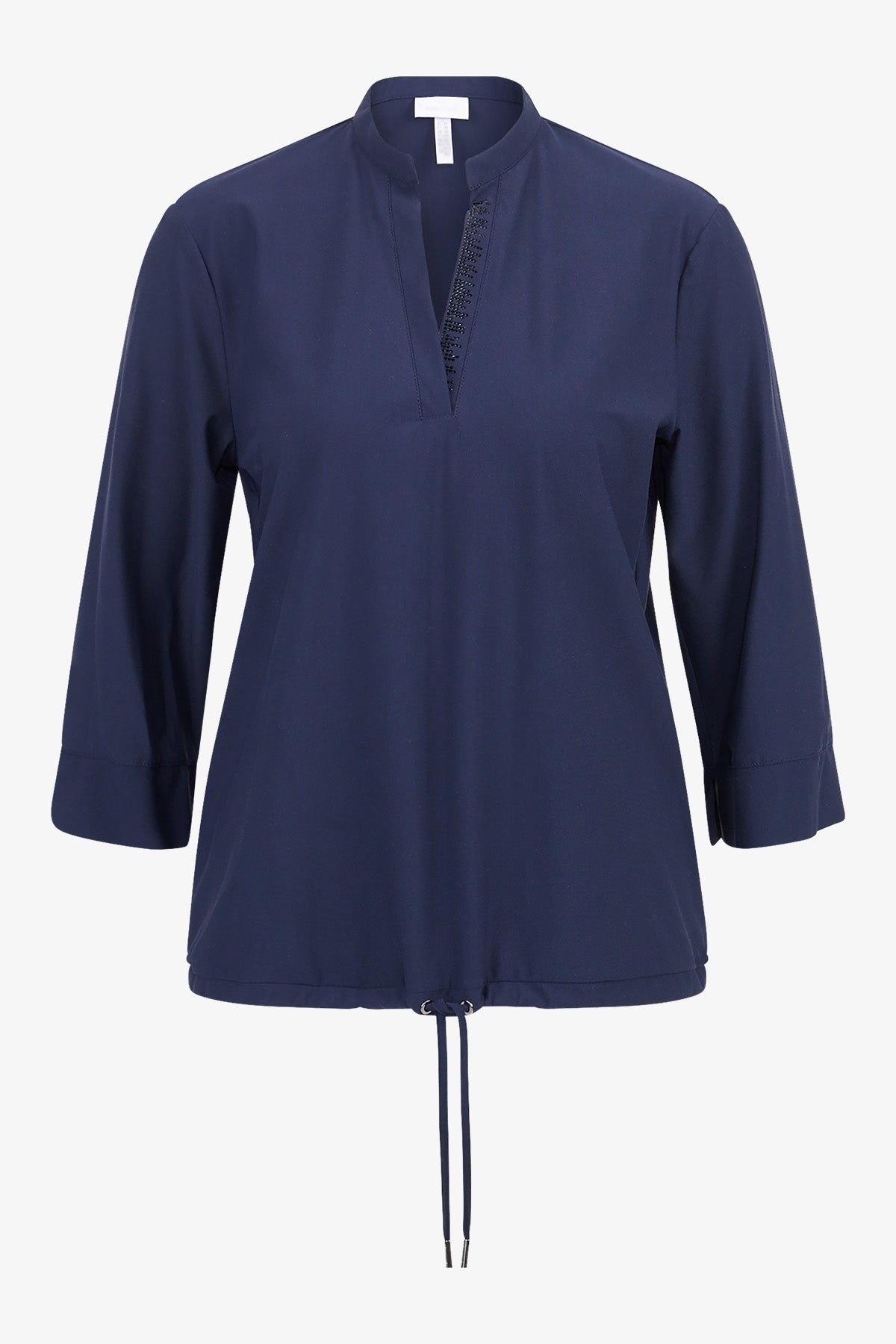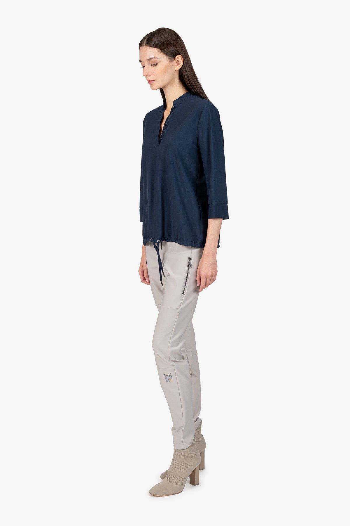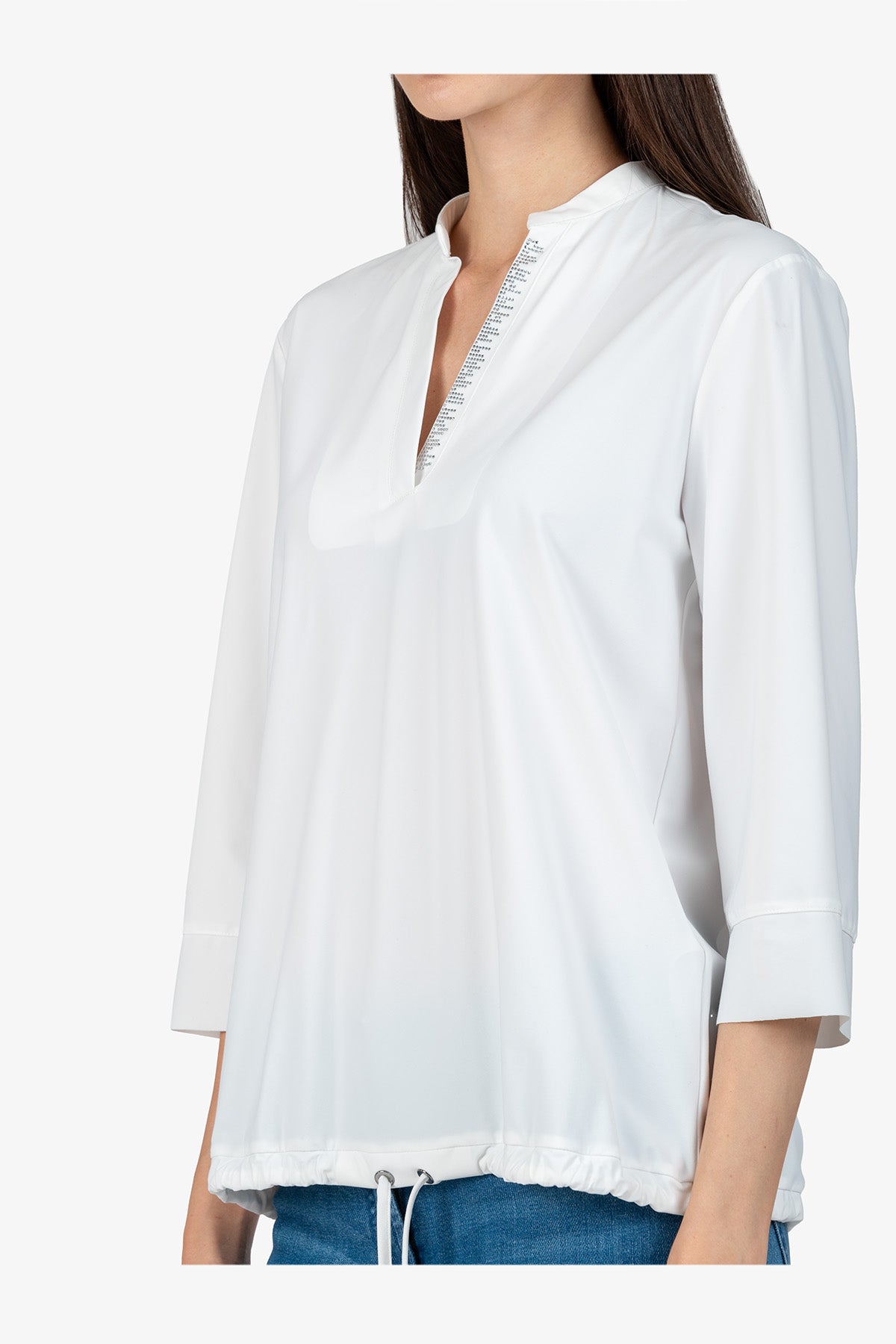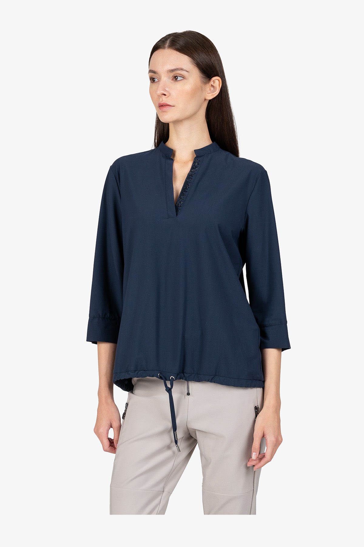 亮點:V領處別緻的水鑽細節、下擺處的隧道可調節寬度、袖子下擺的開邊效果