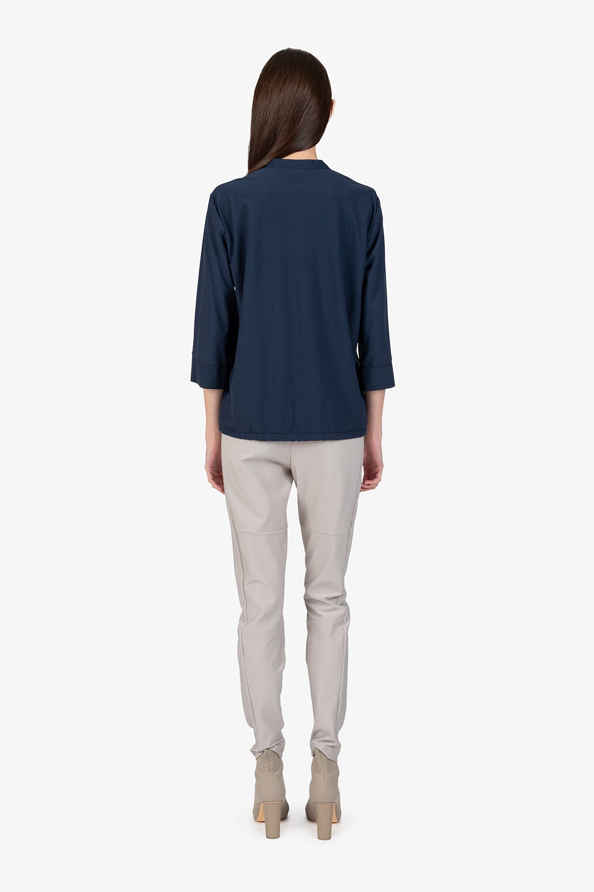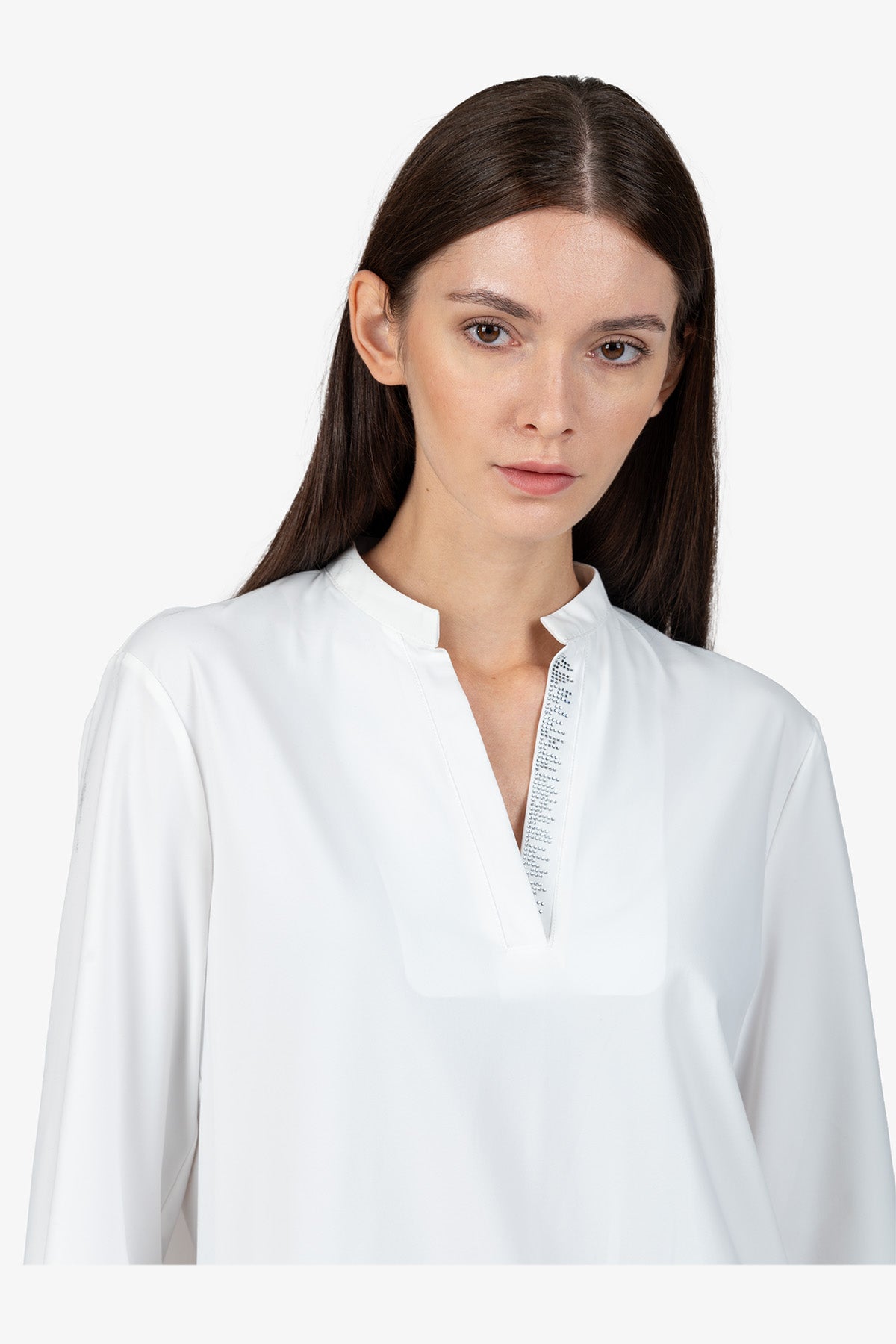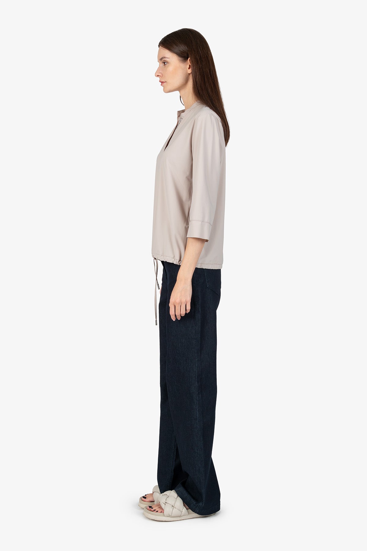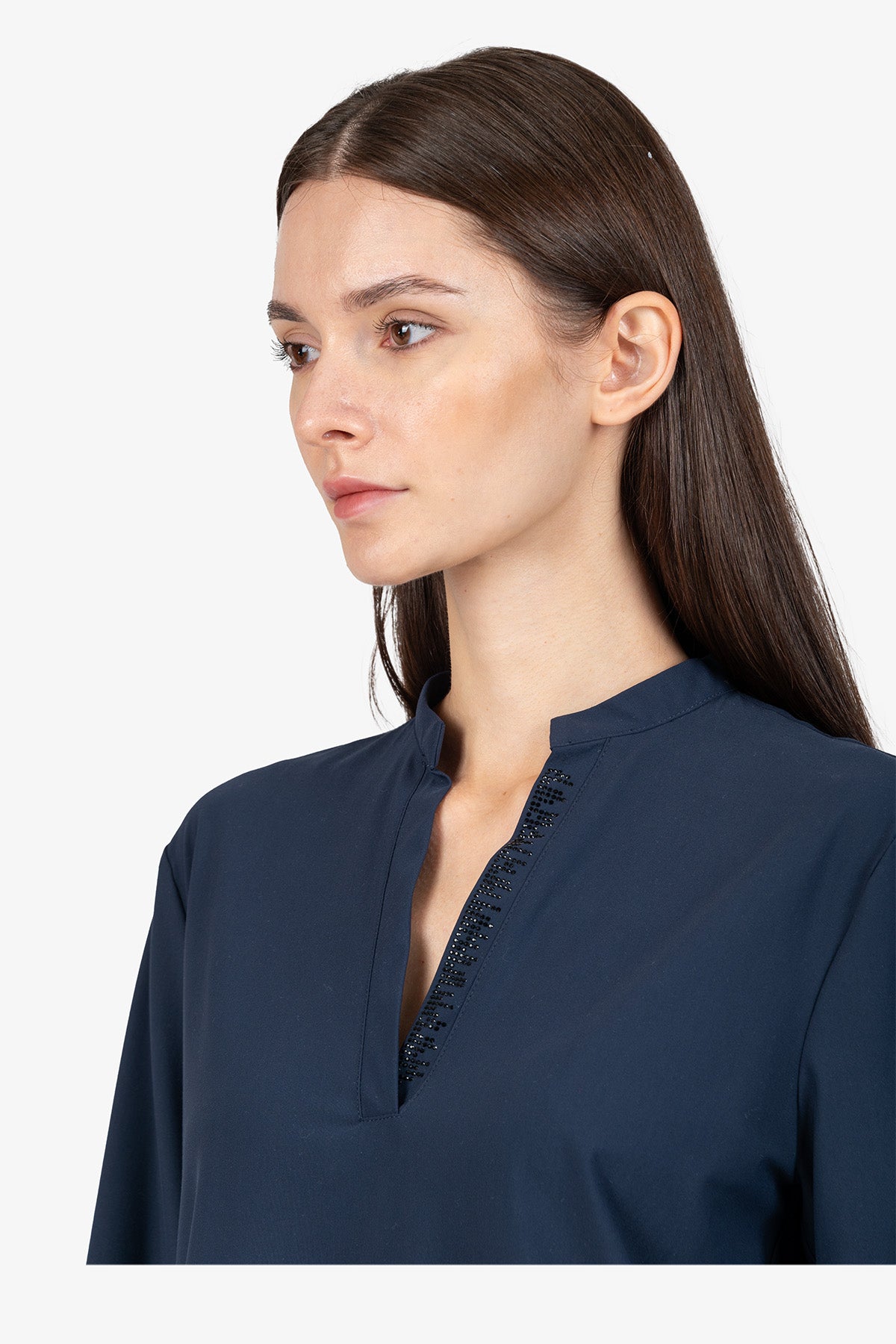 亮點:V領處別緻的水鑽細節、下擺處的隧道可調節寬度、袖子下擺的開邊效果