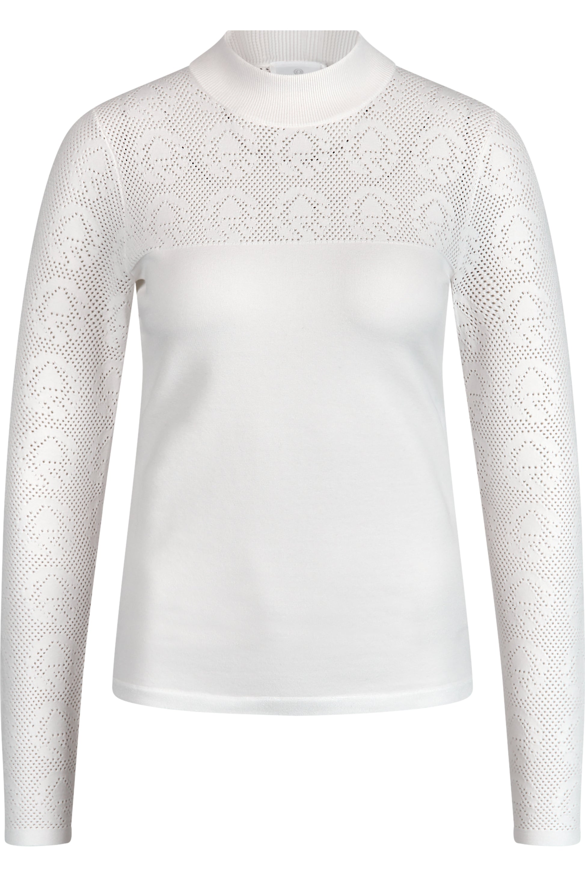 袖子、肩部和背部採用創新網眼針織面料,鑲嵌有閃亮的粘膠彈性纖維材質的 Sportalm 徽標,為這件毛衣帶來現代時尚的觸感。