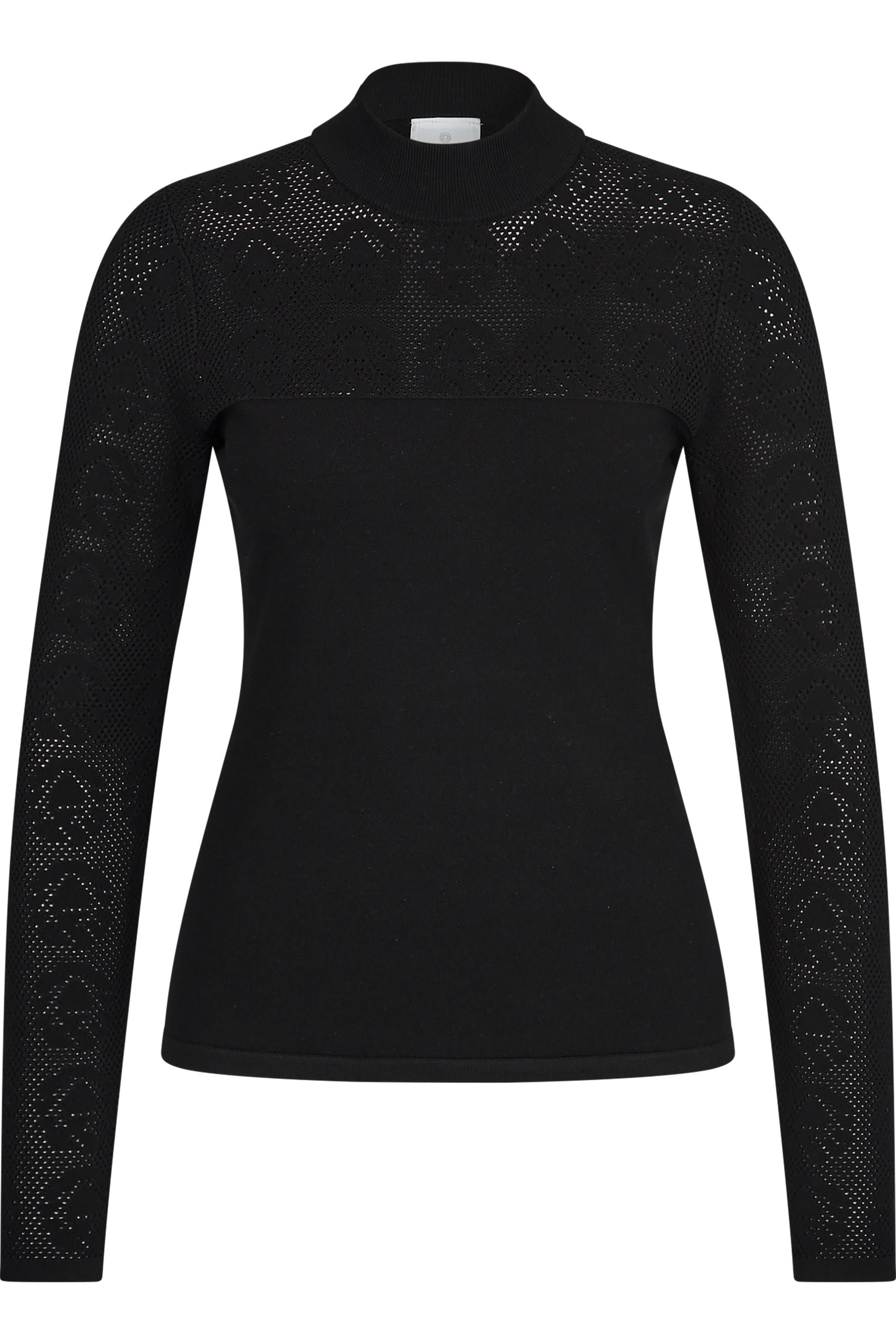 Logo圖案網紗拼接高領毛衣