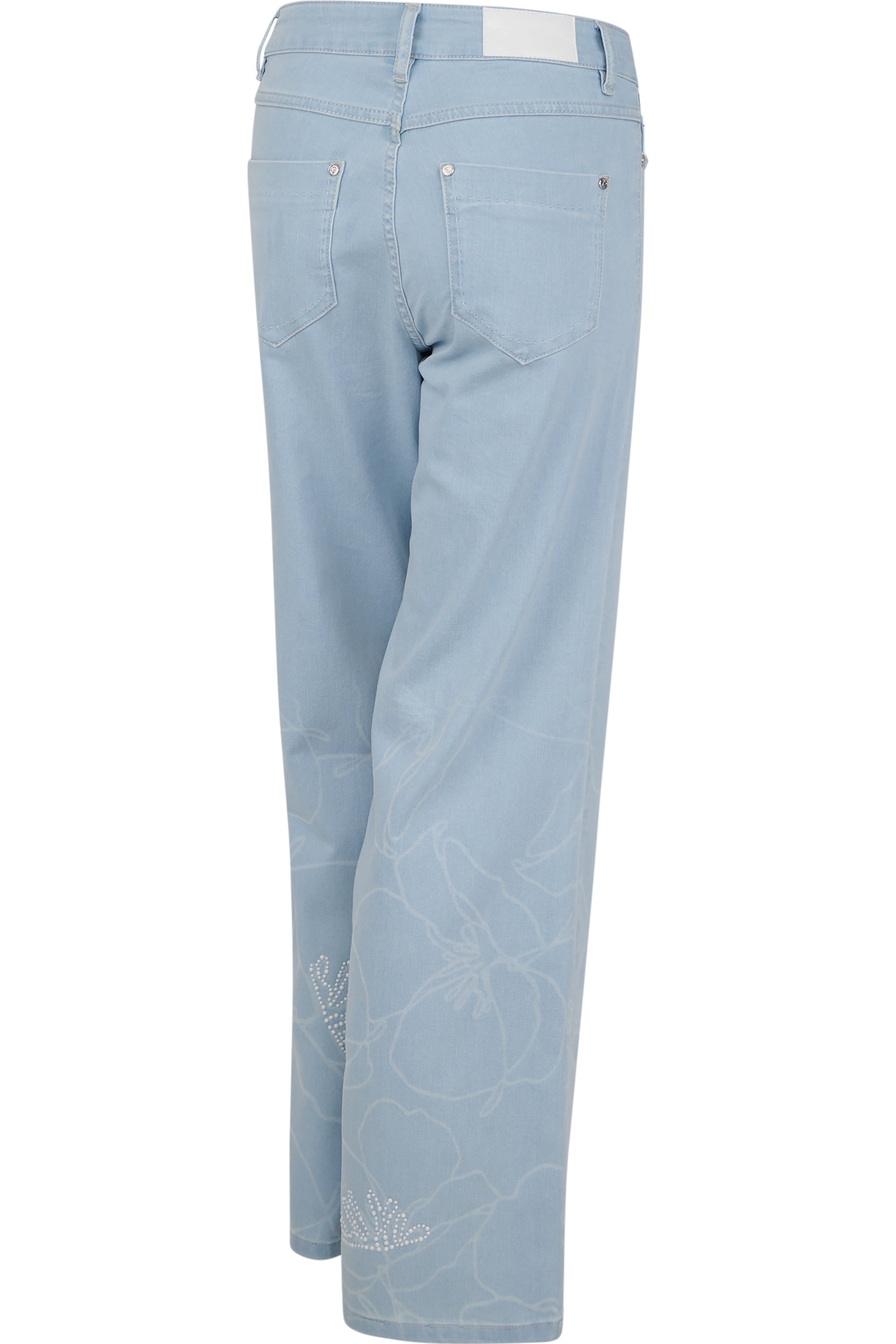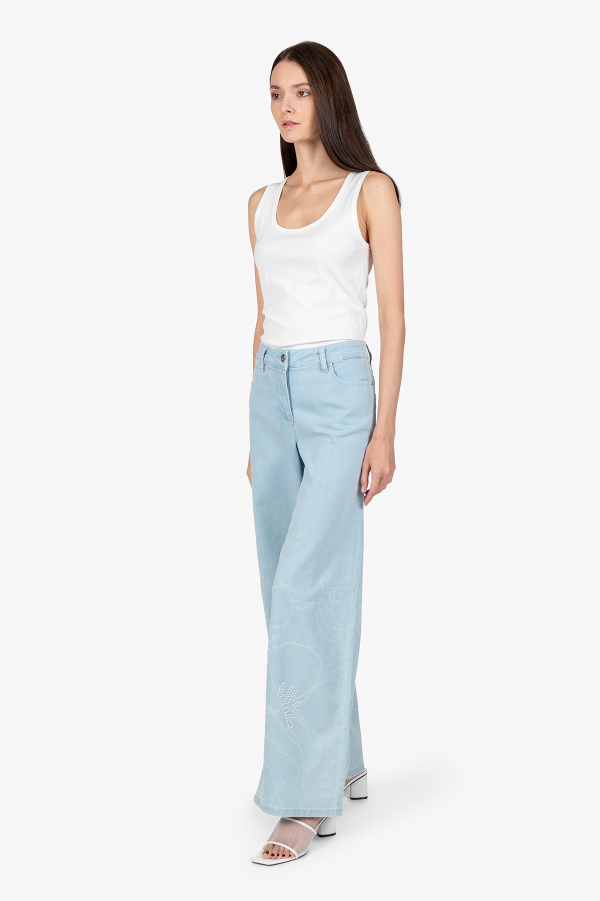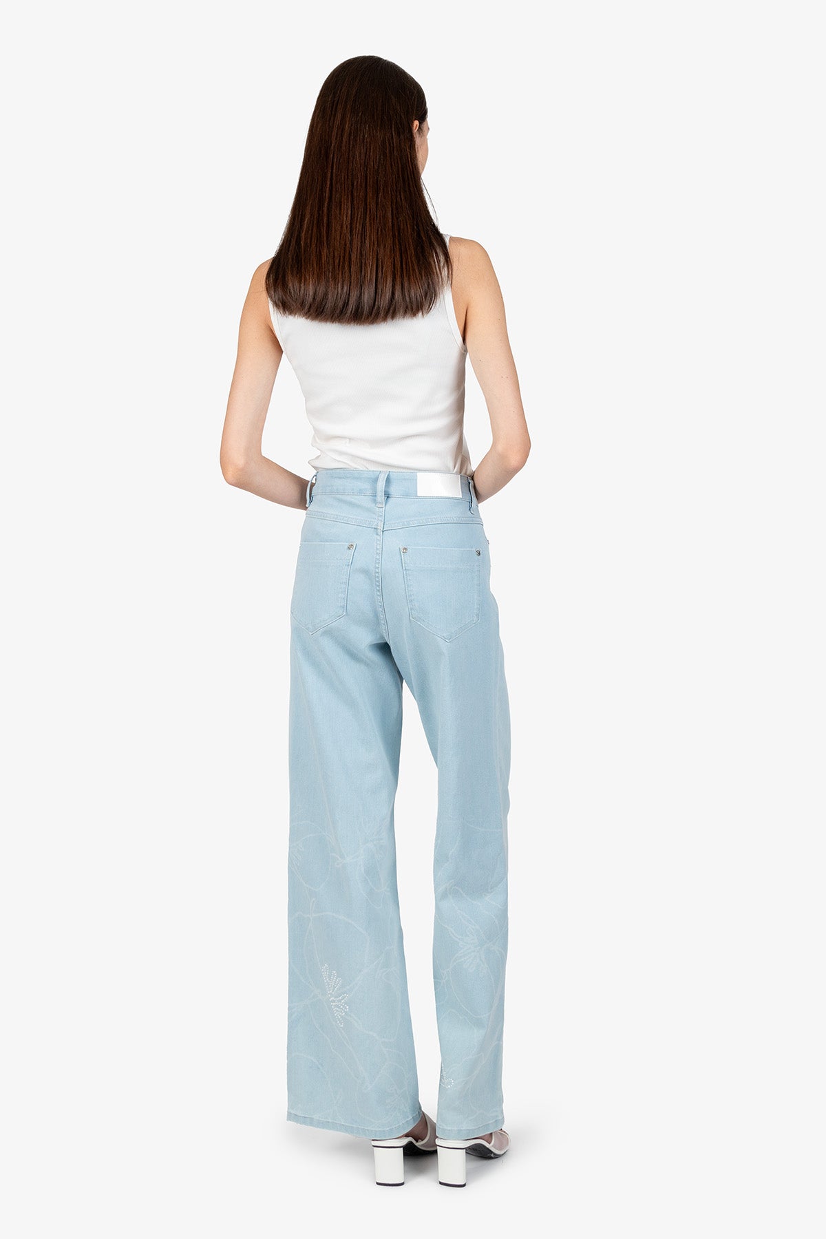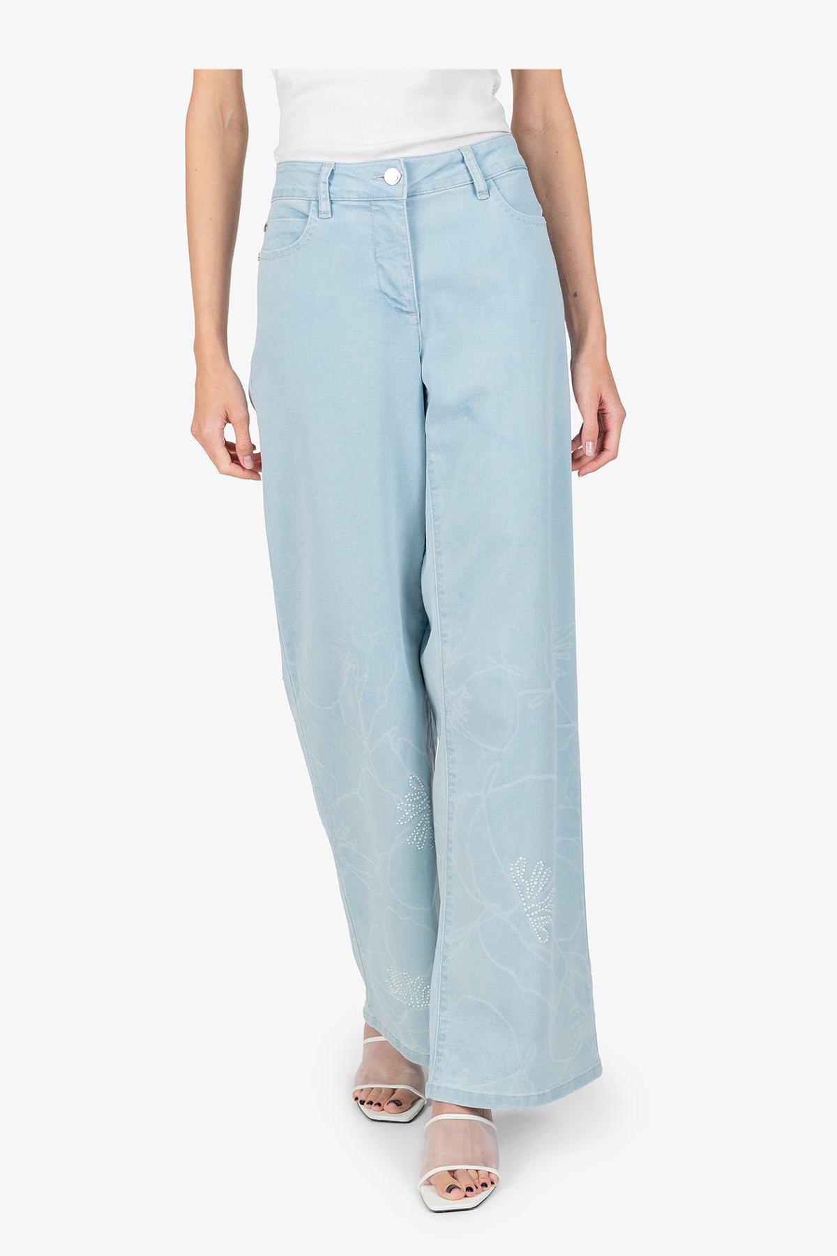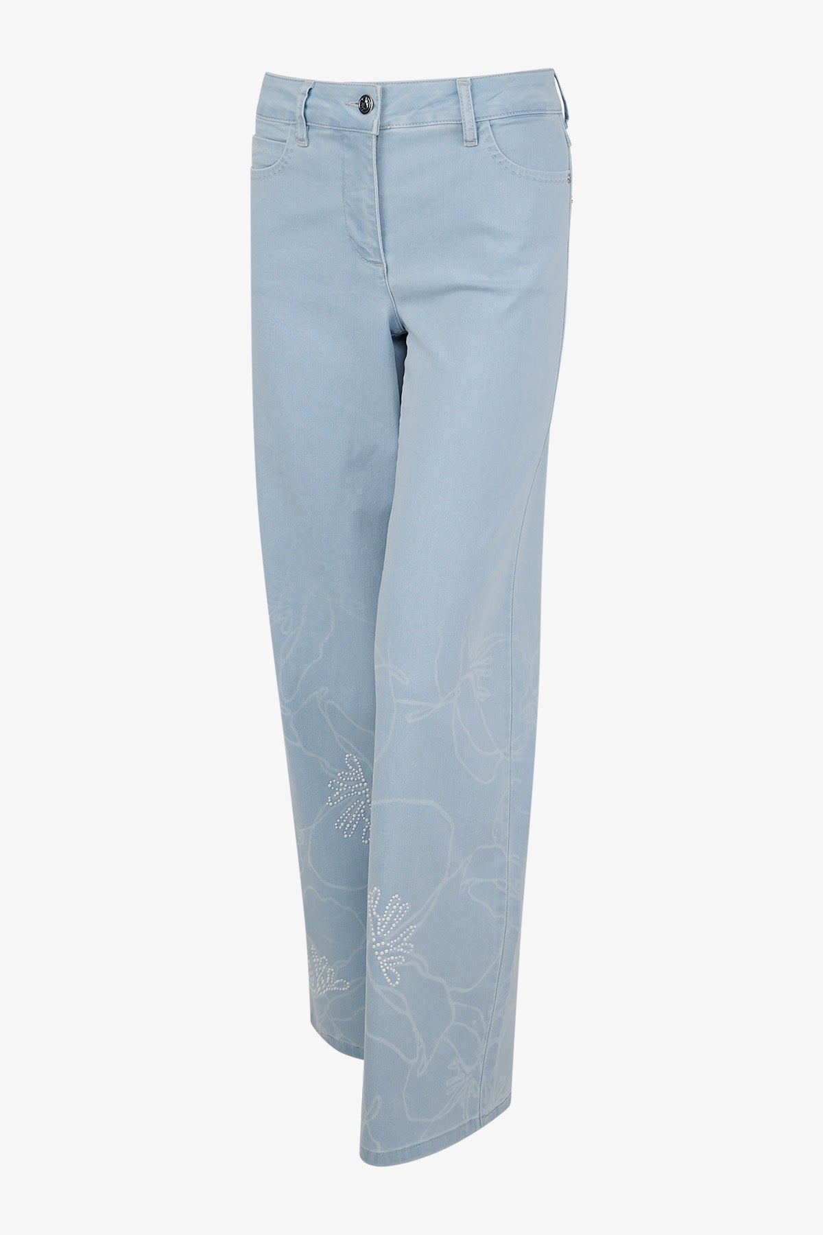 這些帶有雷射花卉印花和 3D 珍珠細節的牛仔褲非常引人注目。它們將獨特的設計元素與高品質相結合,非常適合時尚和引人注目的服裝。