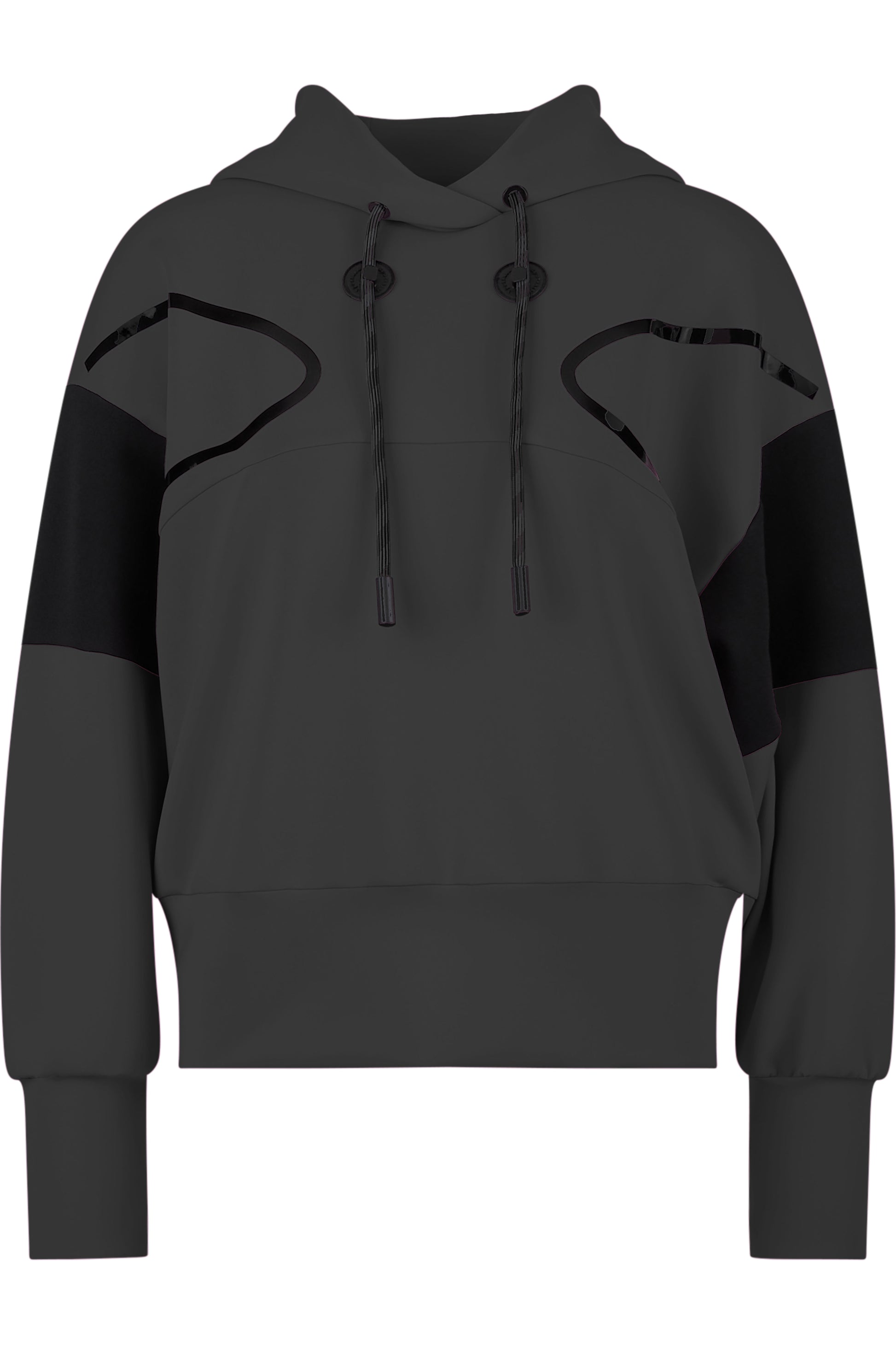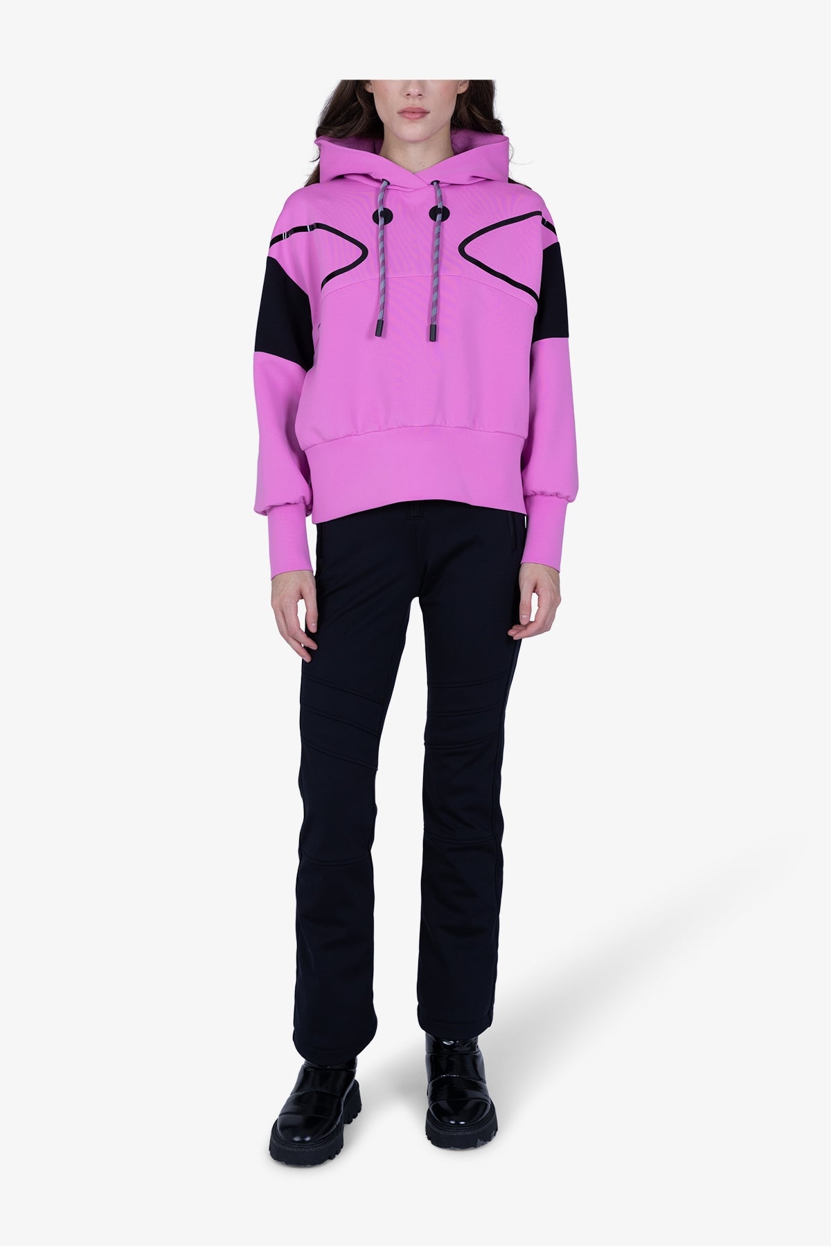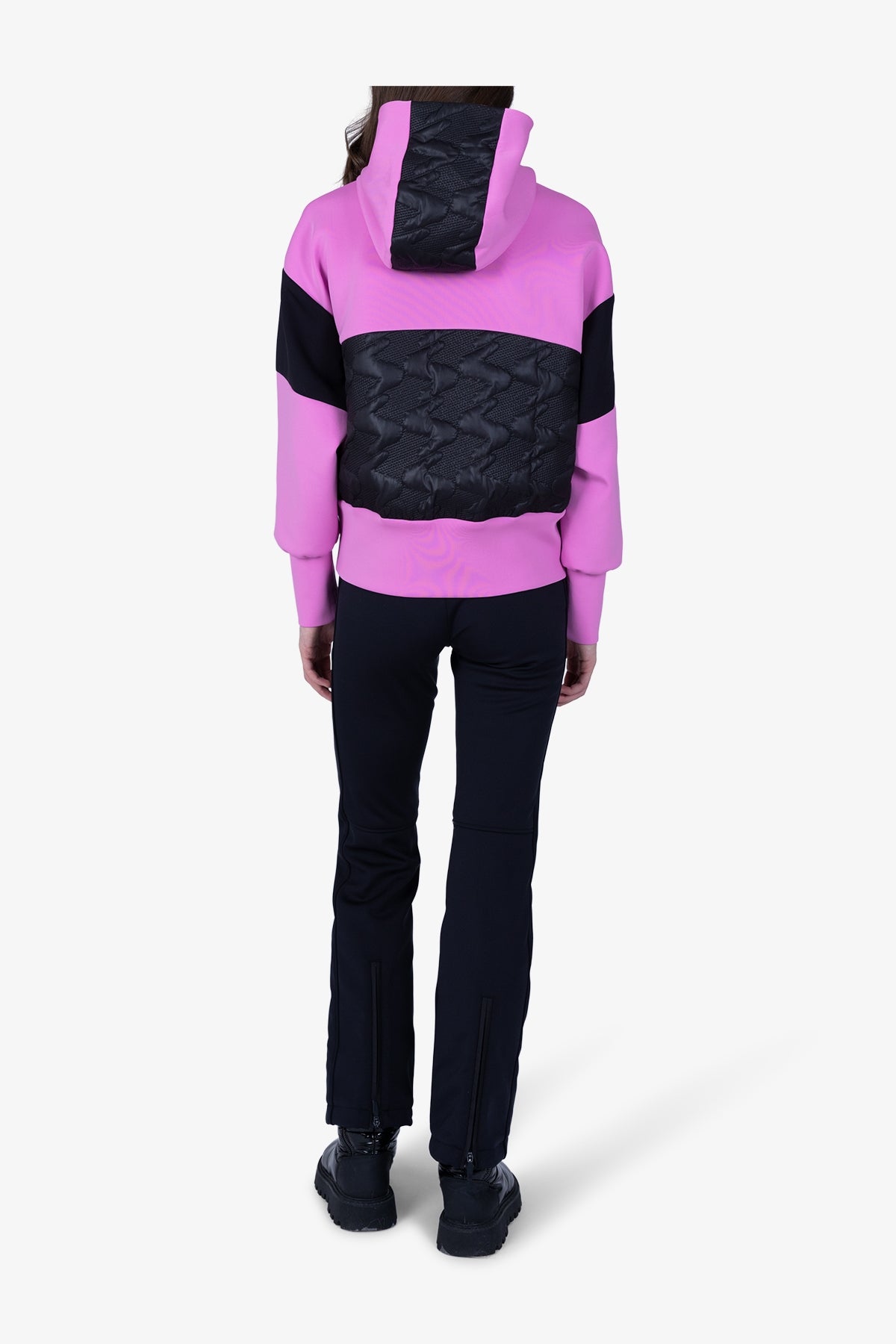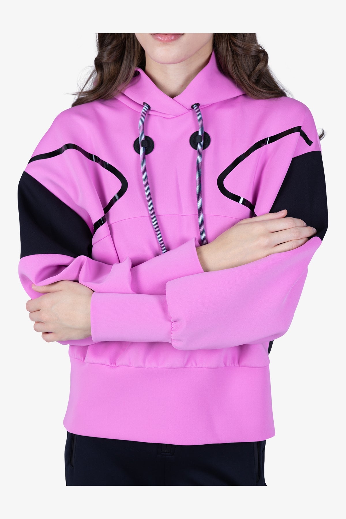 亮點:正面有雷射圖案,背面和帽子有絎縫布料,下擺寬大