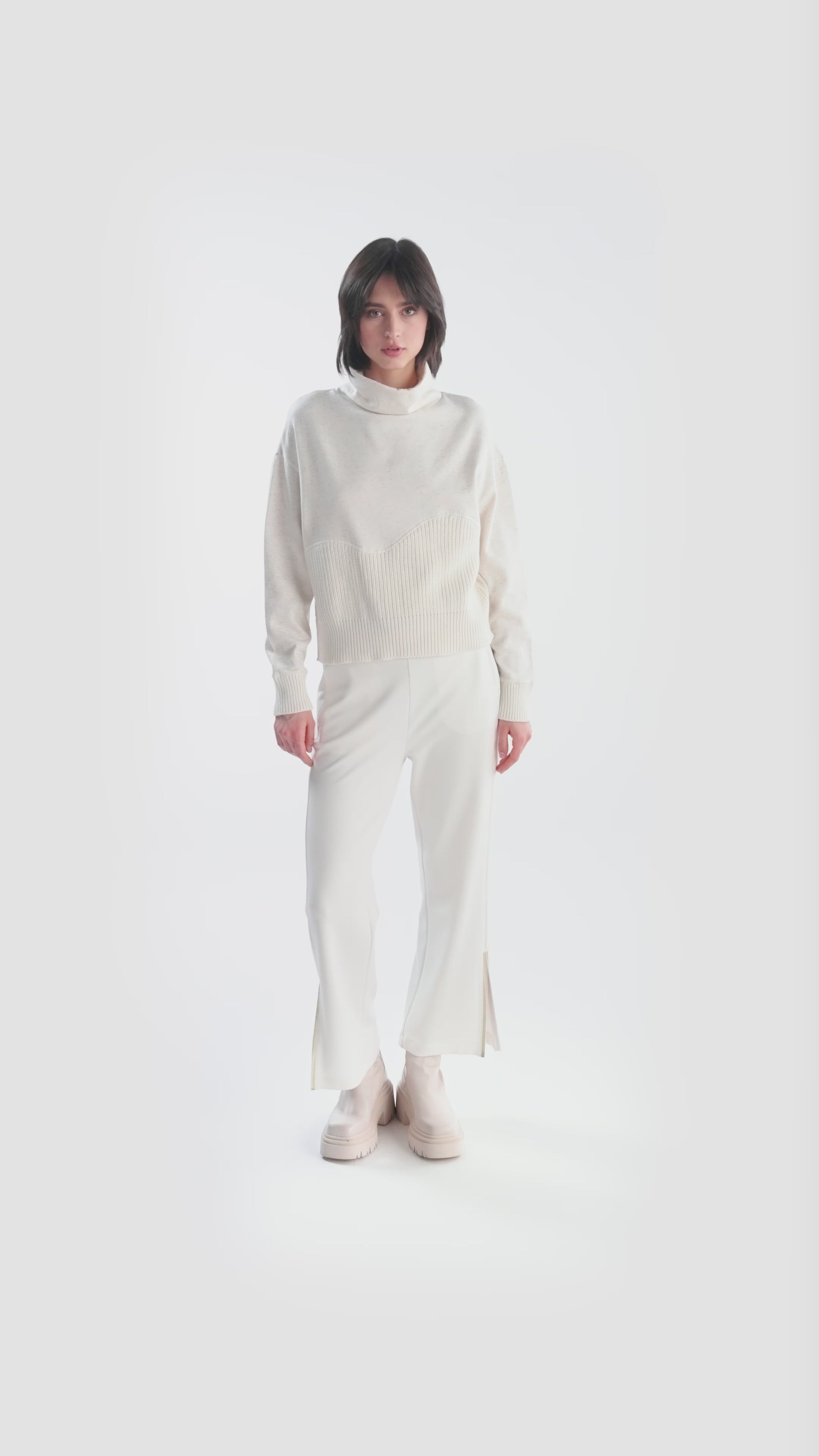 高領針織拼接毛衣