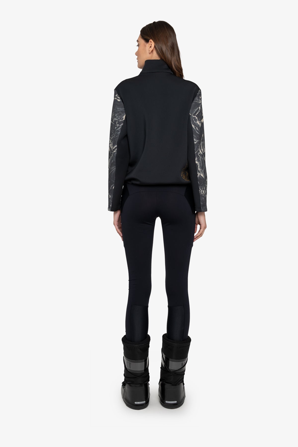 這款立領運動衫採用柔軟的潛水衣製成,正面和袖子上飾有大膽的淺金色金屬印花。單色背面飾有淺金色 Sportalm 字樣轉印。