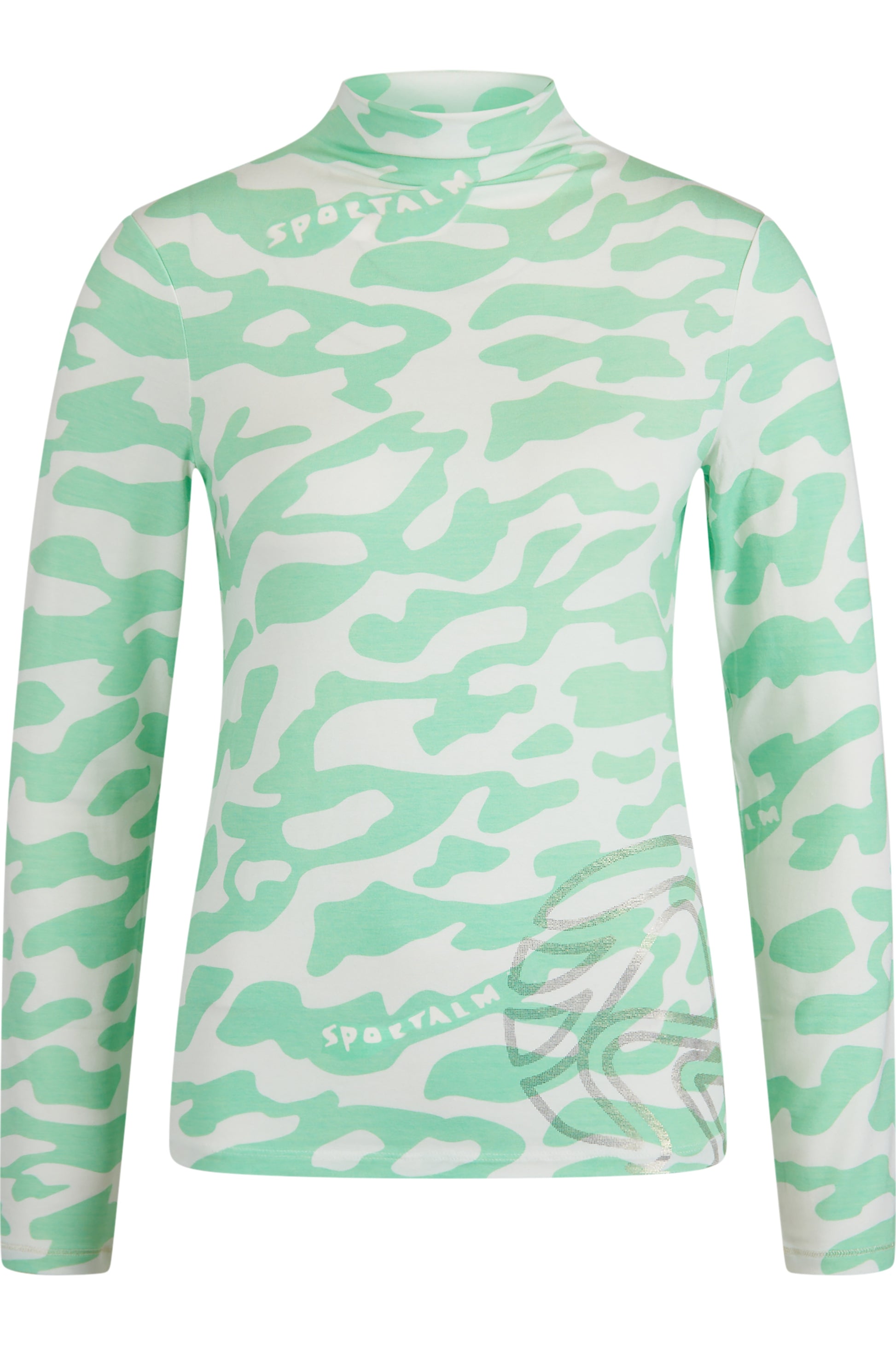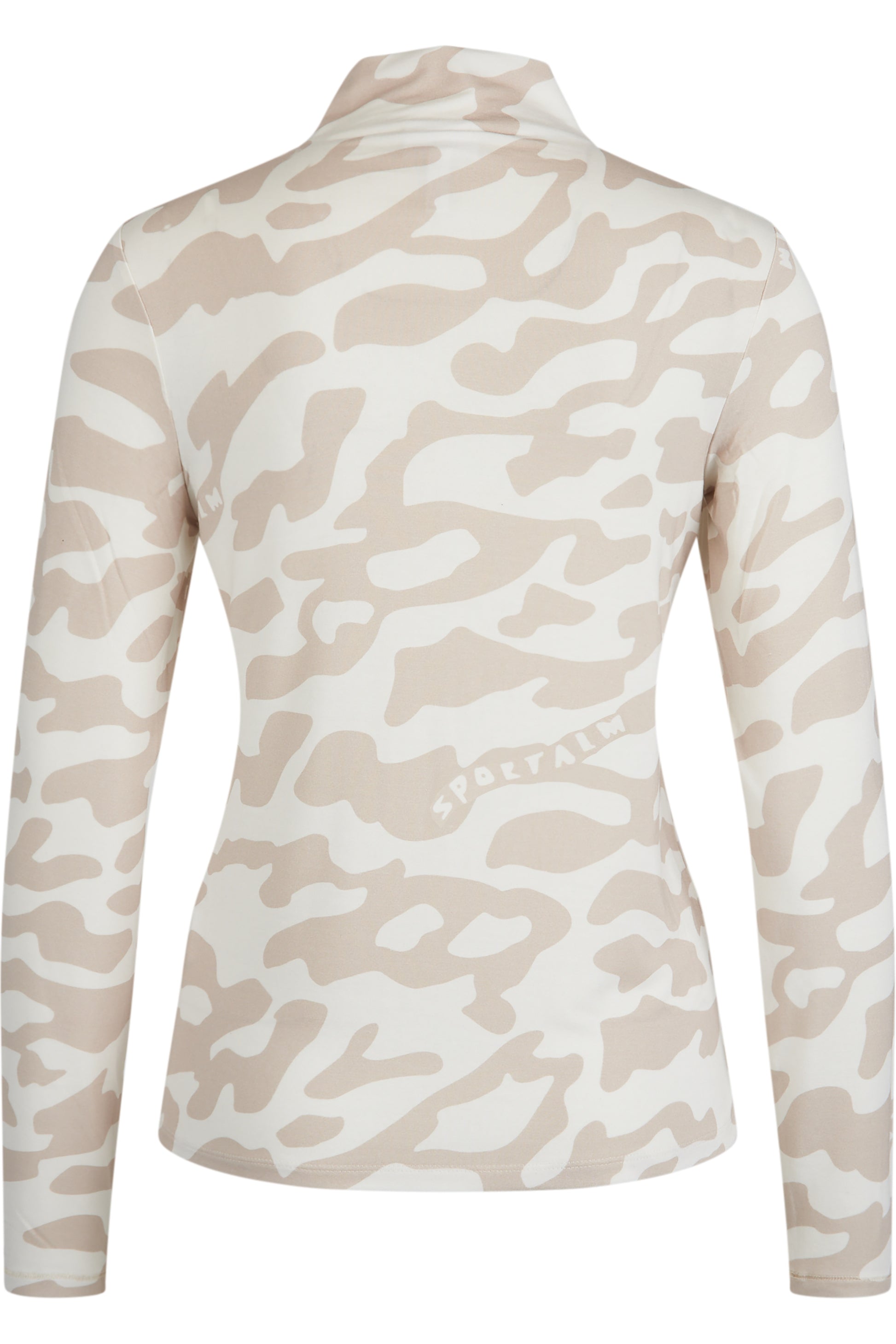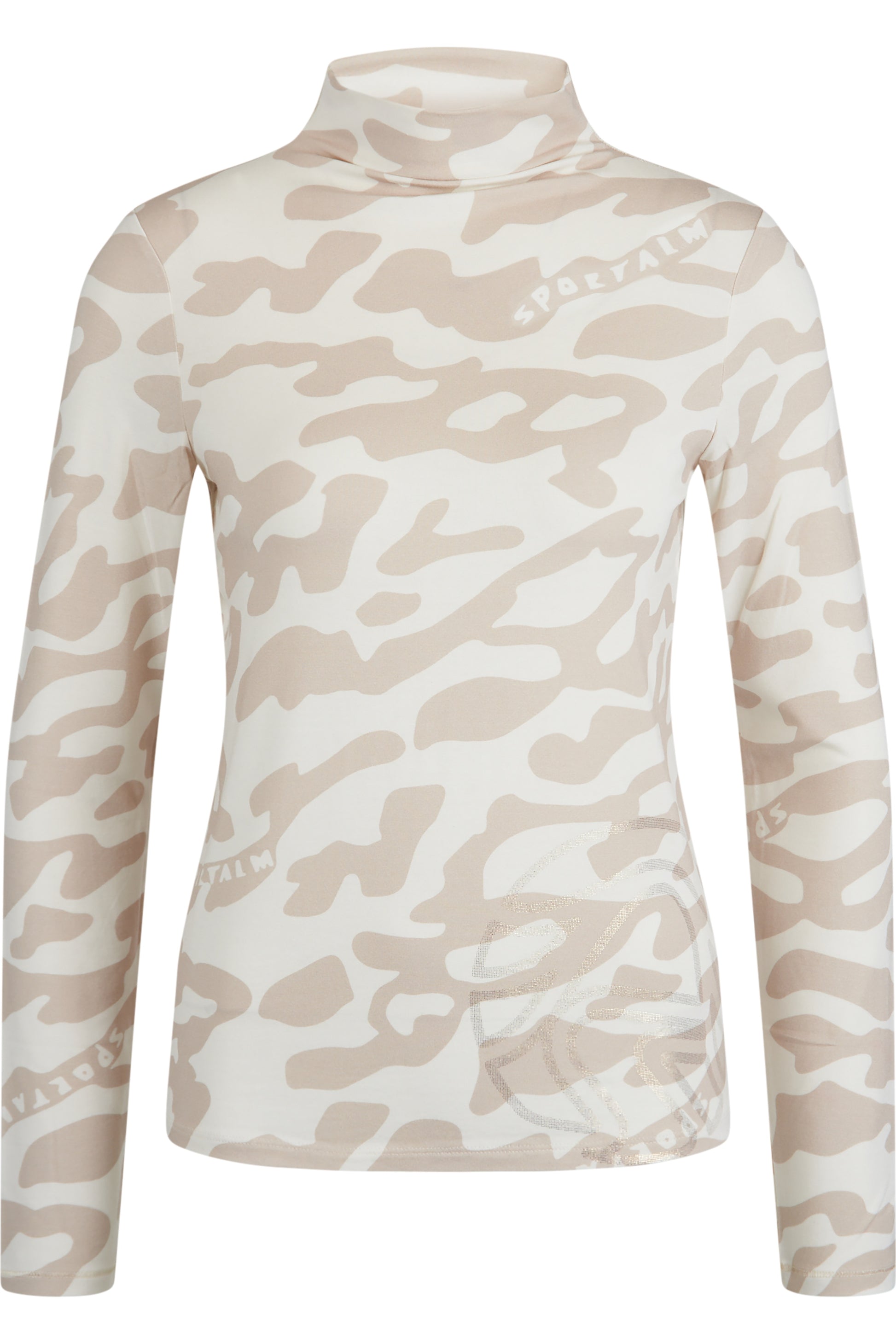 這款短款高領襯衫具有超柔軟的莫代爾品質、修長的袖子和合身的廓形,給人留下深刻的印象。正面的圓點金屬印花完美地展示了下擺上的 Sportalm 標誌。肩部採用冰金色金屬紗線的窄裝飾接縫賦予襯衫高貴的氣質。