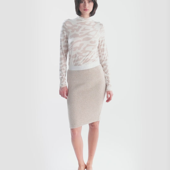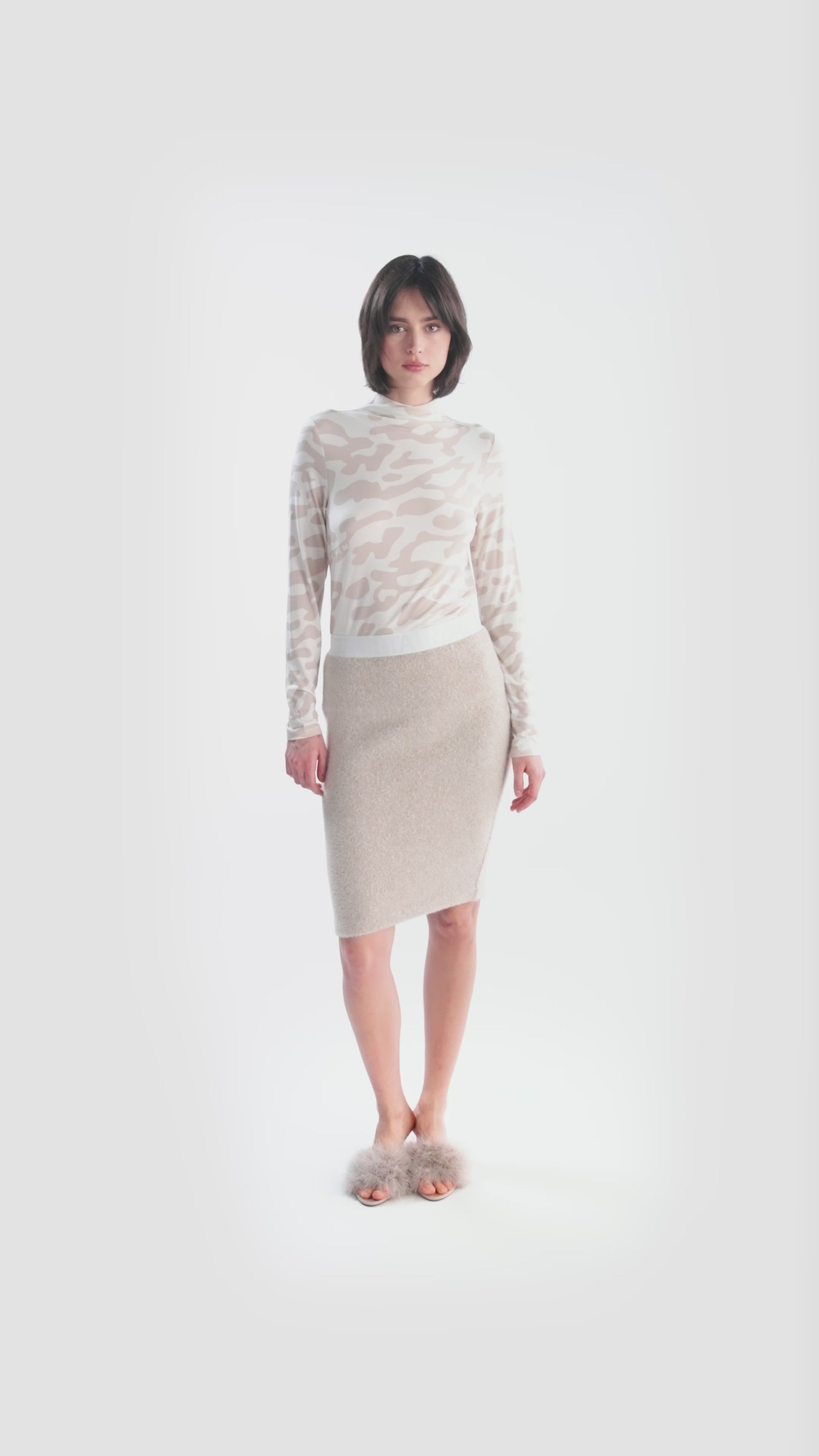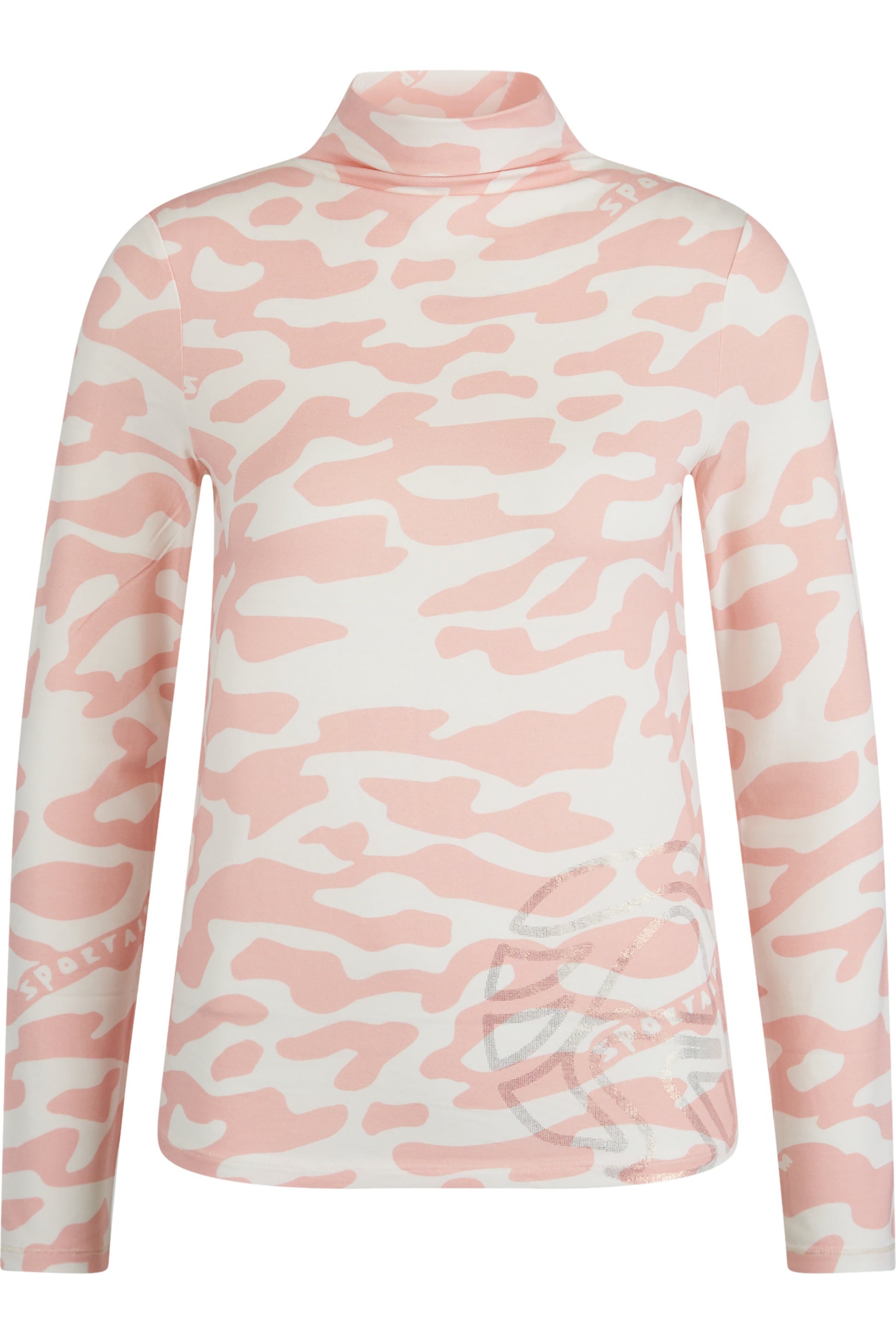 這款短款高領襯衫具有超柔軟的莫代爾品質、修長的袖子和合身的廓形,給人留下深刻的印象。正面的圓點金屬印花完美地展示了下擺上的 Sportalm 標誌。肩部採用冰金色金屬紗線的窄裝飾接縫賦予襯衫高貴的氣質。