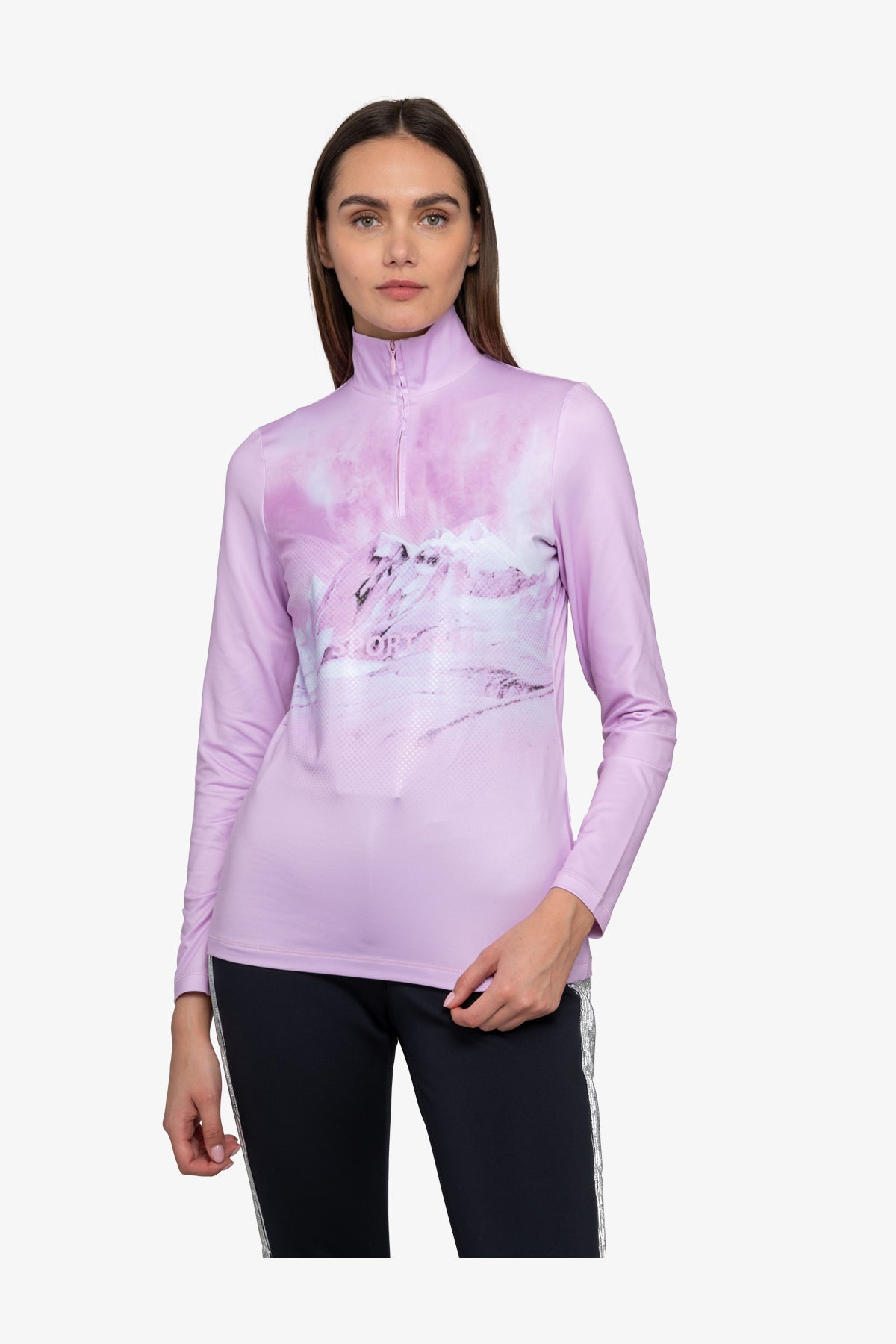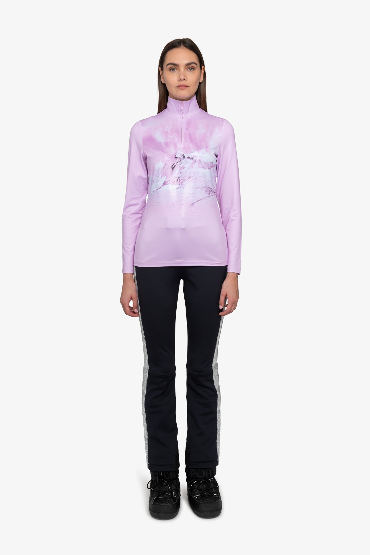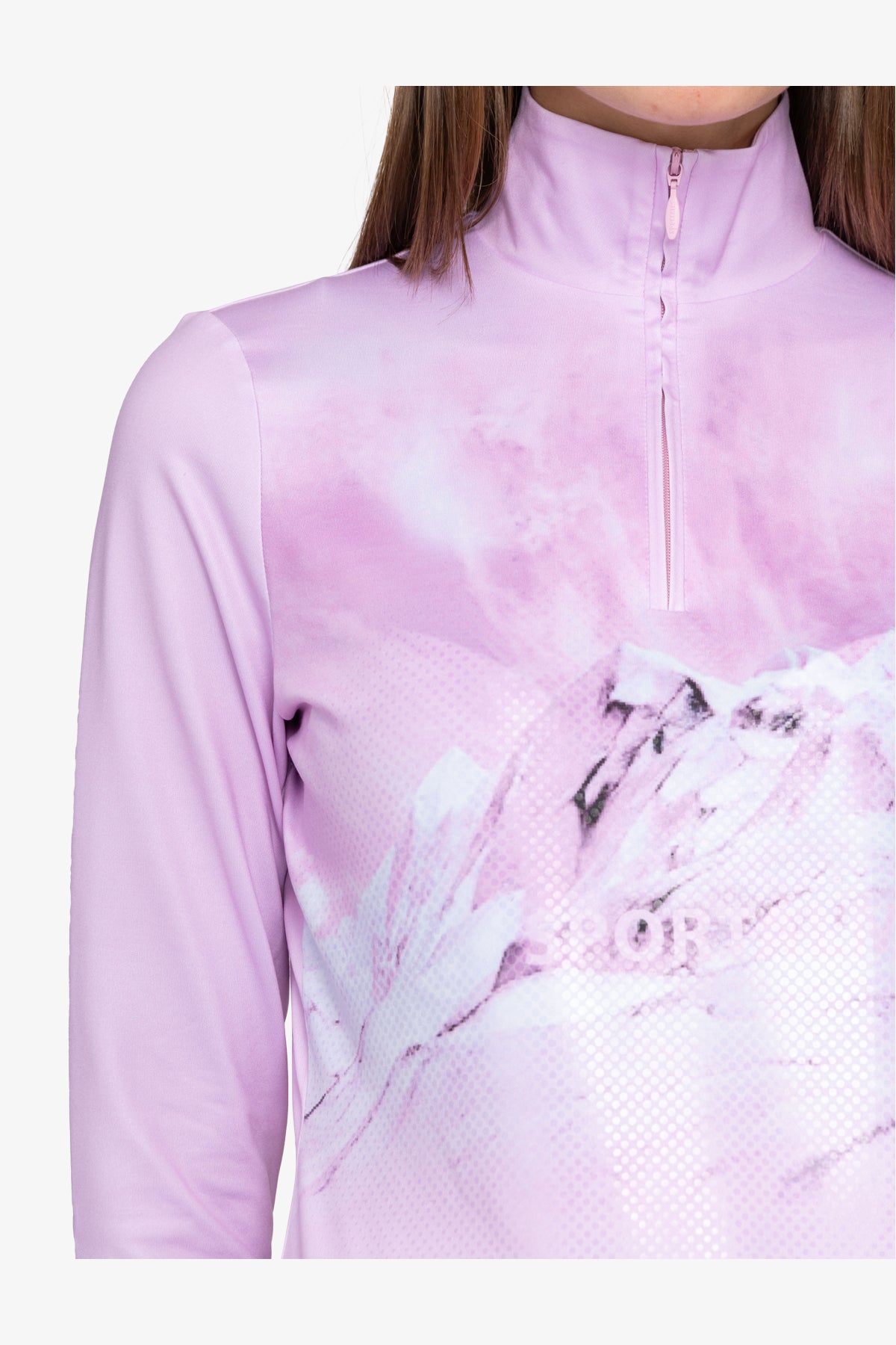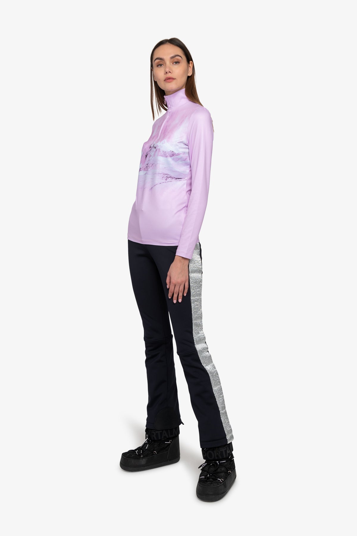 這款立領汗衫採用令人驚嘆的冬季風景印花與閃亮的金屬圓點印花相結合,打造平滑的漸變效果。