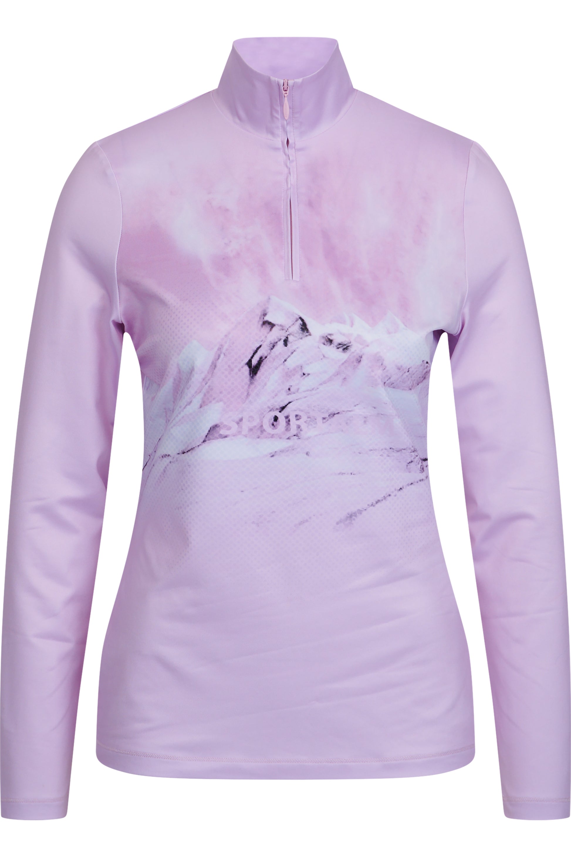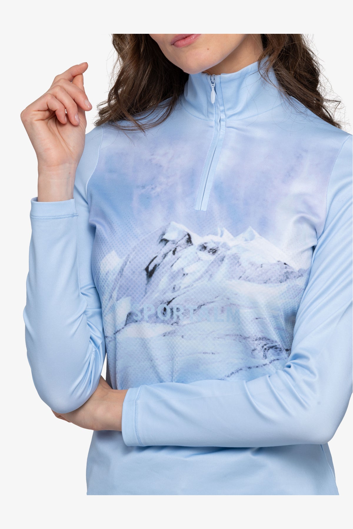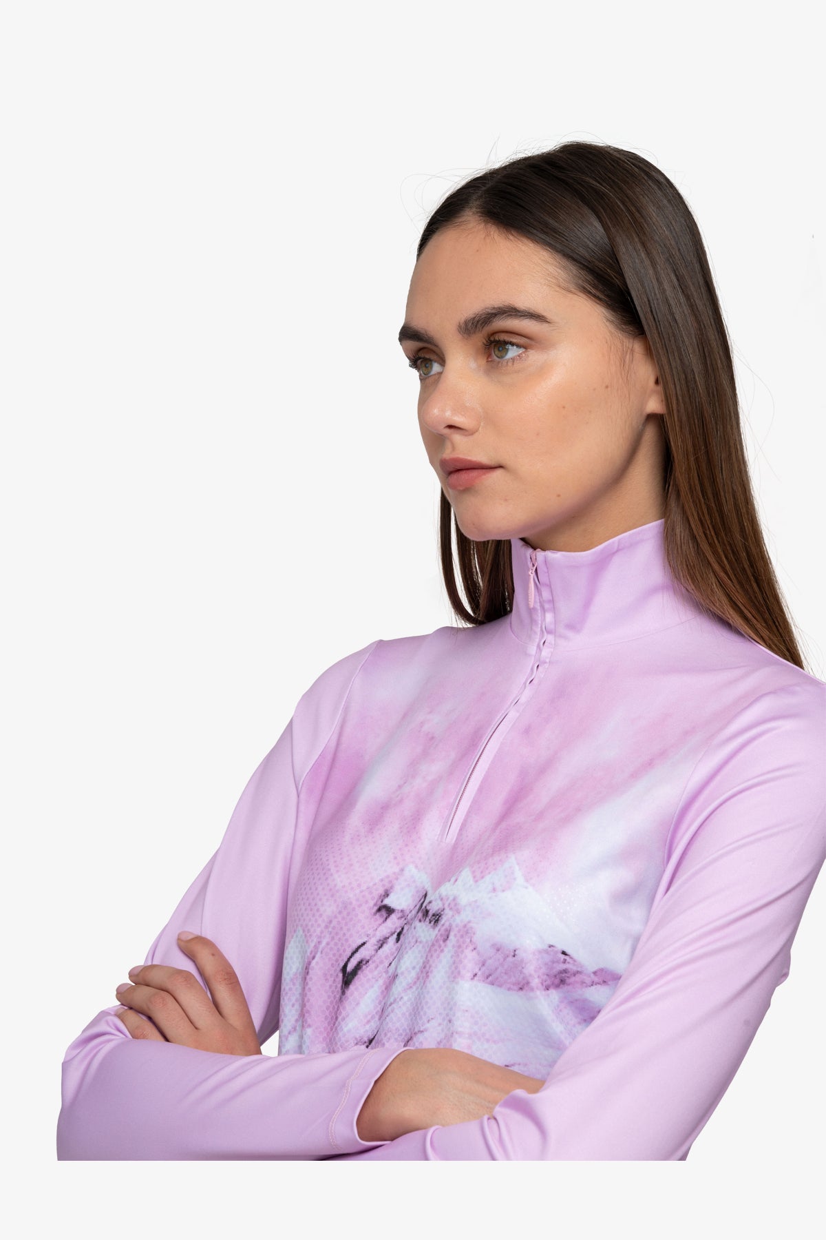 這款立領汗衫採用令人驚嘆的冬季風景印花與閃亮的金屬圓點印花相結合,打造平滑的漸變效果。