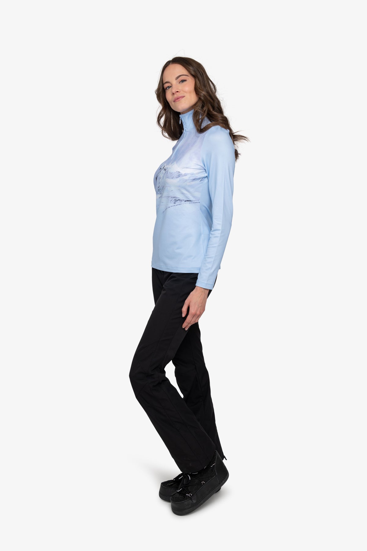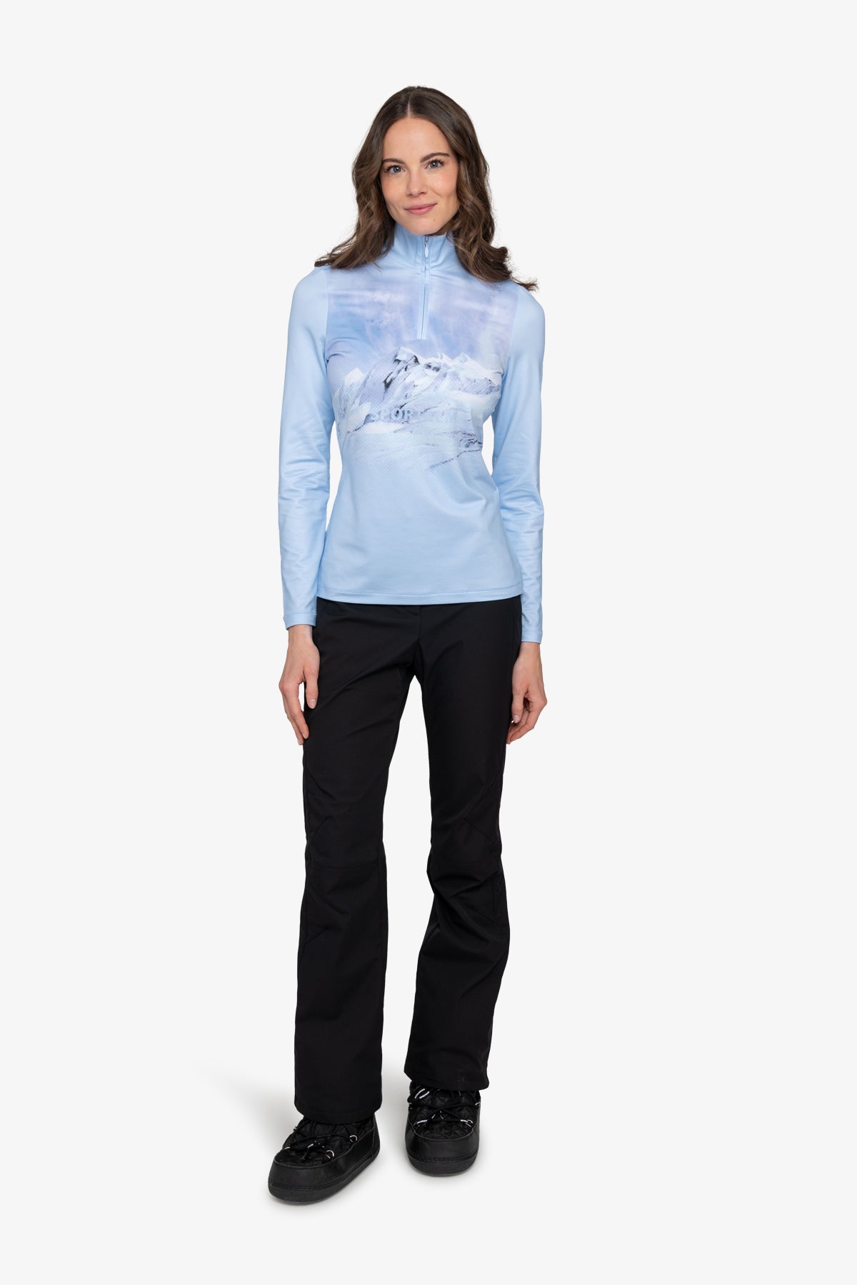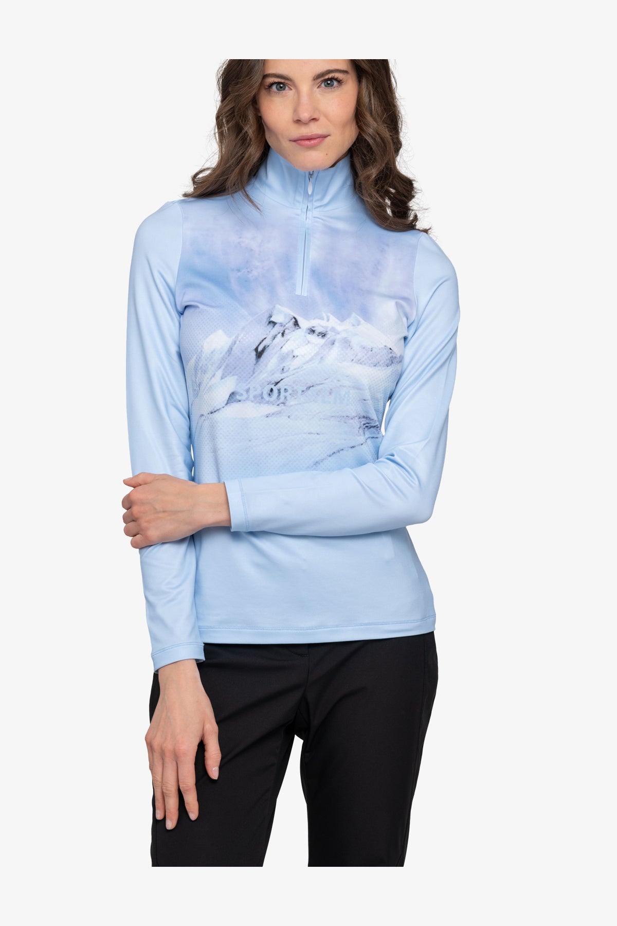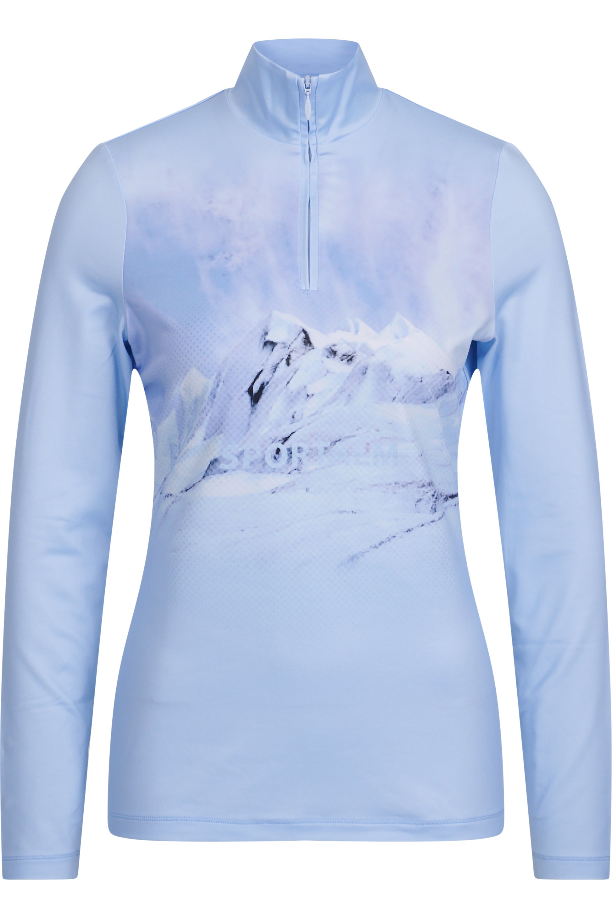 這款立領汗衫採用令人驚嘆的冬季風景印花與閃亮的金屬圓點印花相結合,打造平滑的漸變效果。
