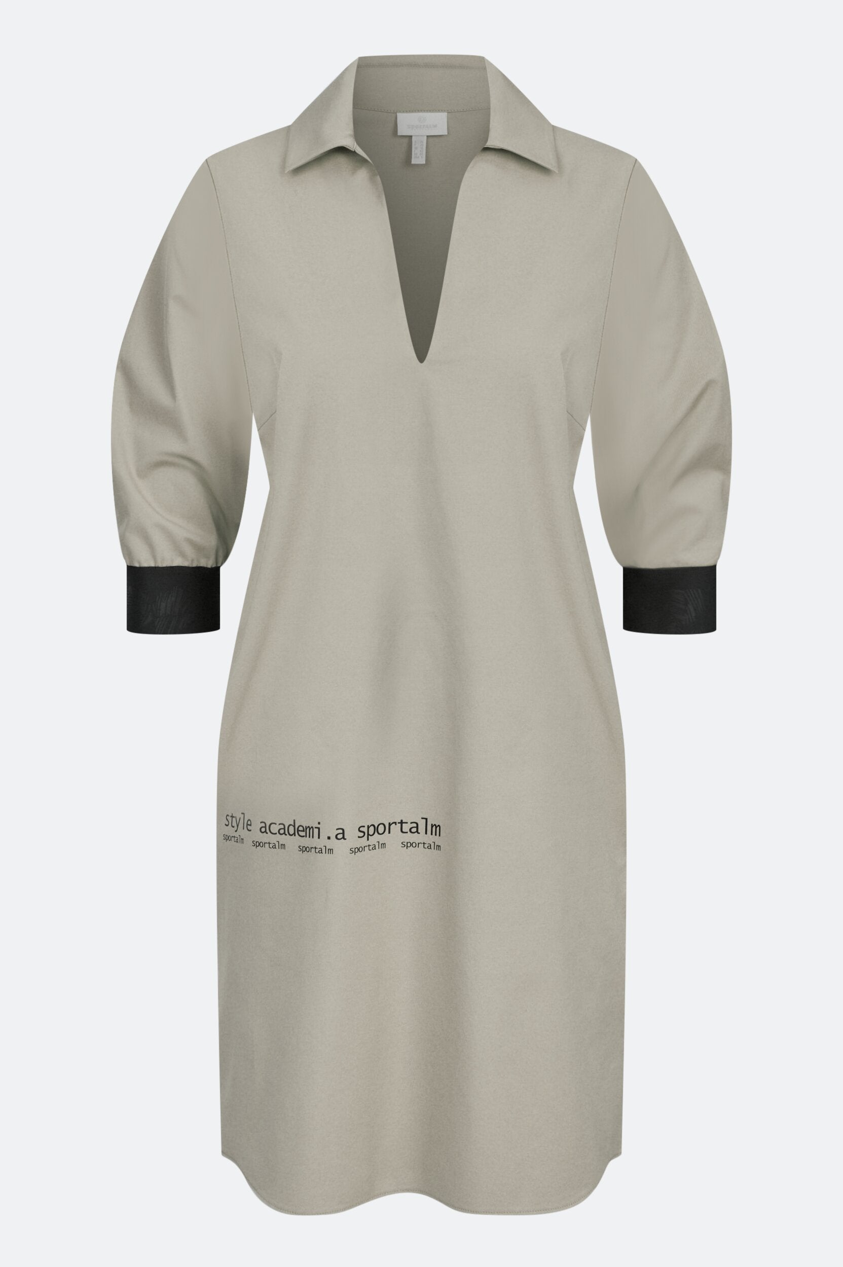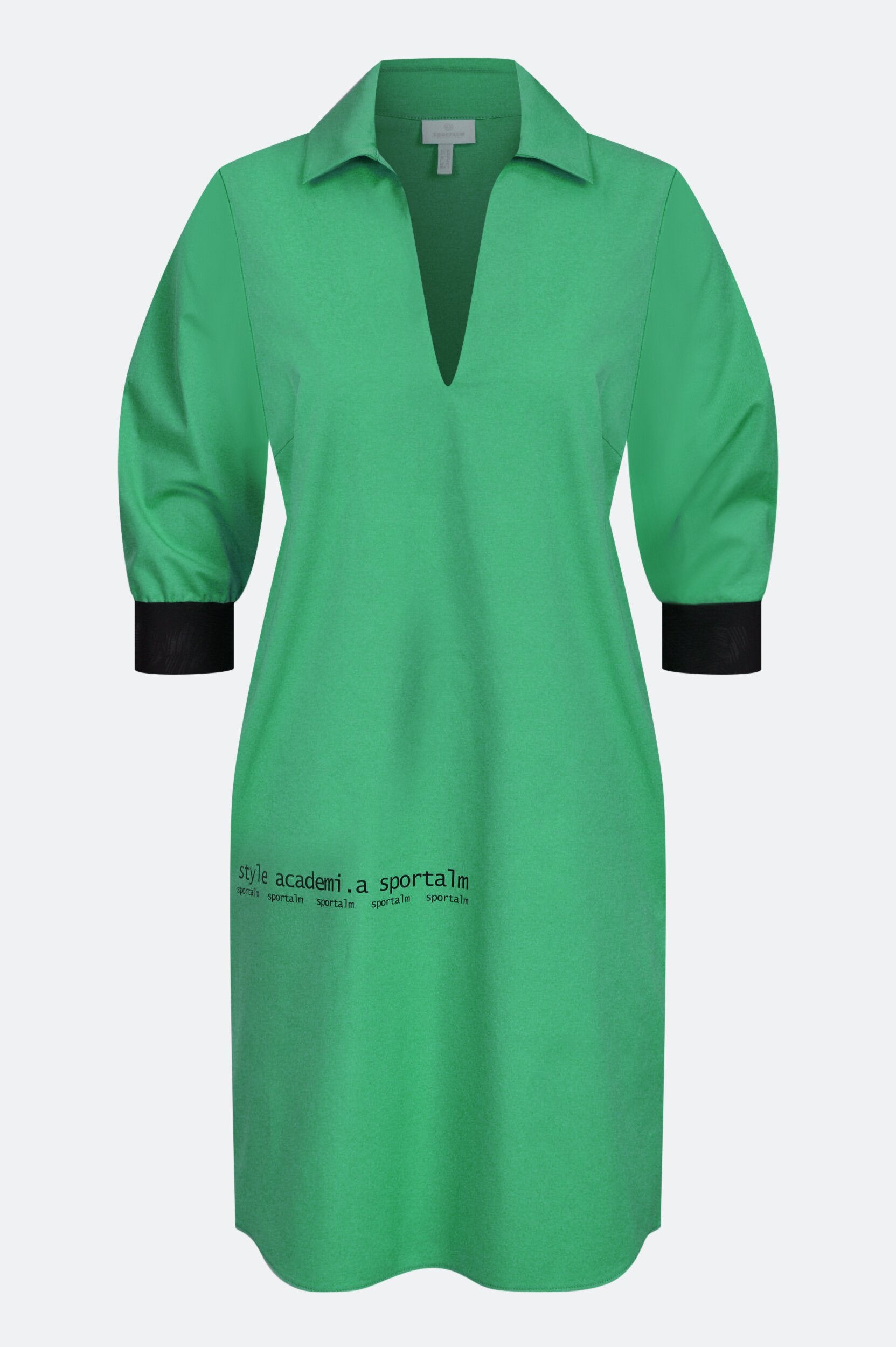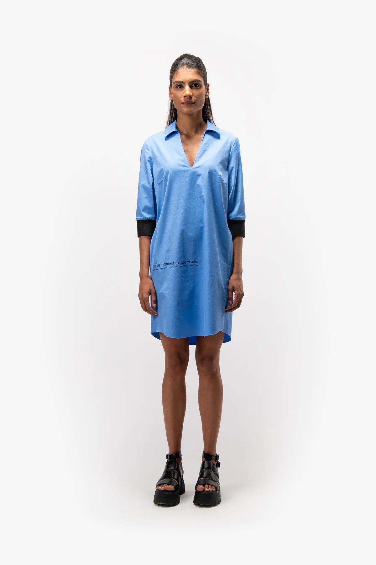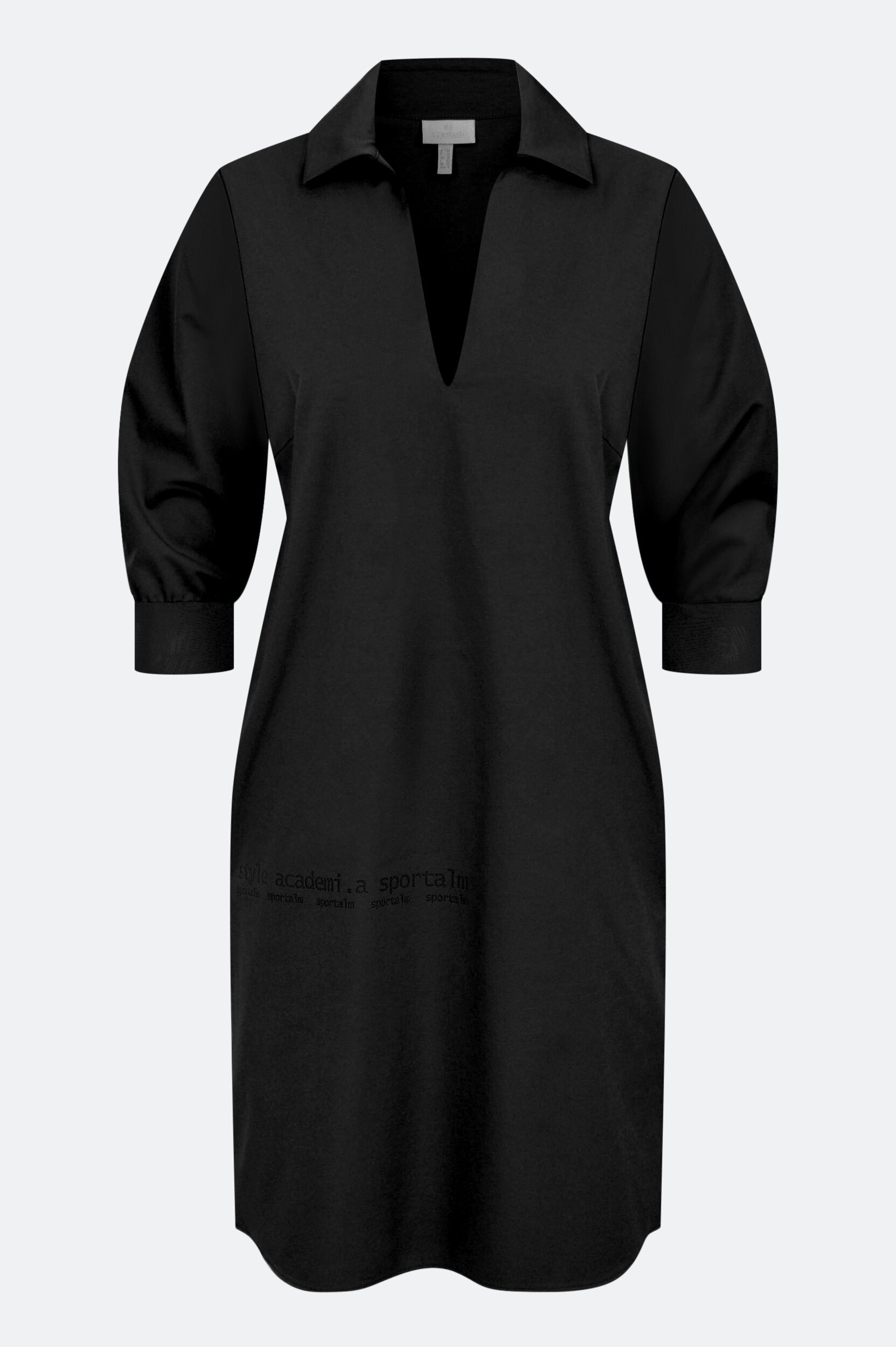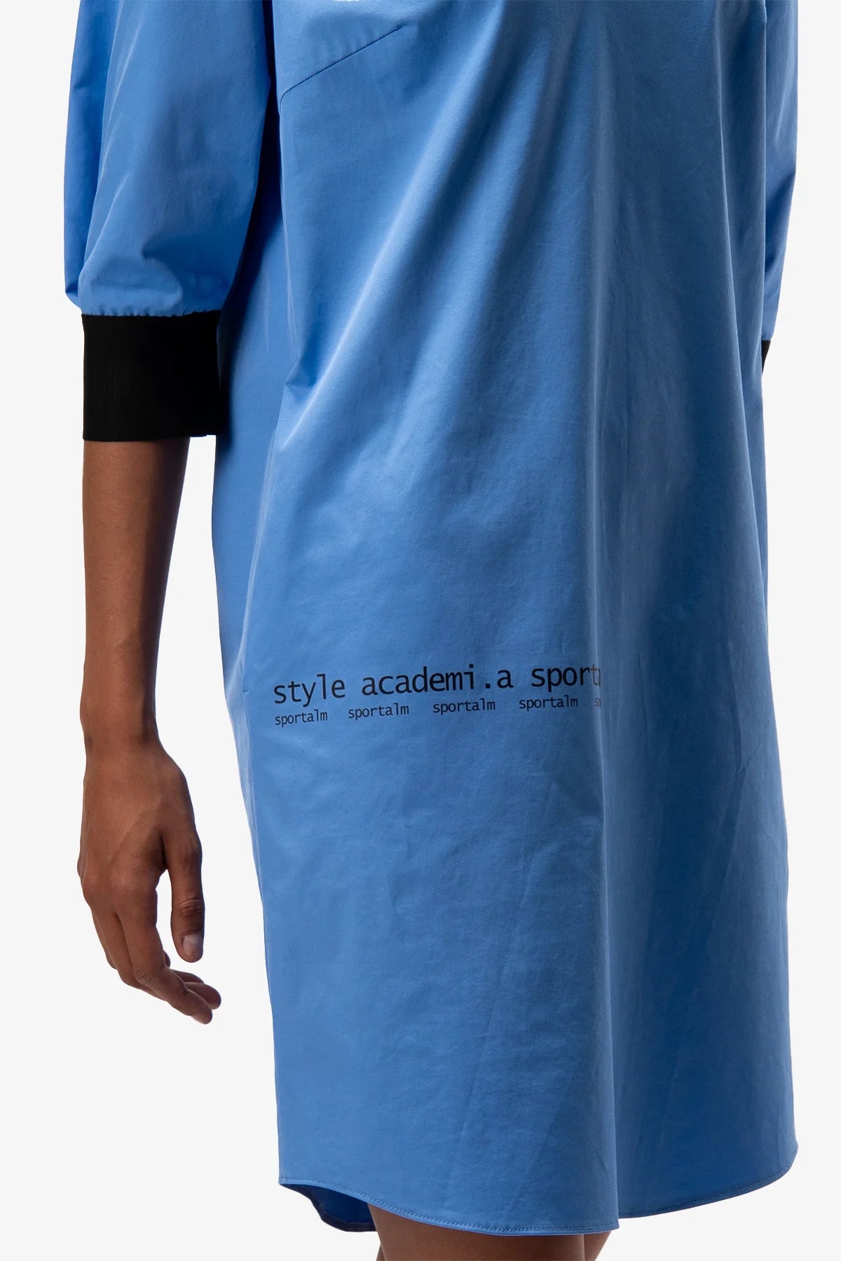 這件棉質滑脫連衣裙有深V領、寬鬆的袖子和對比的標誌印花。