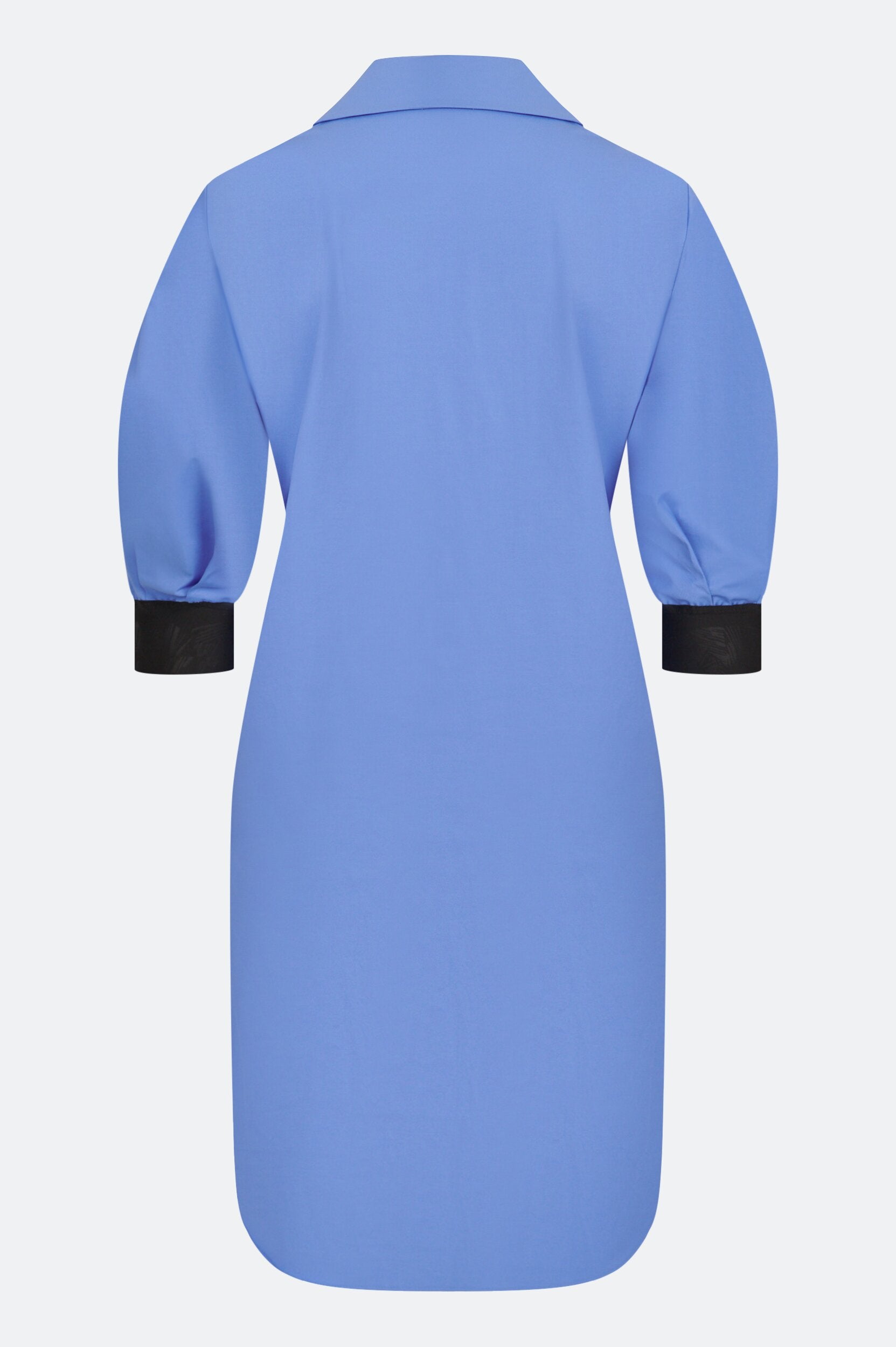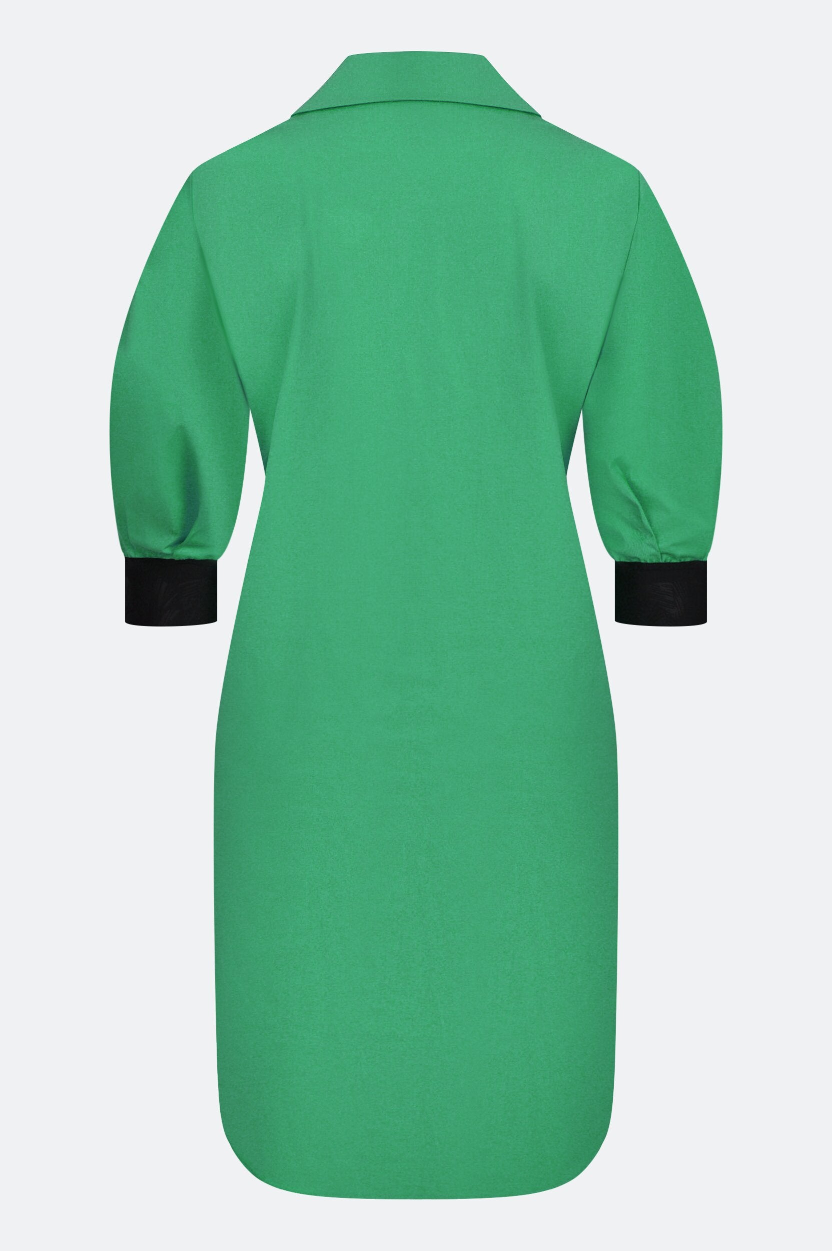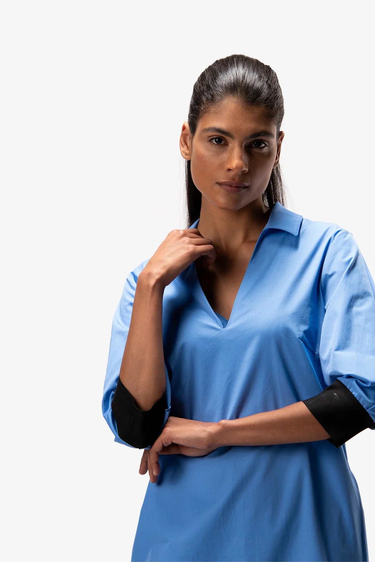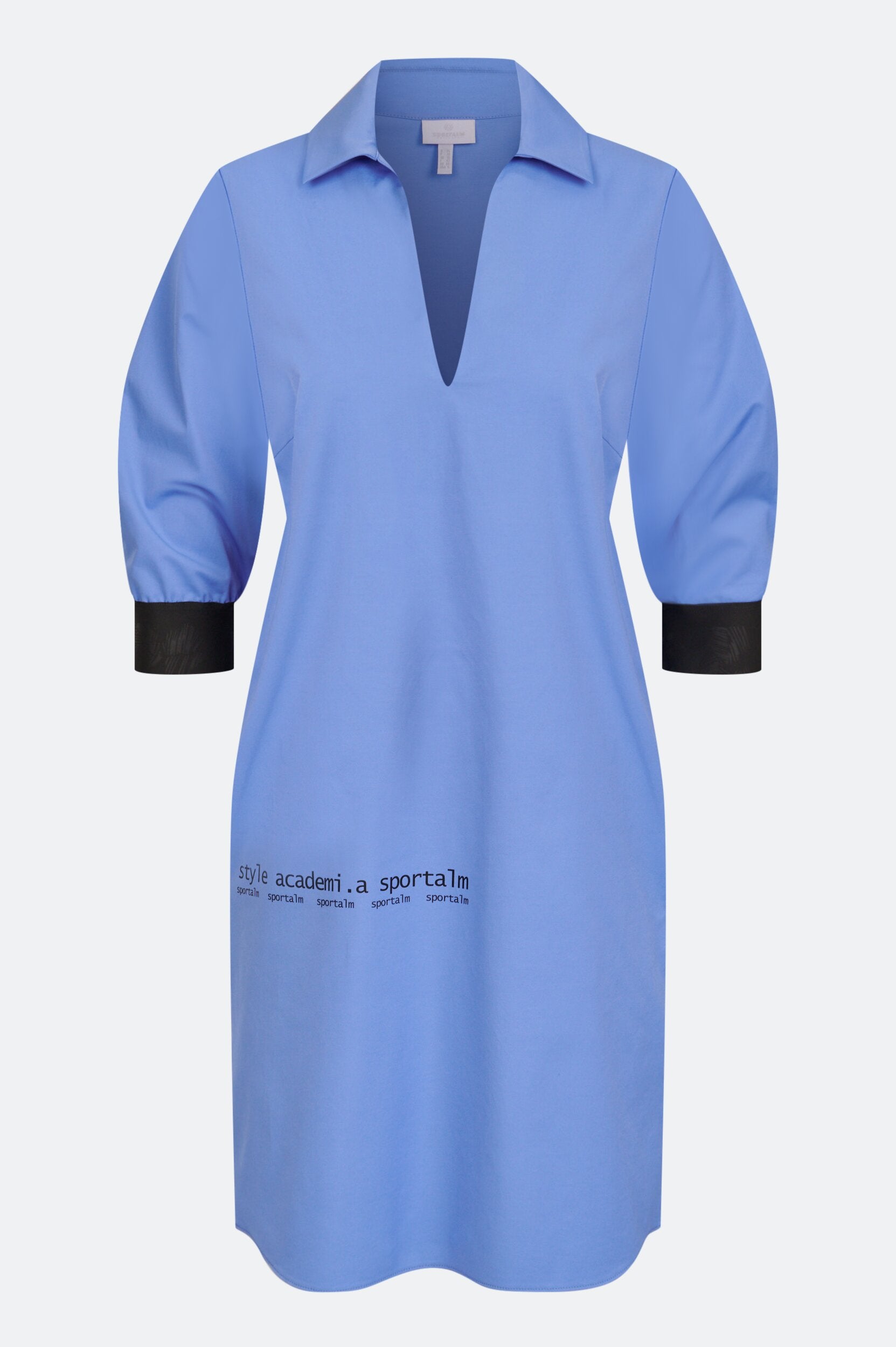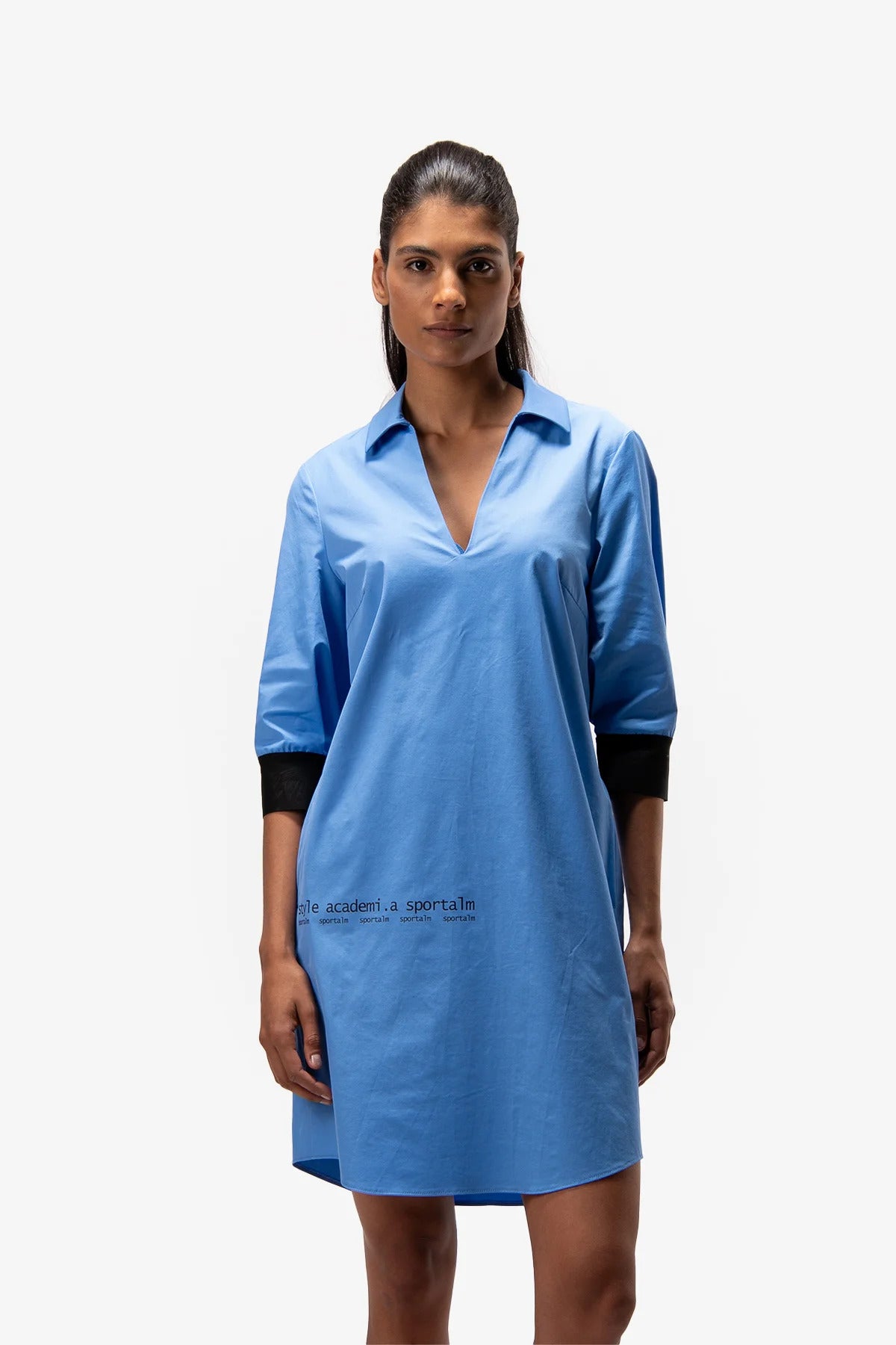 這件棉質滑脫連衣裙有深V領、寬鬆的袖子和對比的標誌印花。