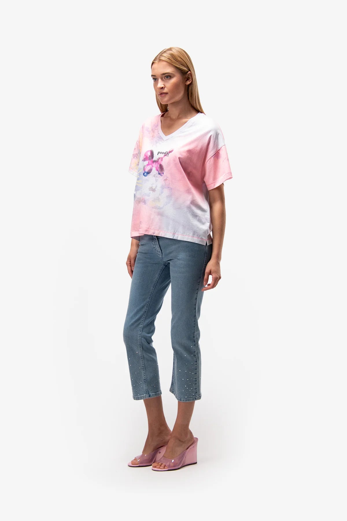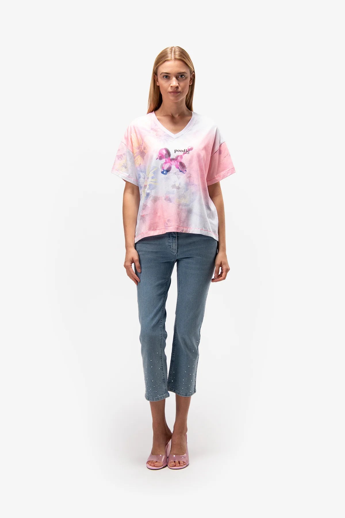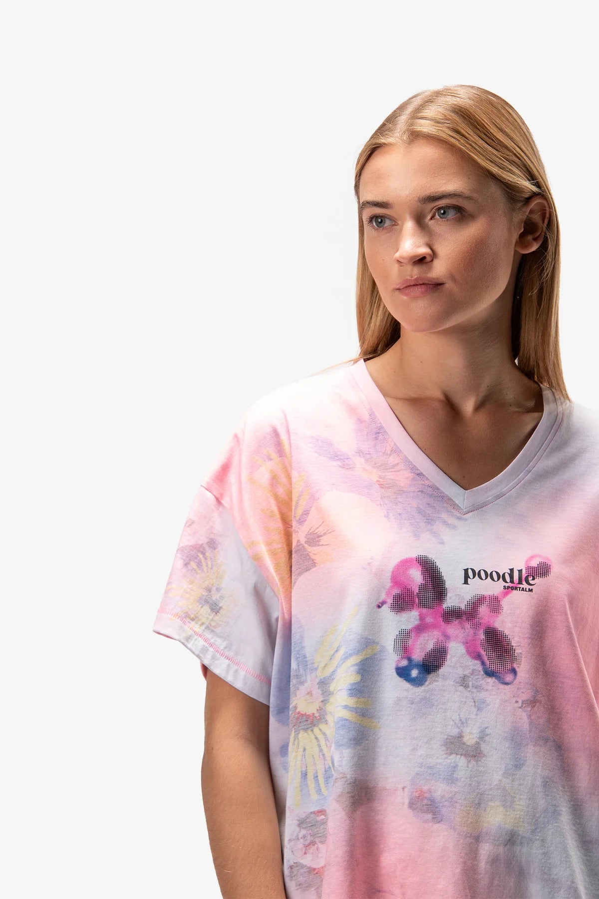 這款短袖棉混紡襯衫採用V領和下垂的肩膀設計,打造出夏日時尚的吸睛造型。