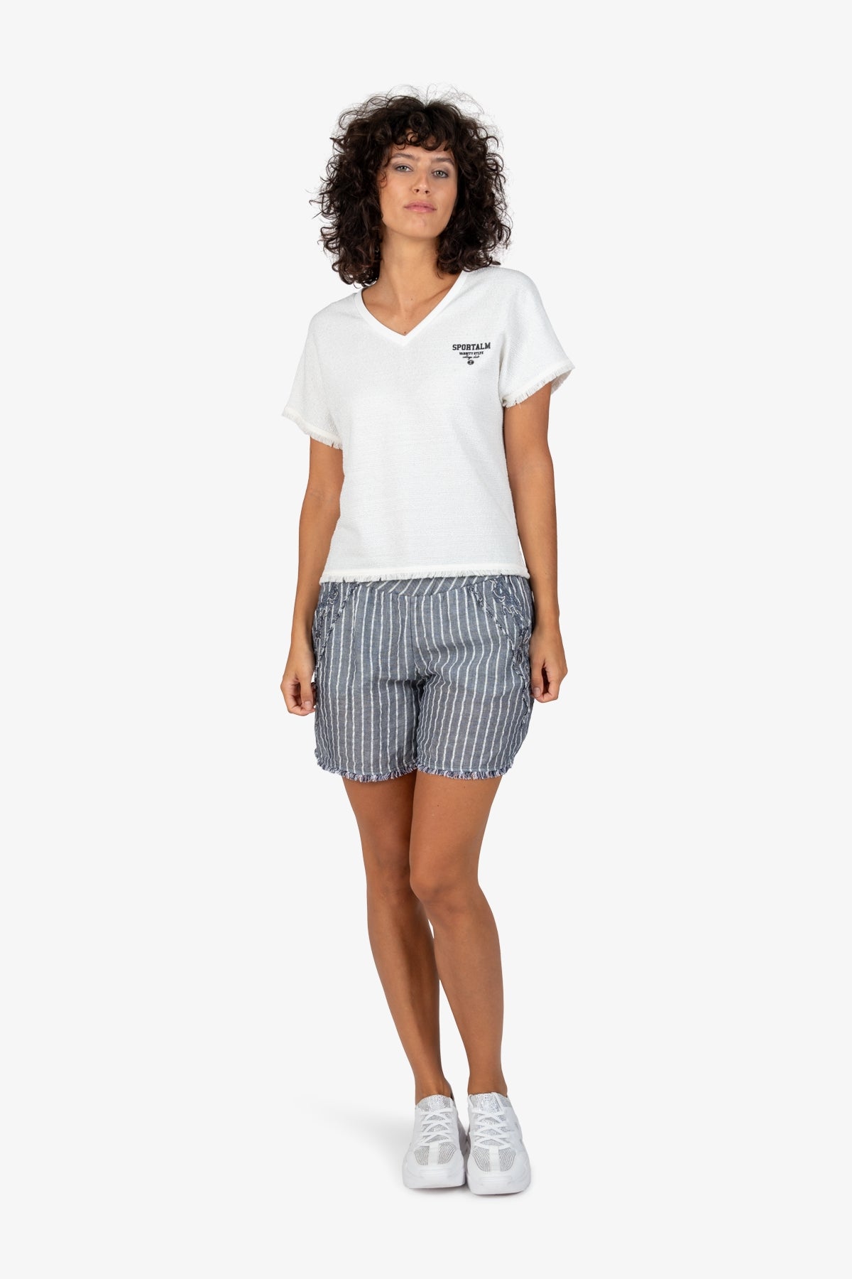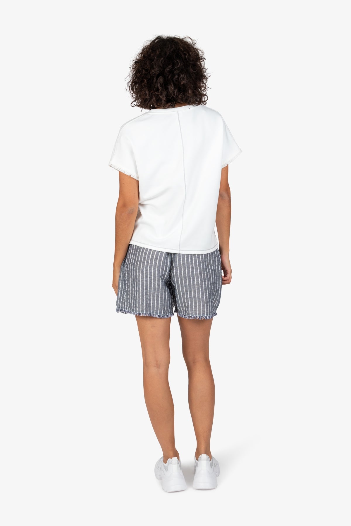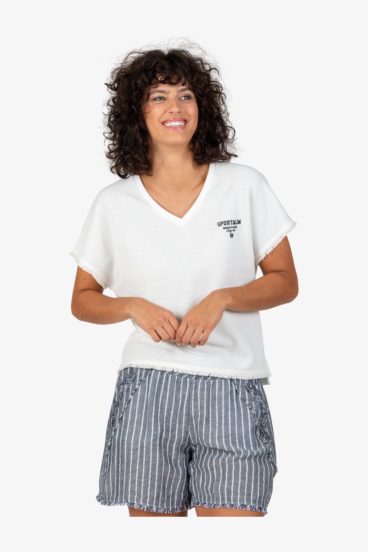 這款襯衫採用短袖設計,下擺飾有休閒流蘇邊,是一款休閒而時尚的服裝。它為您的外觀增添一絲俏皮感,非常適合休閒場合。