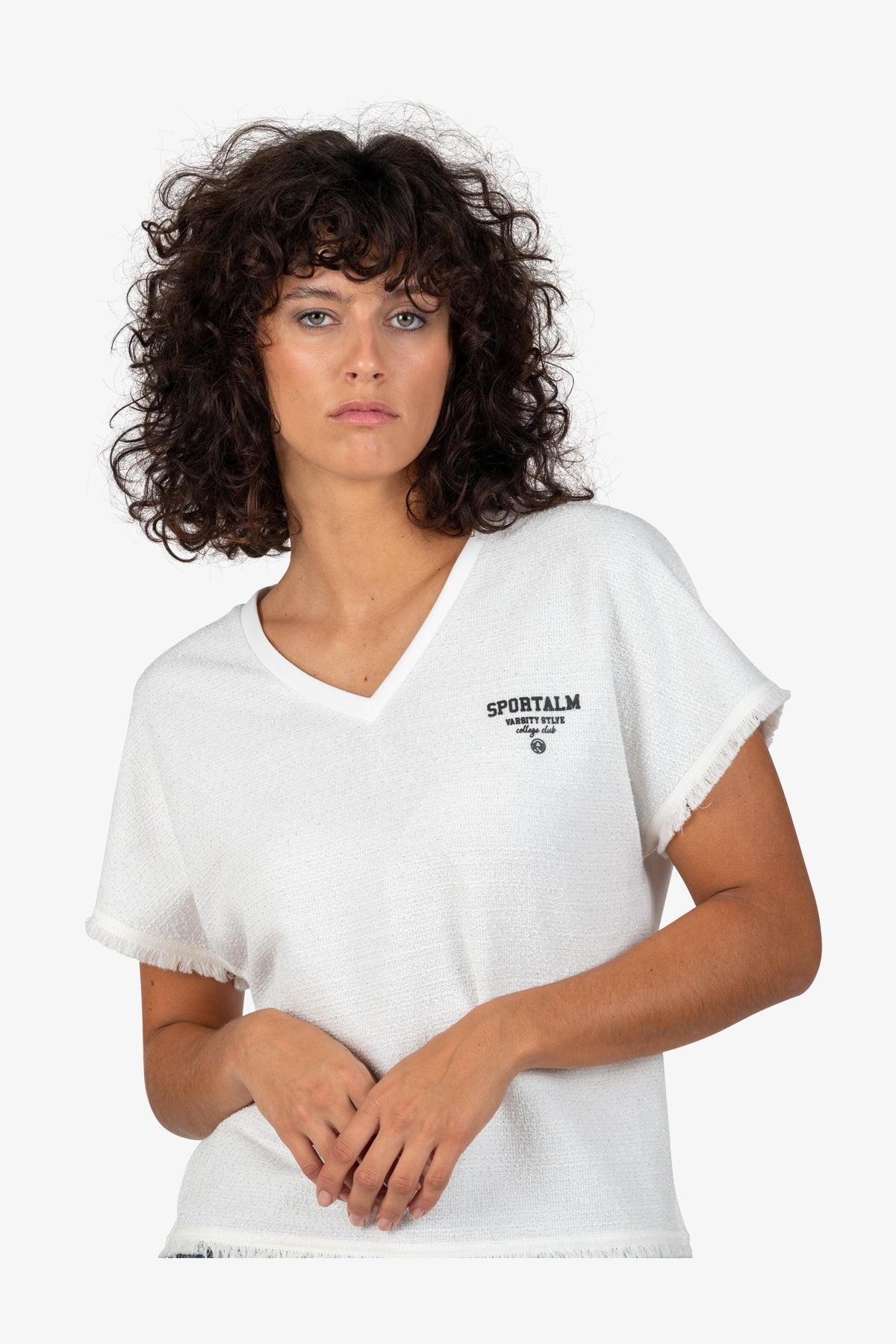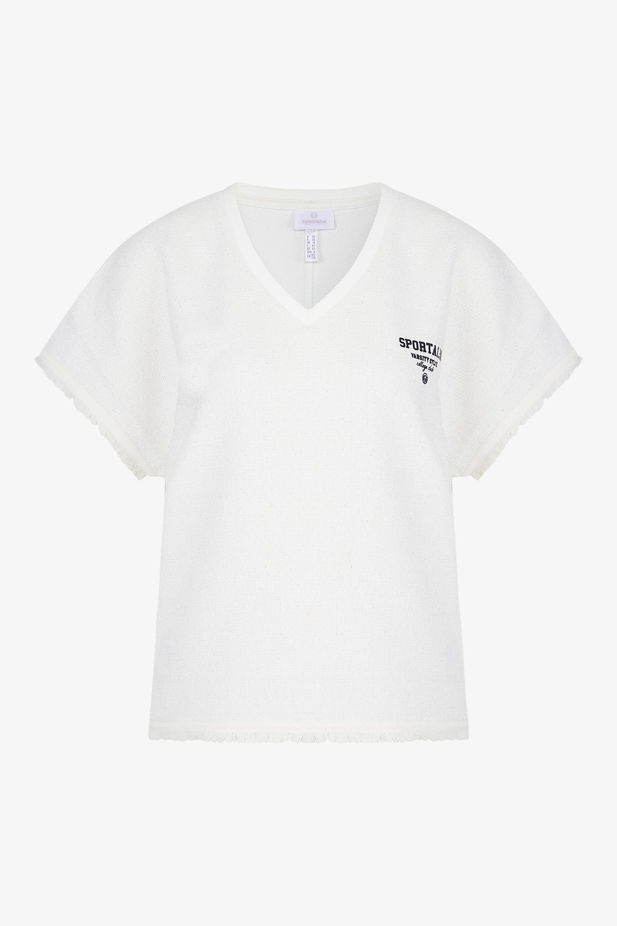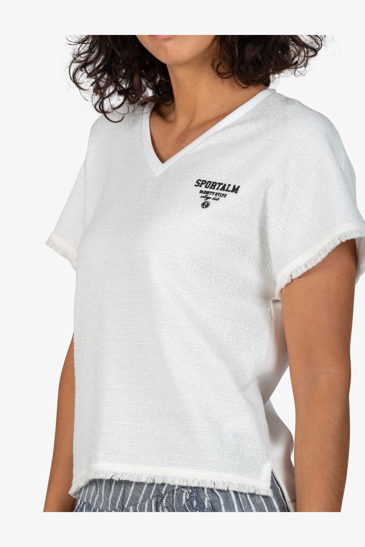 這款襯衫採用短袖設計,下擺飾有休閒流蘇邊,是一款休閒而時尚的服裝。它為您的外觀增添一絲俏皮感,非常適合休閒場合。