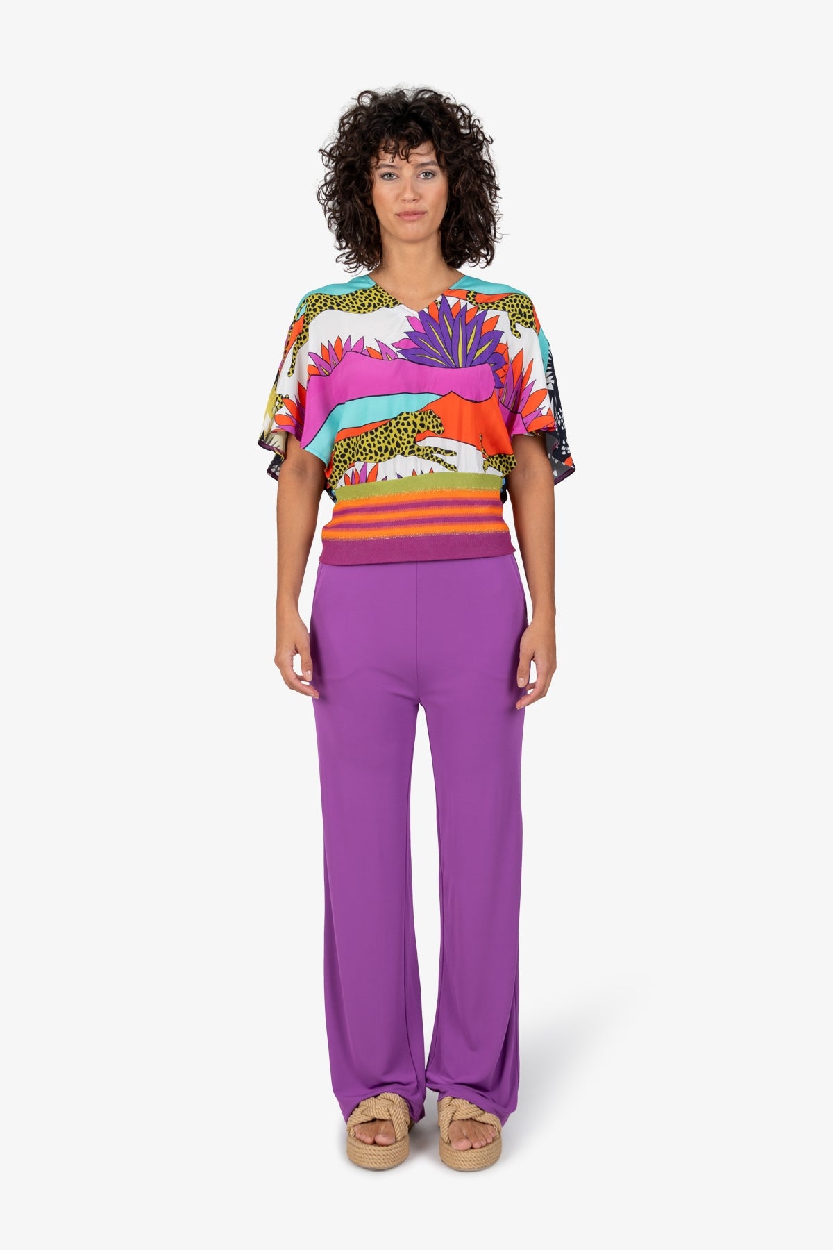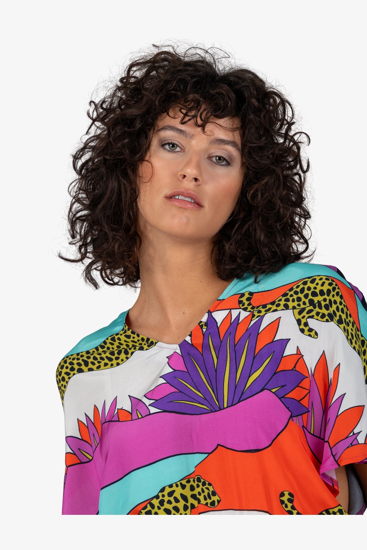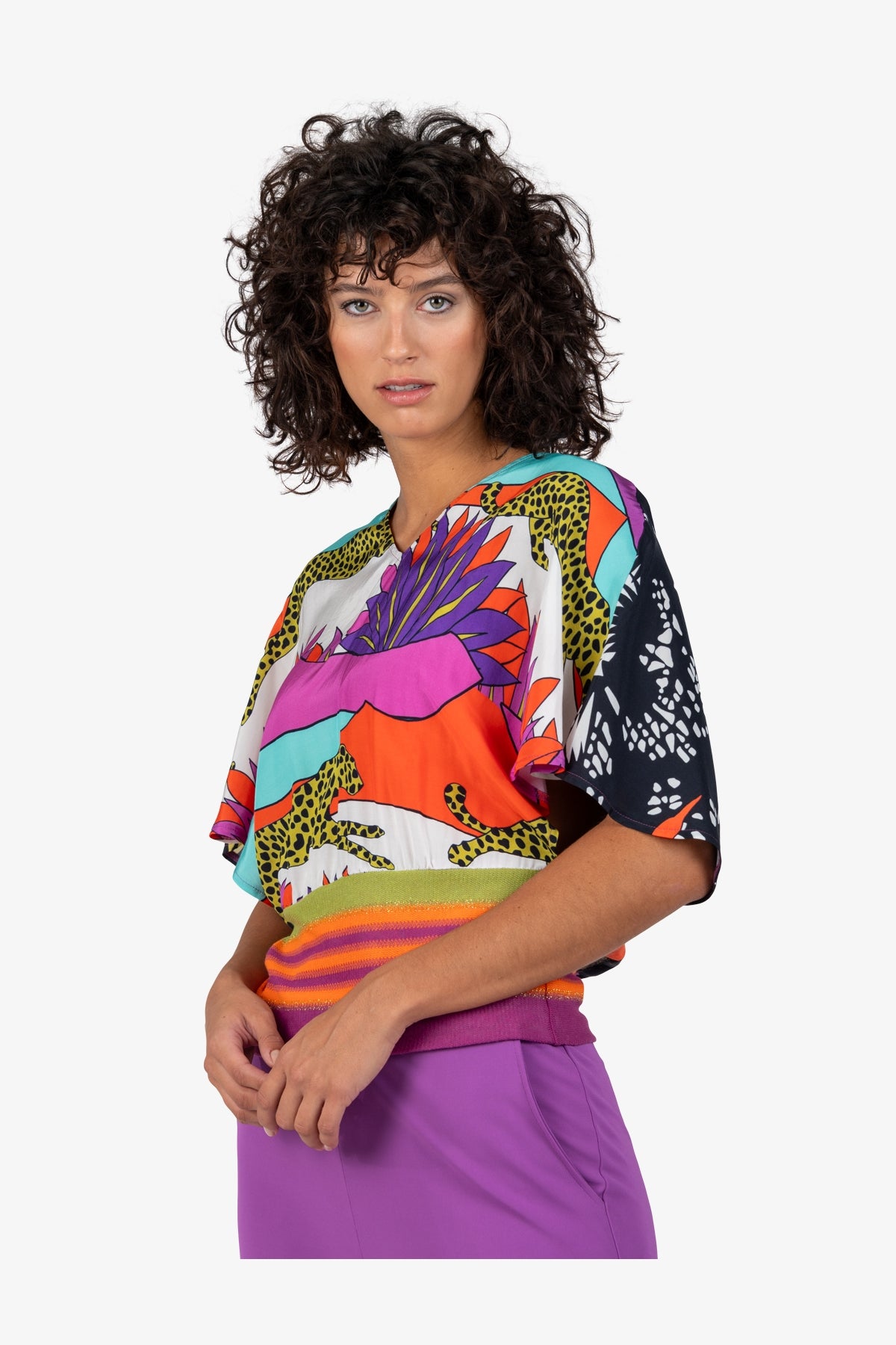 這款時尚上衣的特點是女性化的輪廓和色彩鮮豔的印花。它為您的衣櫃增添活力,是時尚外觀的理想選擇。