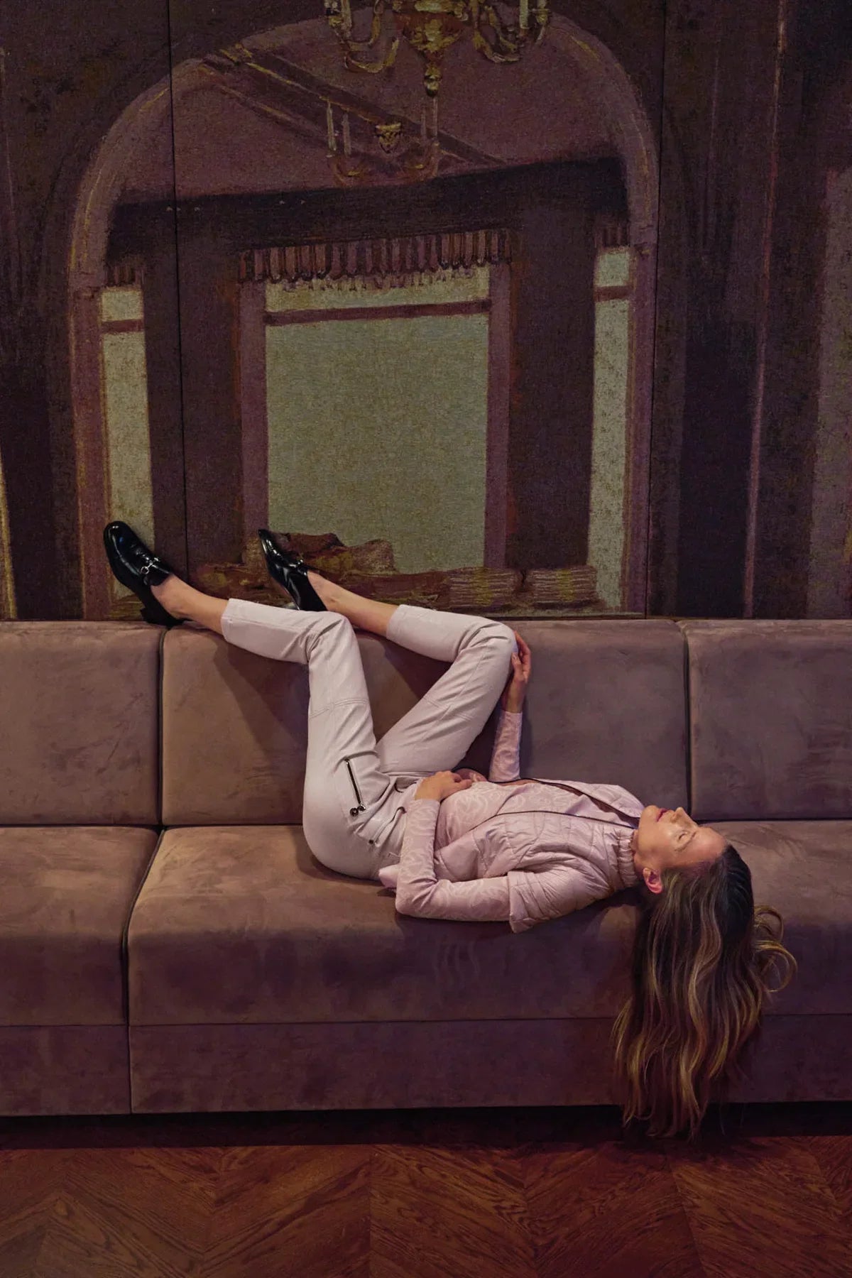 背部中央有一個箱摺褶,突出了A字型的剪裁。