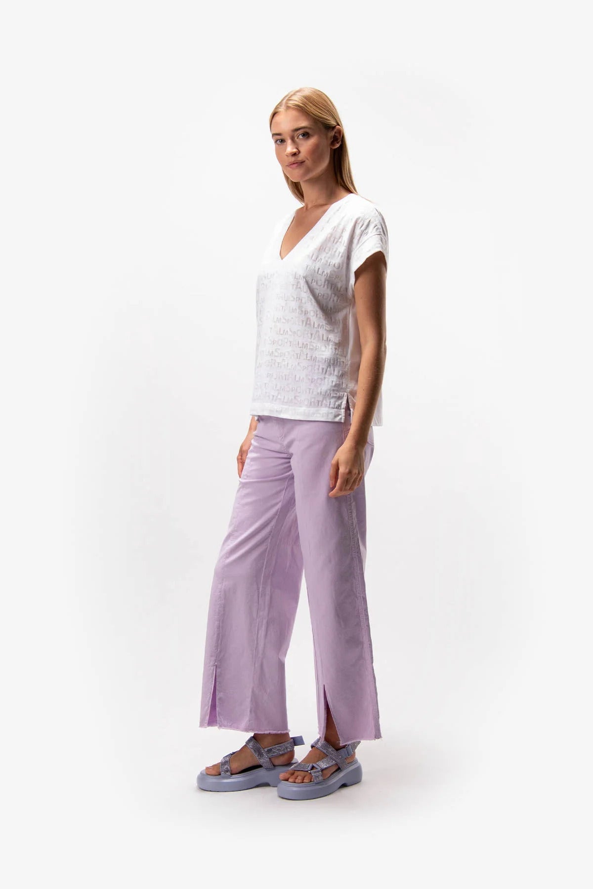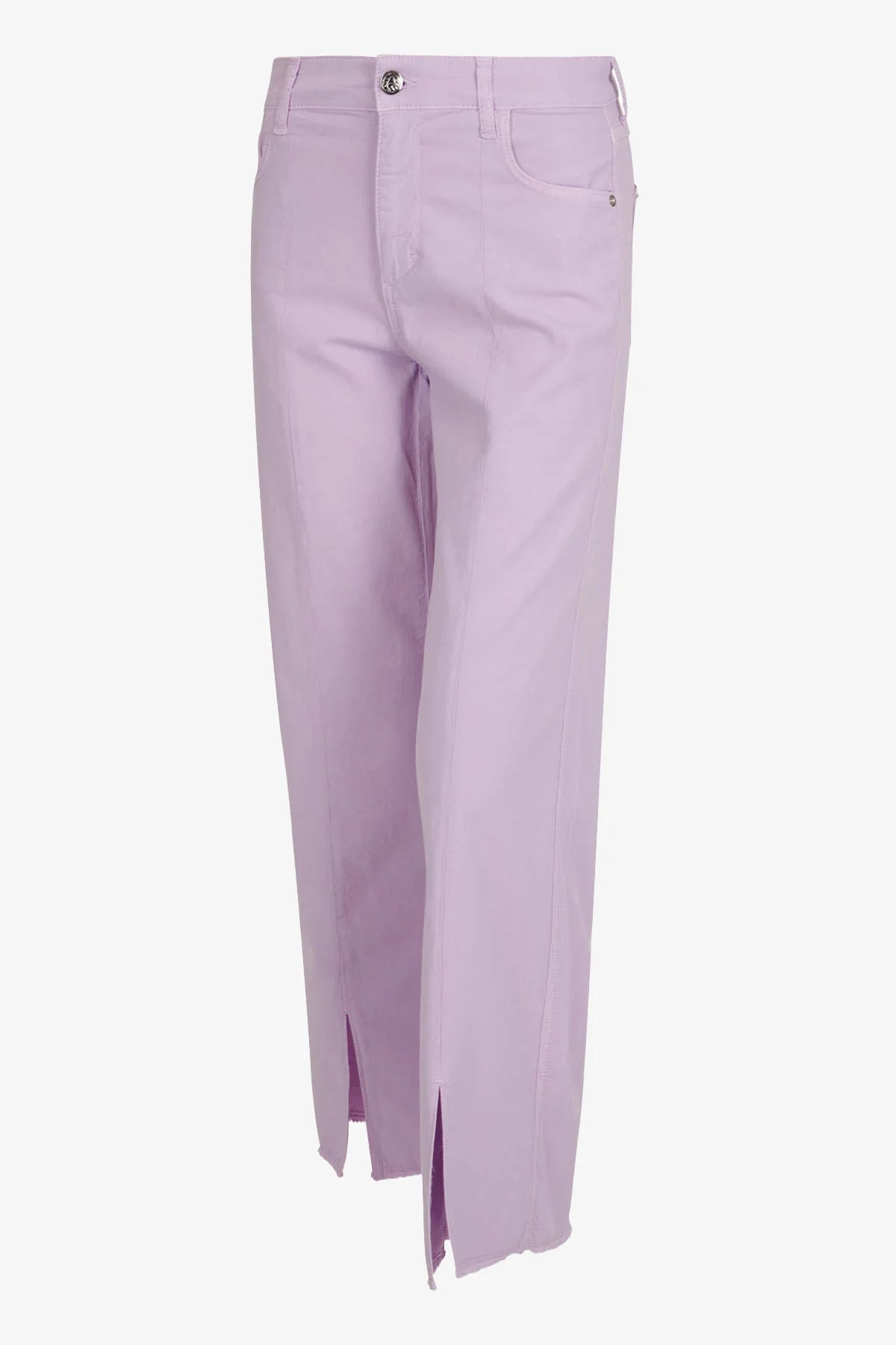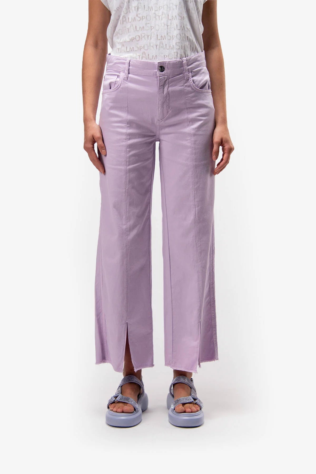 透過褲管中間的開衩使下擺變得更寬,並透過下擺的流蘇看起來更美觀。