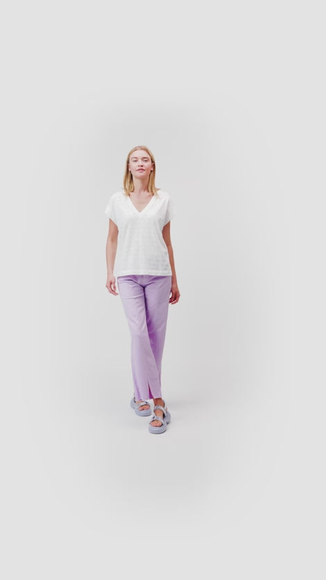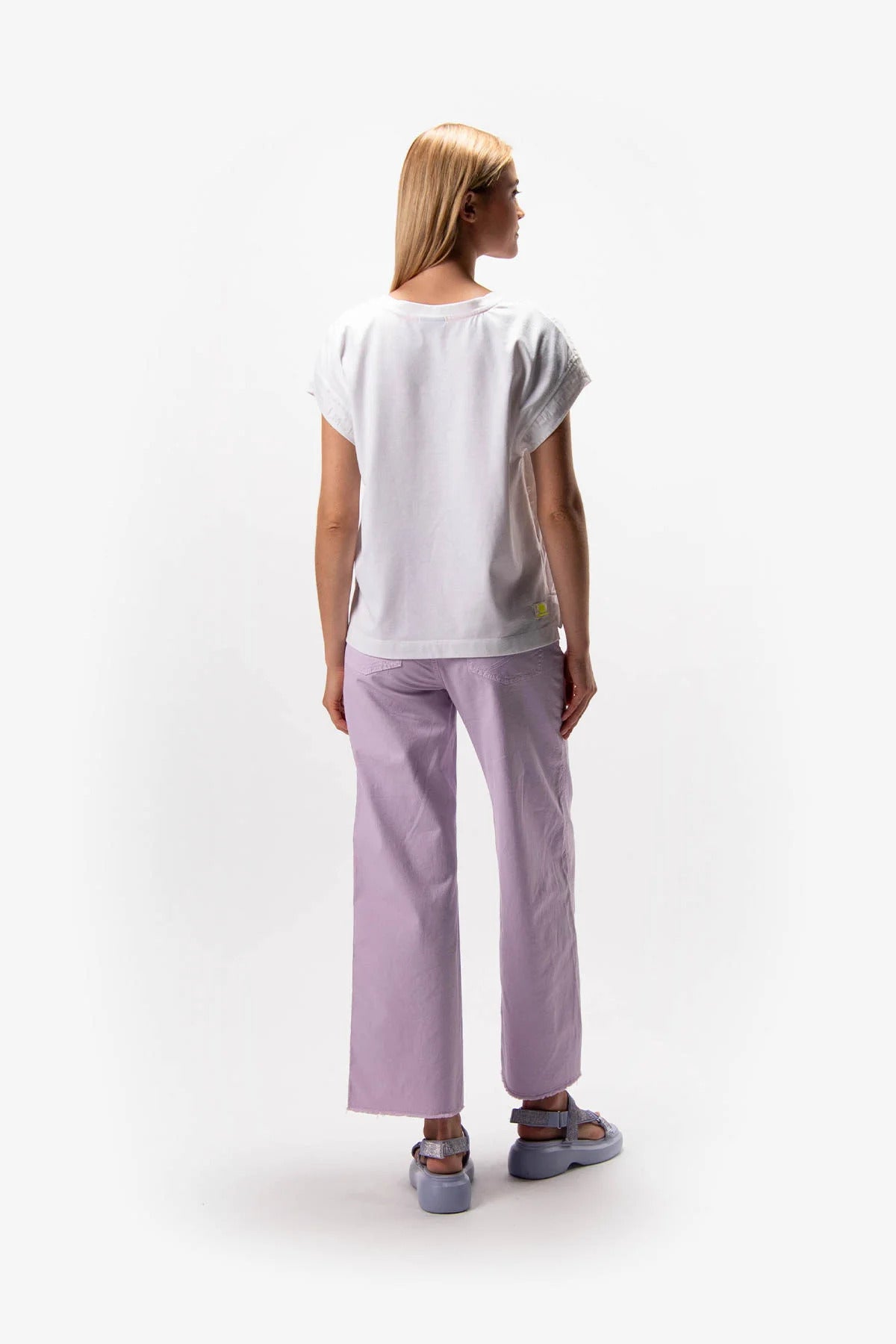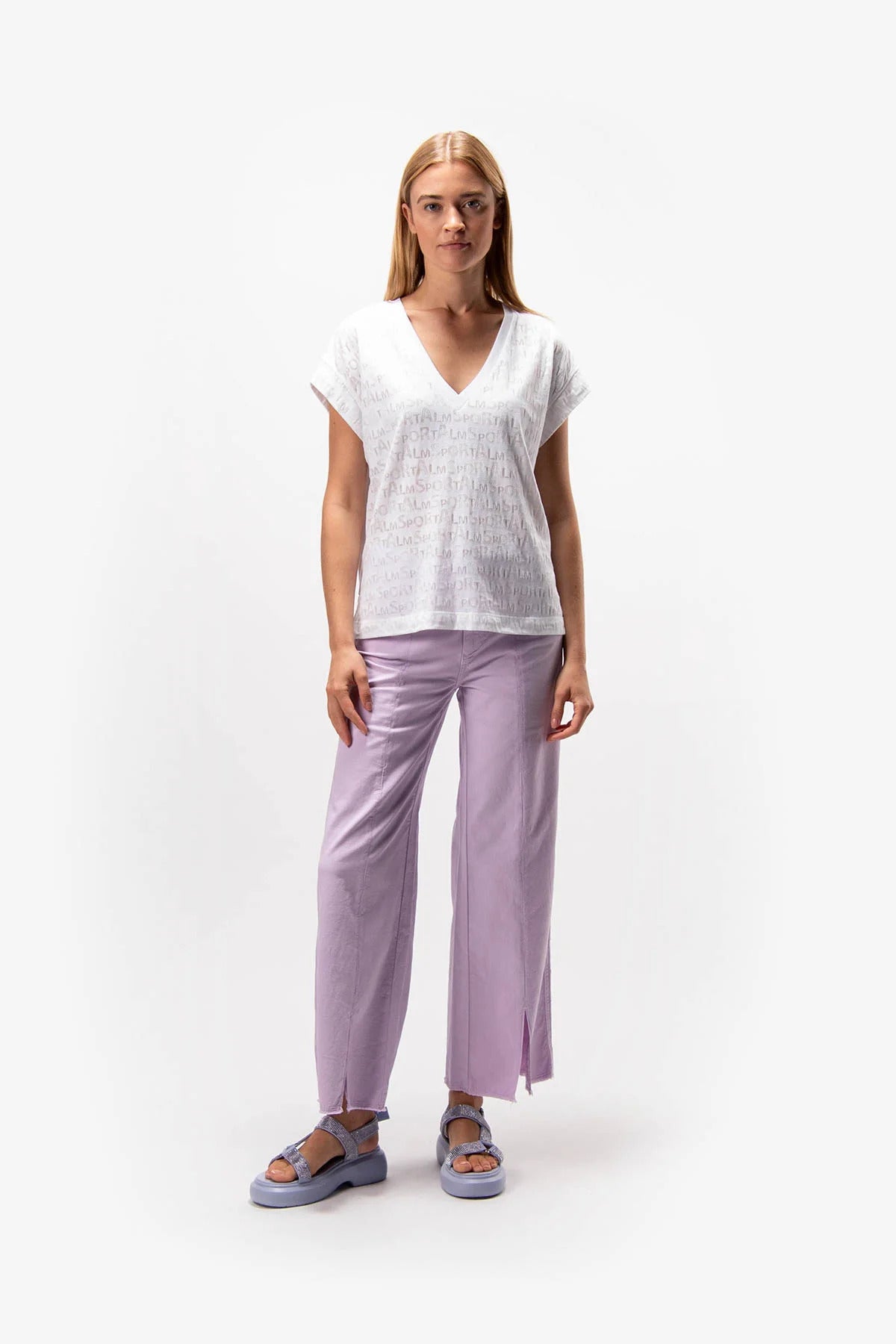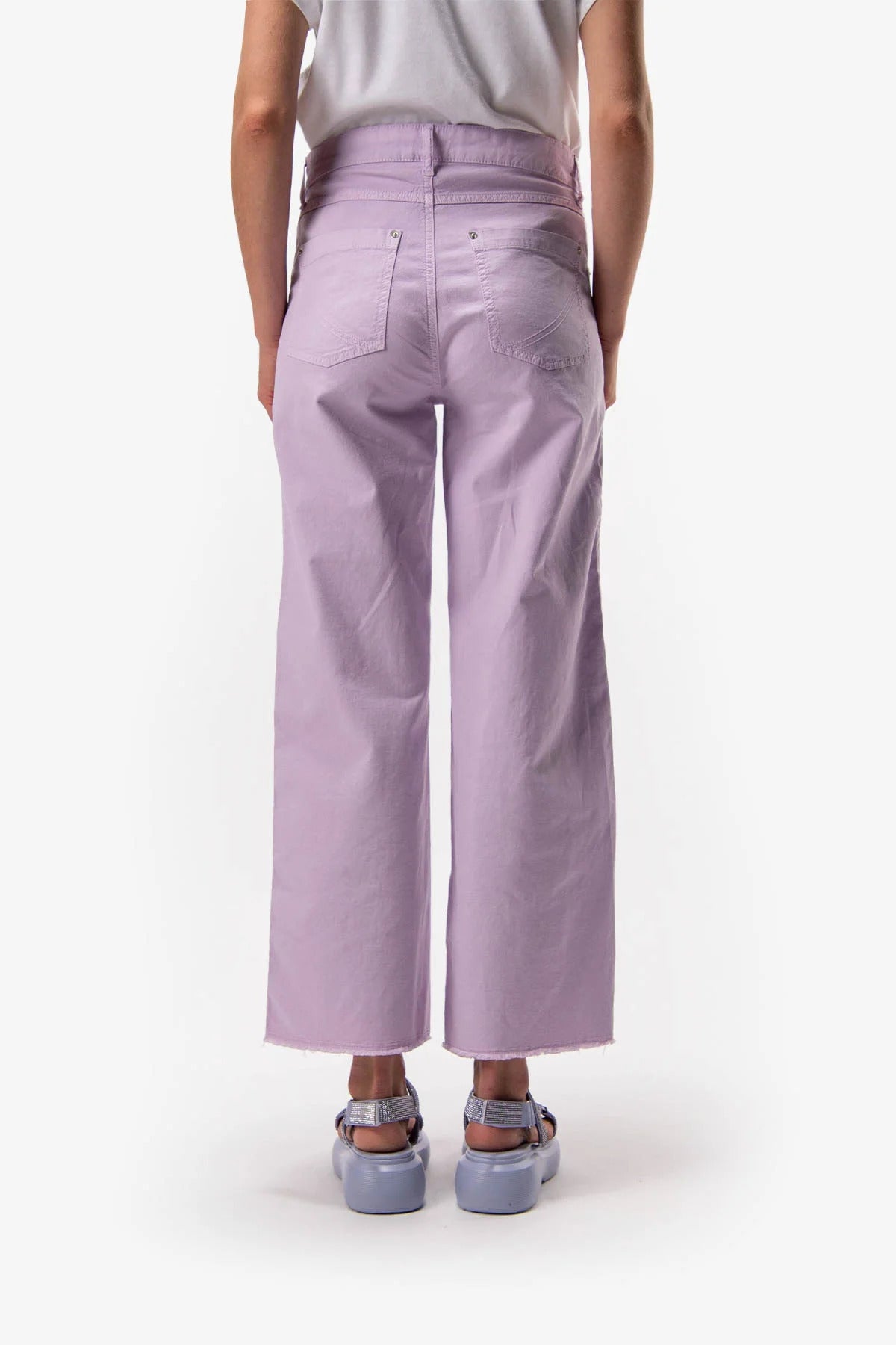透過褲管中間的開衩使下擺變得更寬,並透過下擺的流蘇看起來更美觀。
