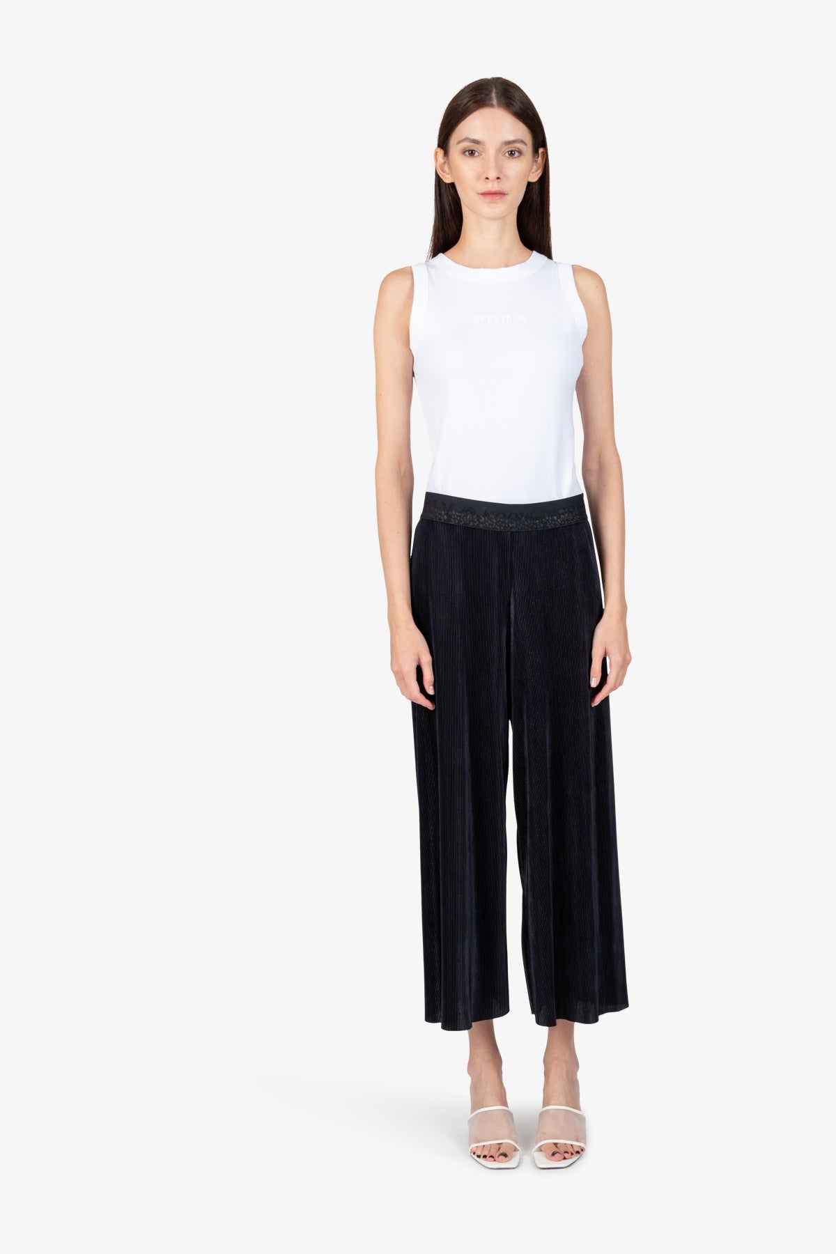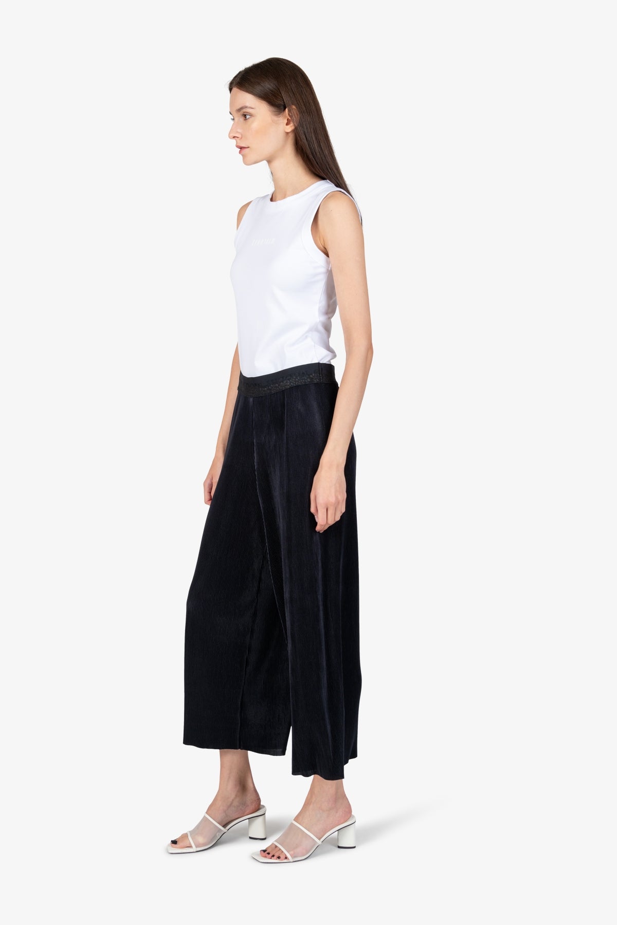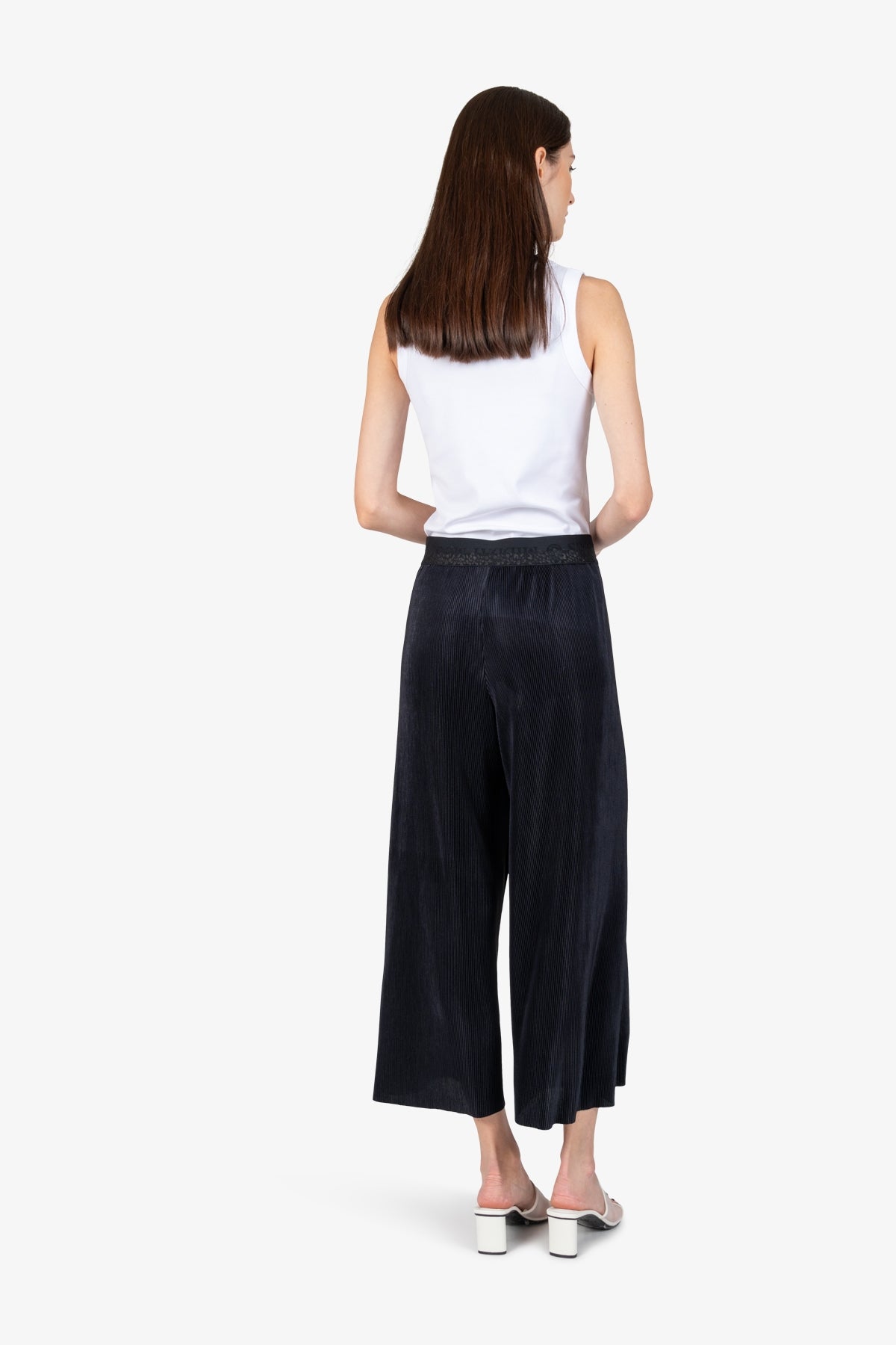 採用時尚褶皺面料製成的套穿褲,時尚的設計和高穿著舒適度令人印象深刻。一條適合各種場合的褲子。