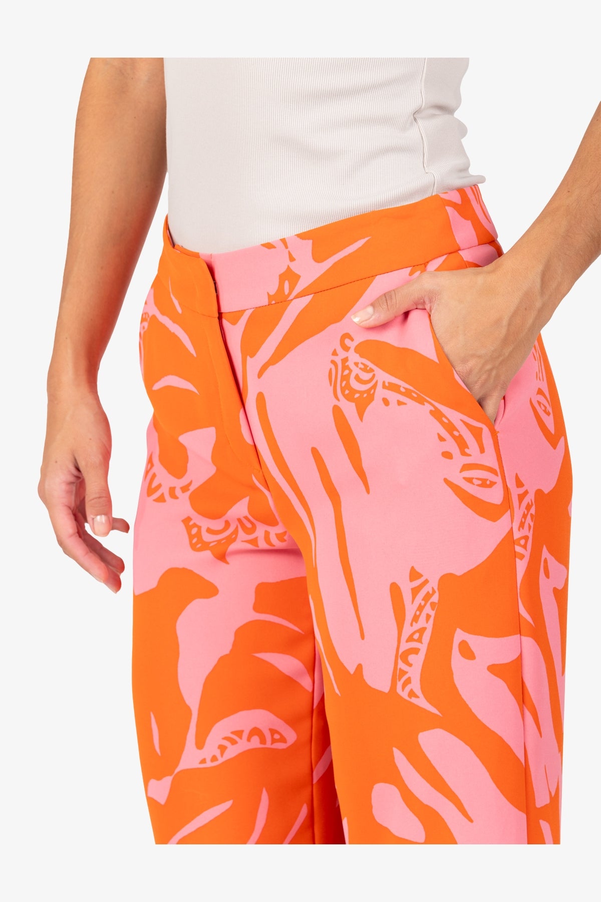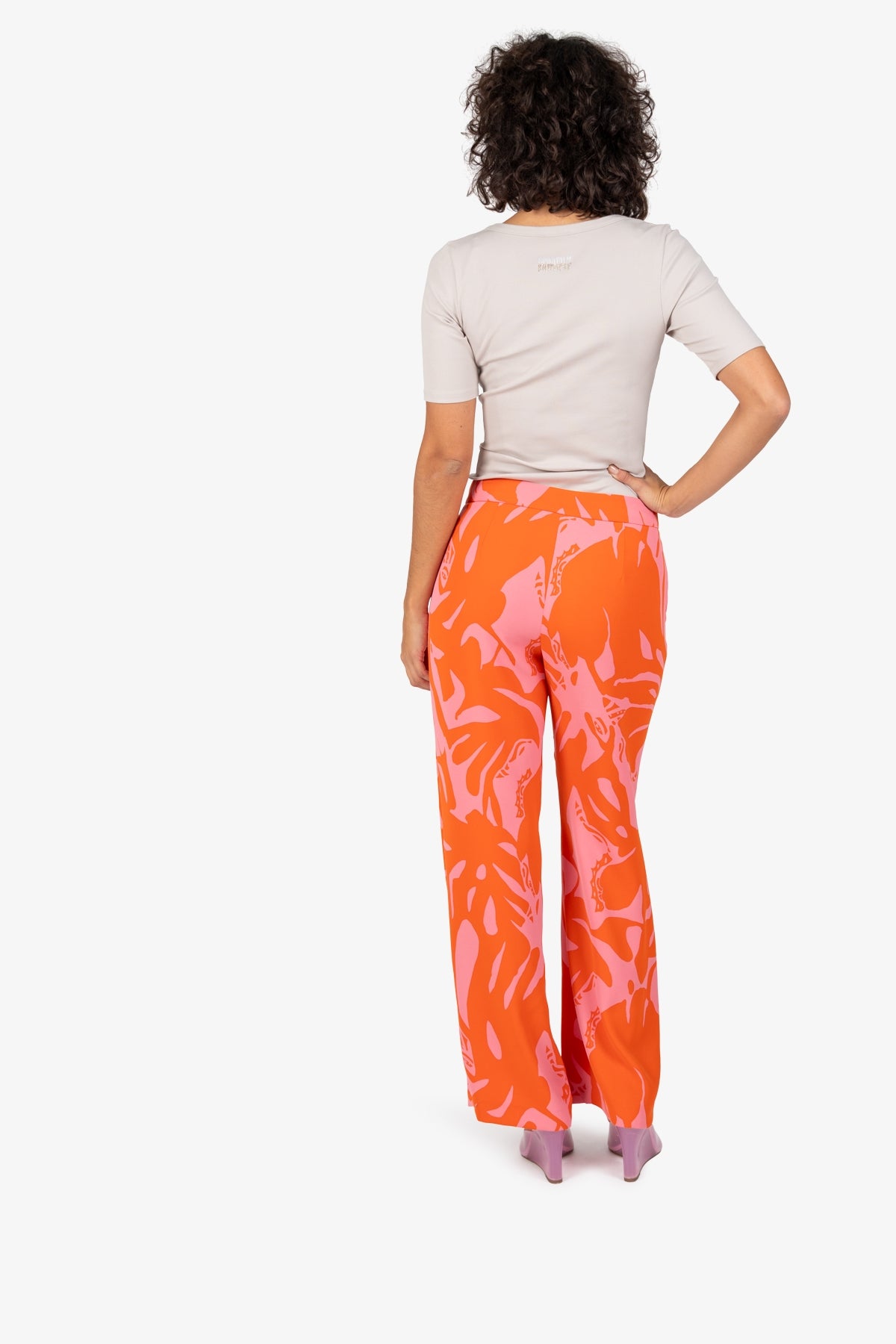 這款帶有獨特印花的喇叭褲非常有女人味,非常引人注目。其時尚的設計和引人注目的輪廓使其成為時尚女性的完美服裝。